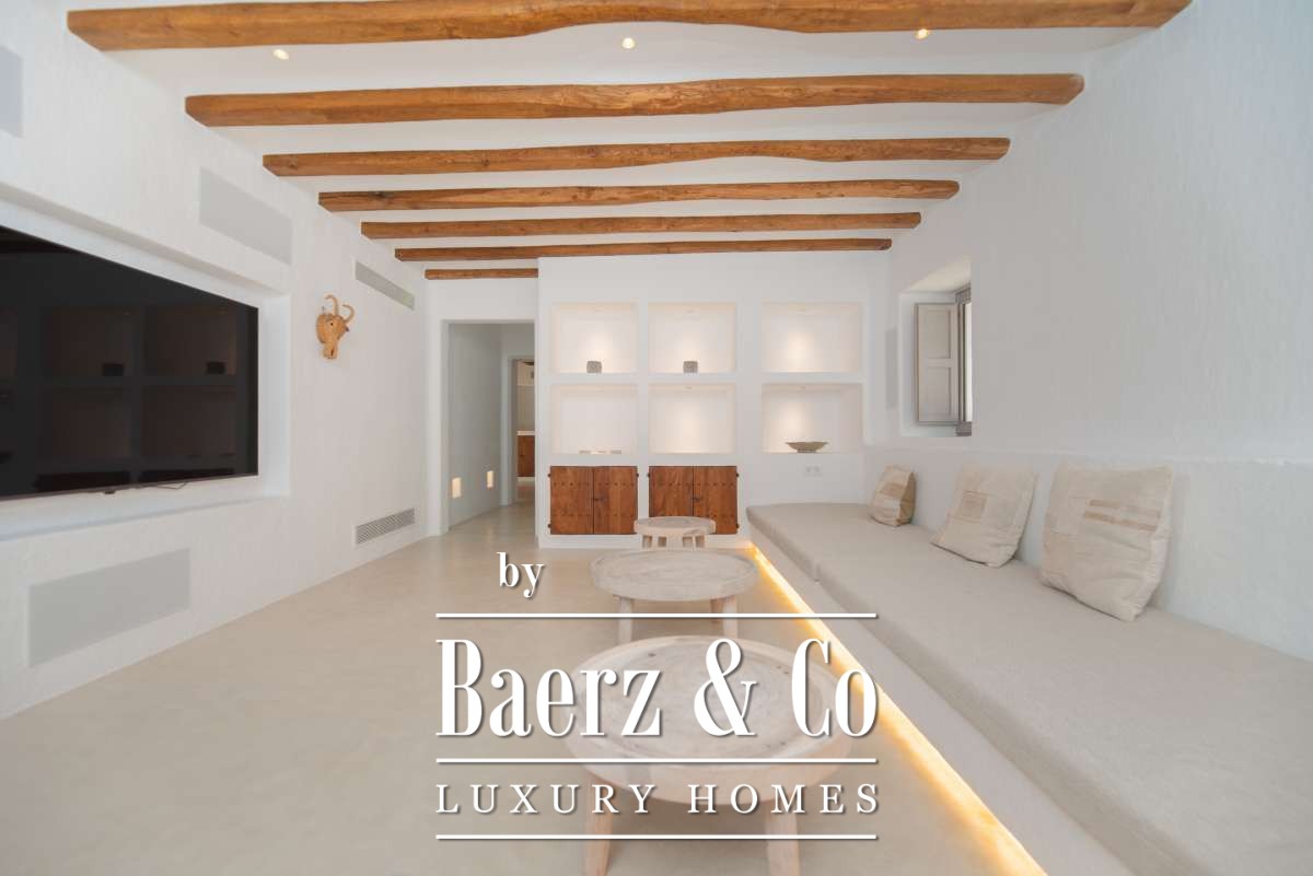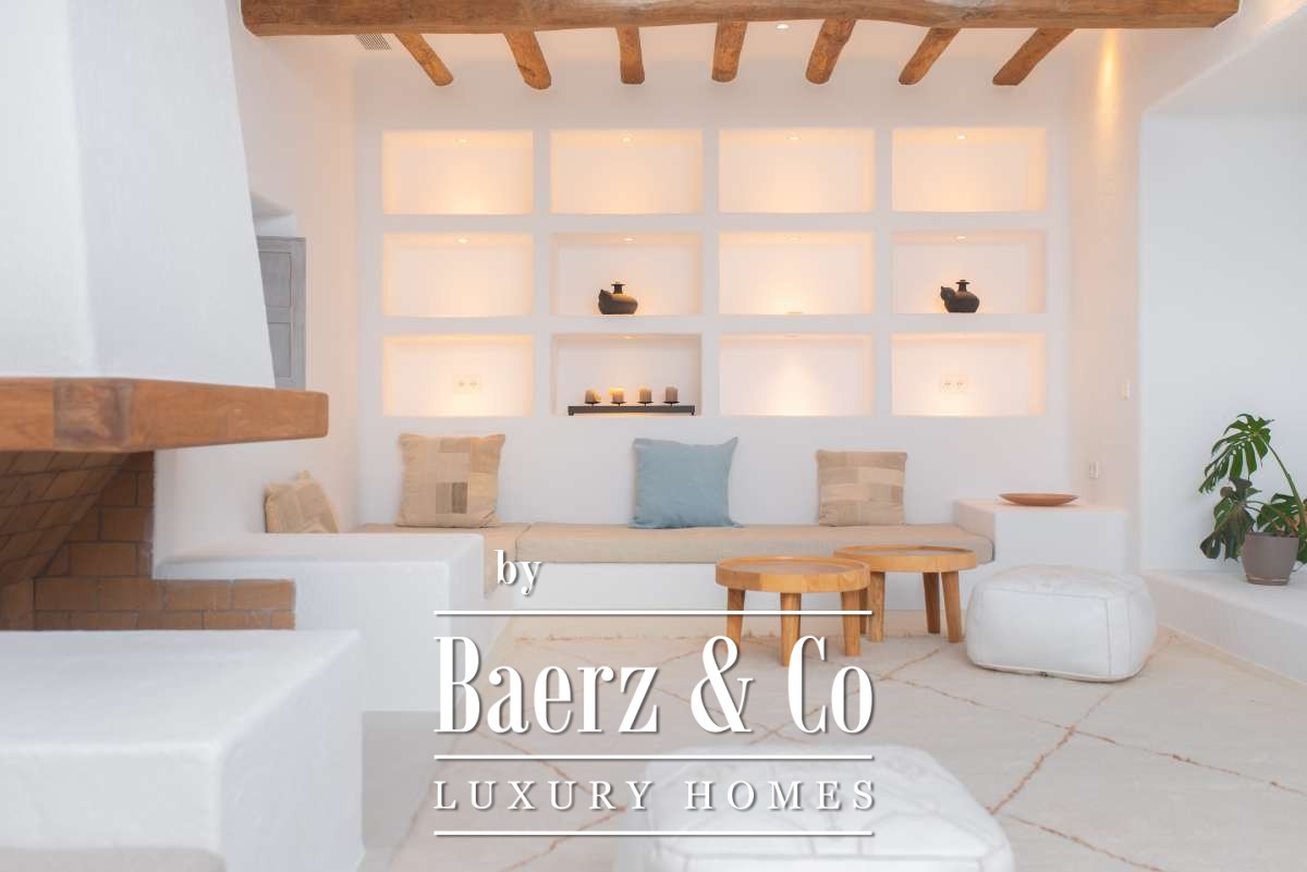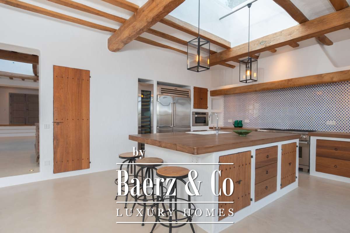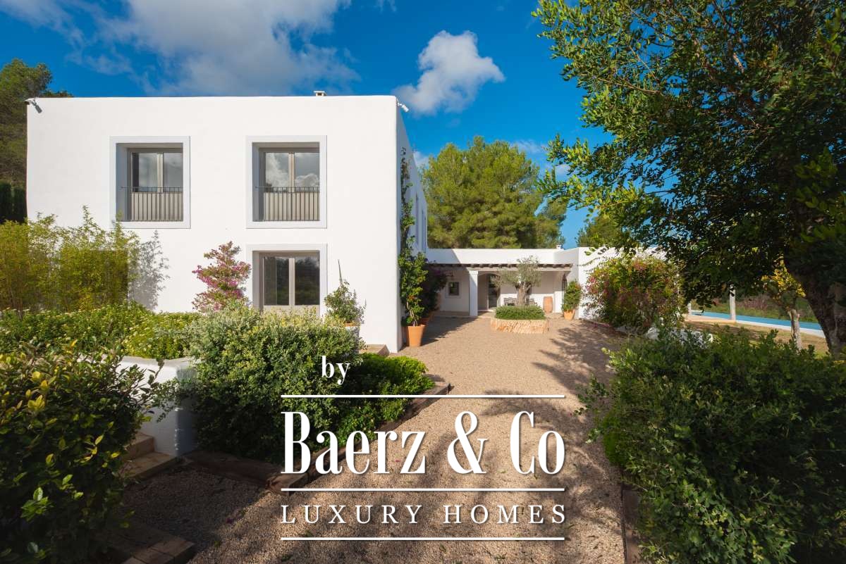 Originally an authentic finca extended in the 1940s, the house now offers 506 m² of living space divided between 361.7 m² on the ground floor and 144.64 m² above. Four bedrooms and five bathrooms have been thoughtfully renovated, each detail respecting the cubic architecture and rustic simplicity. Living areas blend seamlessly with garden terraces, encouraging an unhurried Mediterranean rhythm.