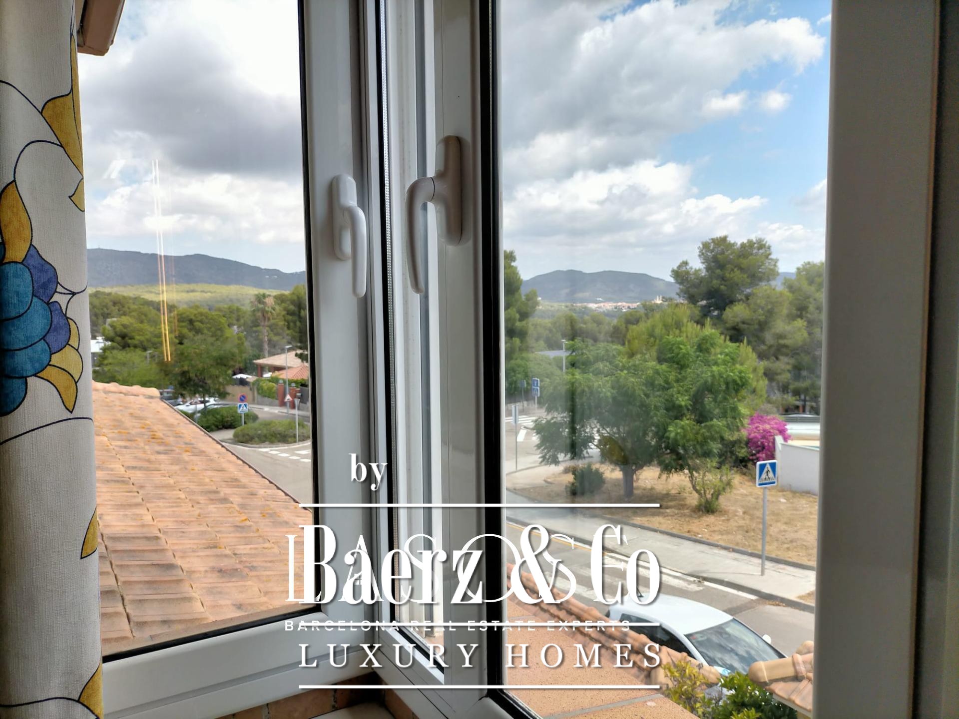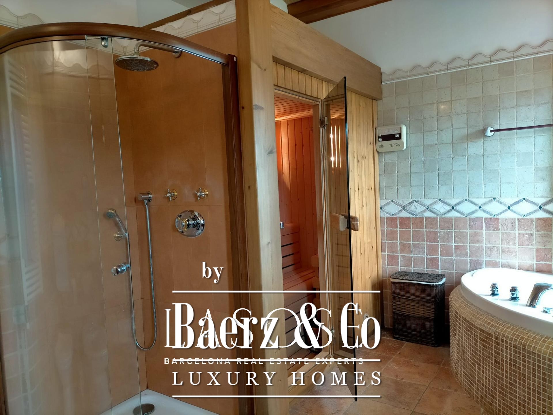 LASOSE proudly presents this remarkable 5-bedroom, 3-bathroom villa located in the prestigious residential area of Els Cards, one of the most desirable districts between Sitges and Sant Pere de Ribes. Set on an elevated position, the property enjoys panoramic views over the surrounding landscape, offering privacy, natural light and a serene atmosphere just minutes from the coast.. . This residence beautifully blends traditional Spanish character with contemporary elegance. Recently renovated interiors showcase modern finishes while preserving architectural charm, including arches, warm tones and natural textures. The open-plan layout creates a seamless flow between the kitchen, dining area and living room, all bathed in sunlight from windows on two sides. A stylish fireplace adds a cozy focal point, perfect for gatherings throughout the year.. . The fully renovated kitchen is both sophisticated and functional. It features a central island topped with striking Brazilian granite, generous storage and direct connection to the dining space. The abundance of natural light enhances the sense of space, and the layout is ideal for families and for entertaining.. . The villa offers five bright bedrooms, including a spacious master suite designed for total comfort and privacy. The en-suite bathroom features a bathtub, walk-in shower, double sink, bidet and the rare luxury of a private sauna—perfect for relaxation and wellbeing.. . Outdoor living is one of the property’s greatest highlights. Step out to a beautifully maintained garden with real grass, mature trees—including