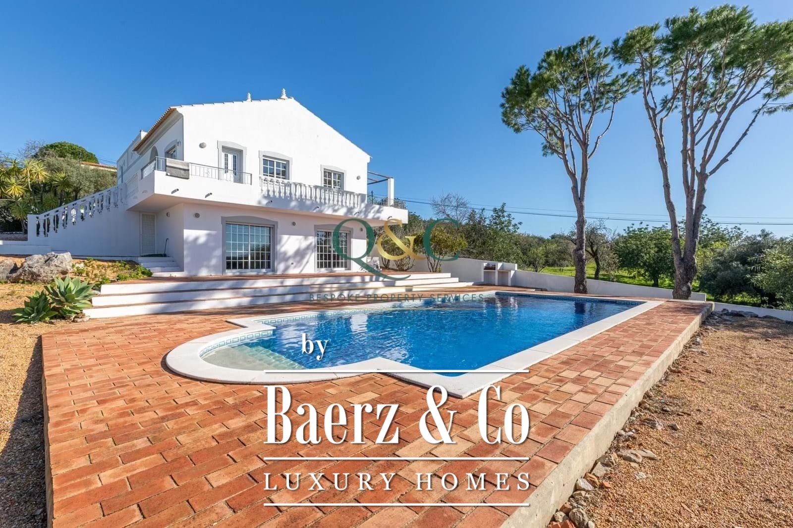 Stairs descend to a substantial games room with its own kitchen and bathroom, adaptable as a fourth bedroom or an independent apartment. Terraces, a roof level with broad vistas, mature gardens, and an expansive pool create opportunities for calm, conviviality, or discreet retreat. Features include air conditioning throughout, double glazing, barbecue, irrigation system, drive way parking, and mains water. This villa offers immediate connection to the rhythms of Algarve country life within reach of urban necessities.