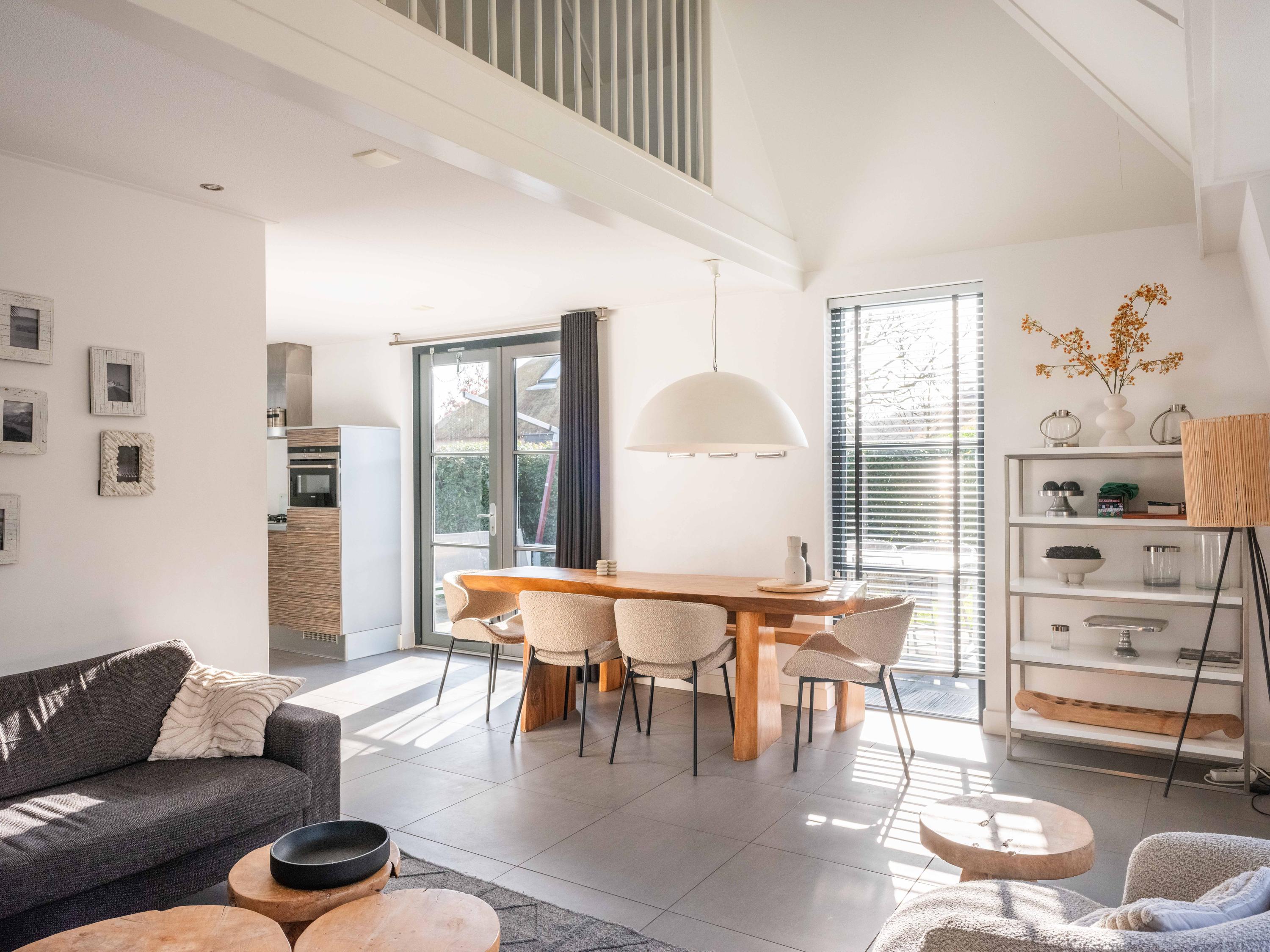 Luxury recreational house Schoorl creates a rare blend of privacy, nature, and refined comfort at the edge of the Schoorl forest and dunes. This property offers a living area of 106 m² on a generous 366 m² plot, with thoughtful architecture designed to amplify space and light. The entryway opens to a hall with a storage room, laundry area, cloakroom, and access to both upper and lower levels.