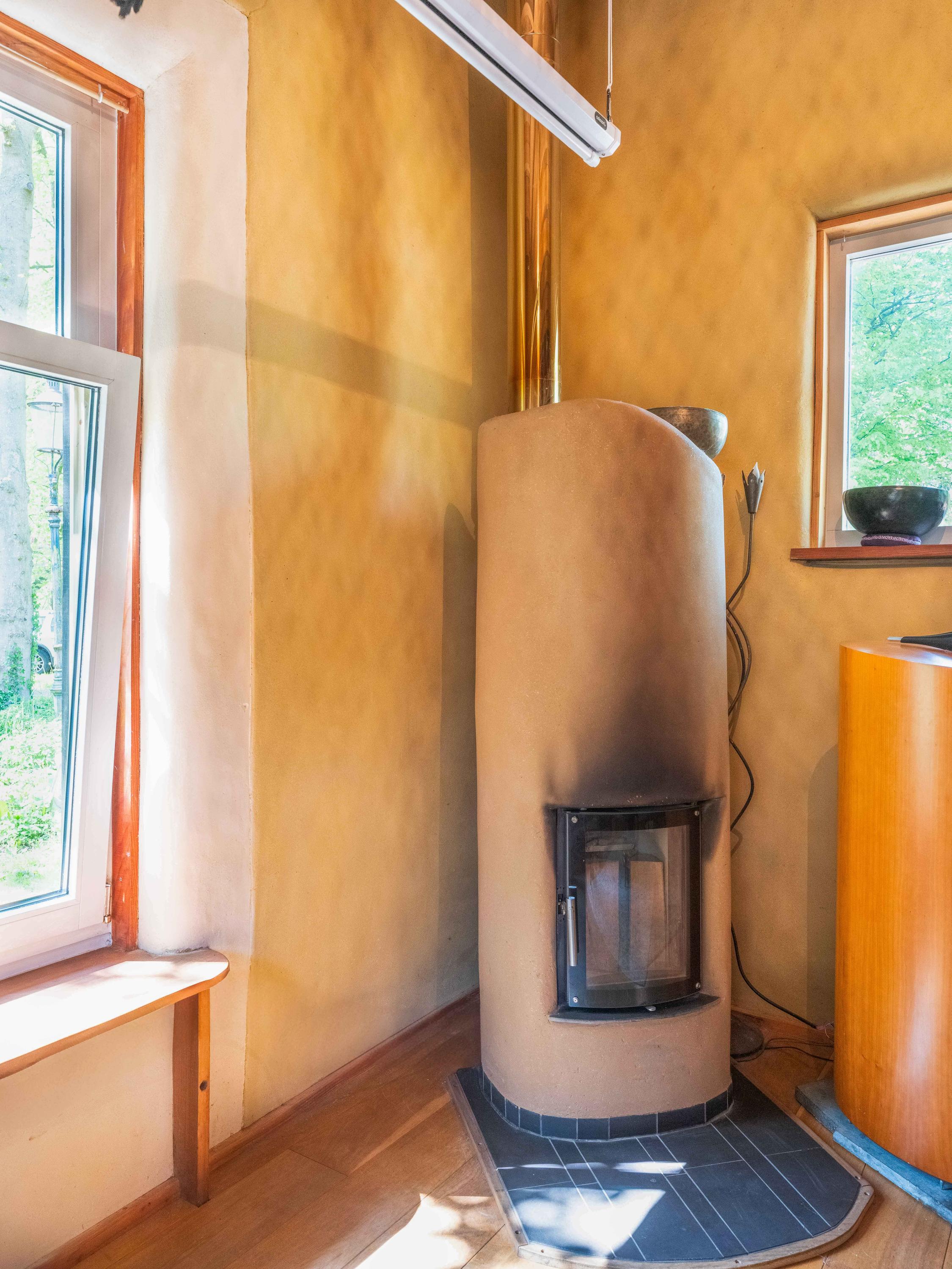 Let us take you inside the main residence. The ground floor welcomes you with a bright entrance, an open staircase, and a toilet. The kitchen, utility room, and cellar offer plenty of possibilities. The attached office is a pleasant and inspiring space. The garden-side living room features a charming fireplace, while the front living room includes a second fireplace and a raised alcove.