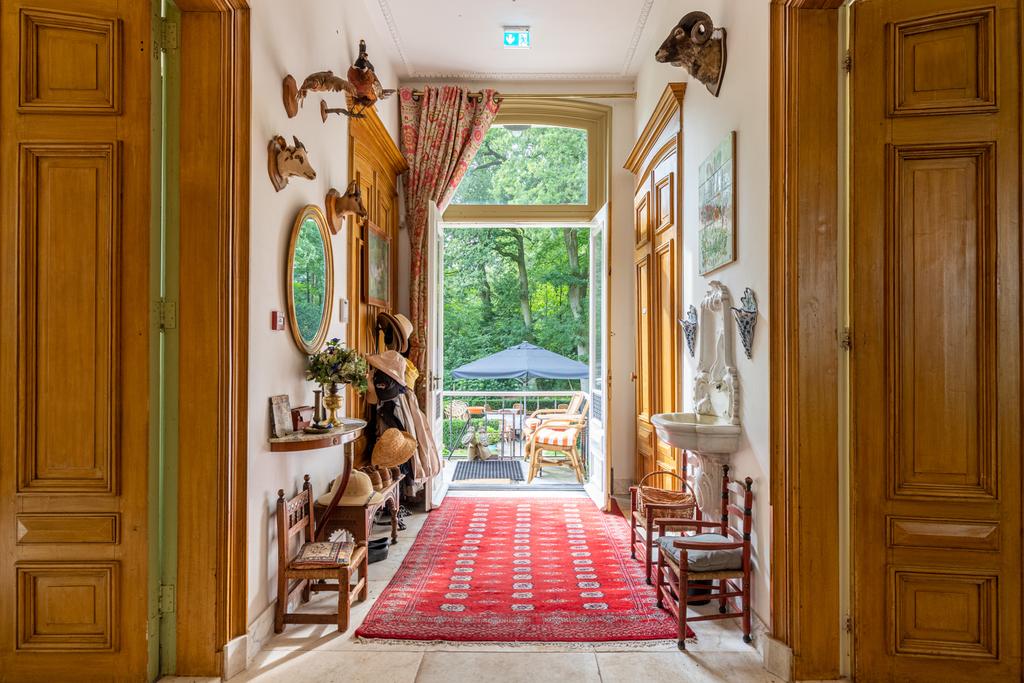 The estate offers approximately 568 m² of living space, divided over a basement, bel-etage and upper floor. The residence comprises eight spacious suites, each with its own bathroom, making the property suitable for private use, representative living or a high-end hospitality concept. A circular driveway provides an elegant arrival and departure.