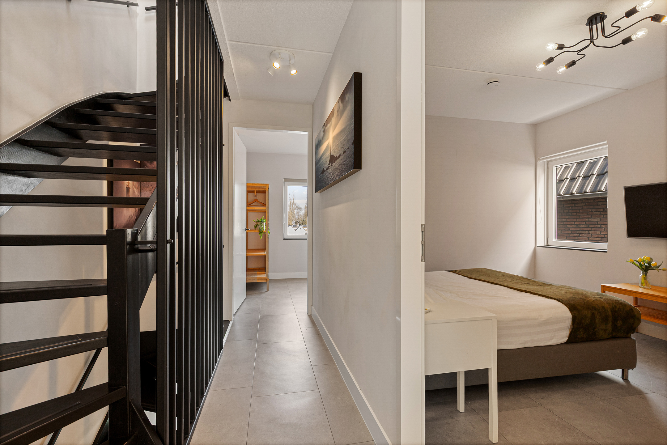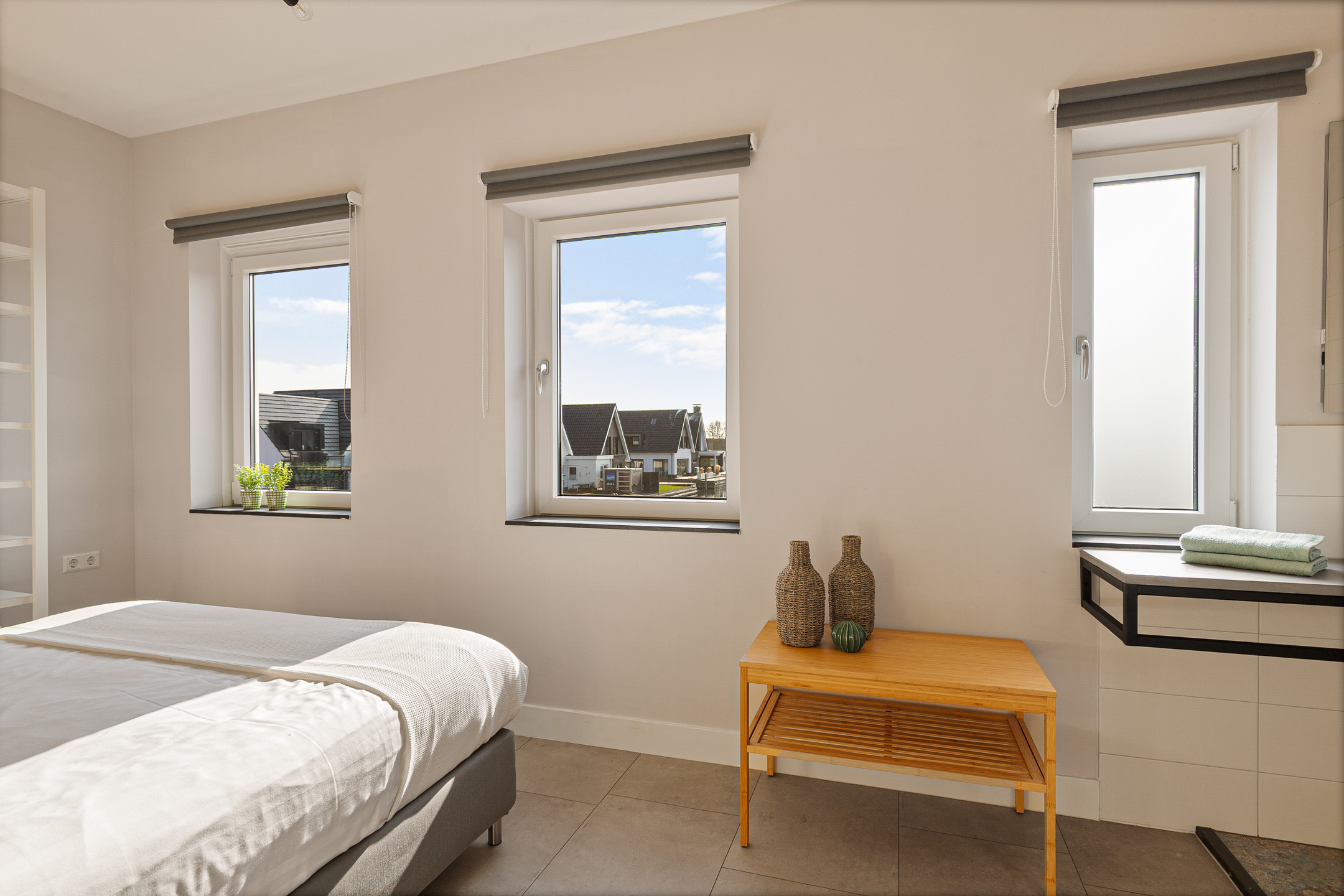Via een vaste trap bereikt u de tweede verdieping met de vierde en vijfde royale slaapkamers, eveneens voorzien van eigen badkamers. De hoge plafonds met stoere balken in het zicht geven de kamers een ruimtelijk loft gevoel. Vanaf deze verdieping heeft u een bijzonder uitzicht over de omgeving en bij helder weer is zelfs de overkant van het IJsselmeer te zien. Ook hier zijn de kamers individueel qua temperatuur in te regelen. Op de overloop is een derde toilet, ruimte voor de witgoedopstelling en een toegang naar de technische ruimte.