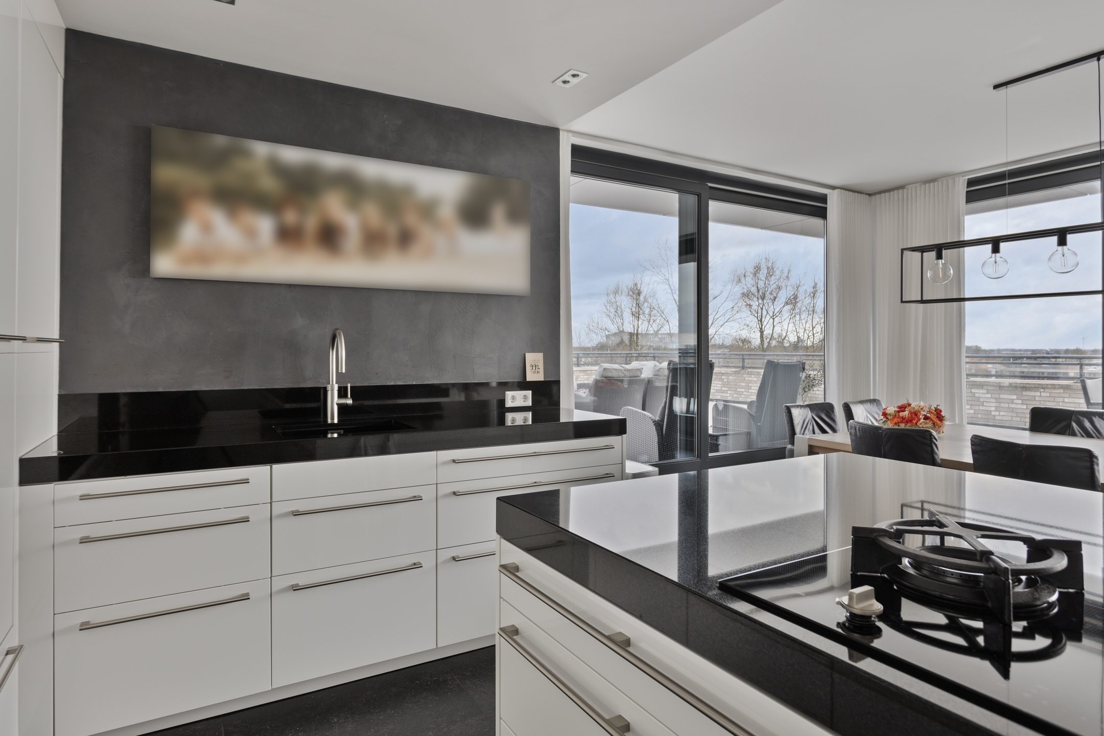 The property features a fine living room with lots of light and direct access to the roof terrace. The kitchen is directly connected to the living room and is a high quality Poggenpohl kitchen with luxury appliances including a high-pressure steam oven, the galvanized hood with direct outdoor extraction, a Quooker and of course a granite worktop.