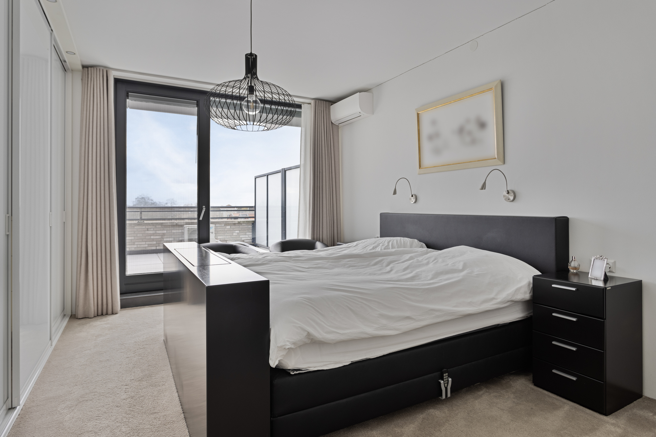 The master bedroom is also equipped with an additional door to the roof terrace and a wonderfully spacious sliding closet wall so that your entire wardrobe can be moved right along. The bathroom is also luxurious with a bath, walk-in shower with sun shower and extra floor heating for the seating area, a second wall closet and a luxurious double sink.