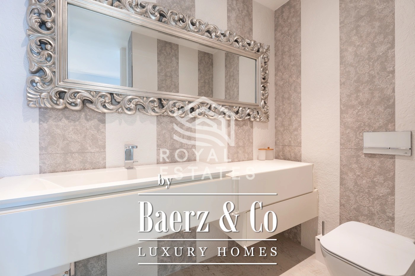 This exceptional duplex penthouse is located in the exclusive Es Pouet residential complex, one of the most prestigious and secure communities on Ibiza. Set in the beautiful bay of Talamanca, just minutes from Marina Botafoch and Ibiza Town, this property represents the ultimate expression of modern island living. With breathtaking panoramic views over the Mediterranean Sea and the historic silhouette of Dalt Vila, it offers a unique combination of luxury, privacy, and convenience. Occupying a total built area of approximately 428 m2, with 347 m2 of usable interior space, this residence has been thoughtfully designed to maximize natural light and create a seamless flow between indoor and outdoor living. The main floor features a spacious open-plan living and dining area with floor-to-ceiling windows that open onto a large terrace overlooking the bay. The contemporary kitchen is fully equipped with high-end appliances and an elegant kitchen-office layout that blends functionality with style. The property includes four generous bedrooms, three with its own en-suite bathroom, ensuring complete privacy and comfort for residents and guests alike. The master suite is particularly impressive, with direct terrace access and stunning sea views. Additionally, there is a guest toilet and a separate laundry room for added convenience. The interiors are defined by clean lines, natural tones, and premium materials that reflect understated elegance and quality craftsmanship. An architectural highlight of this penthouse is its spectacular