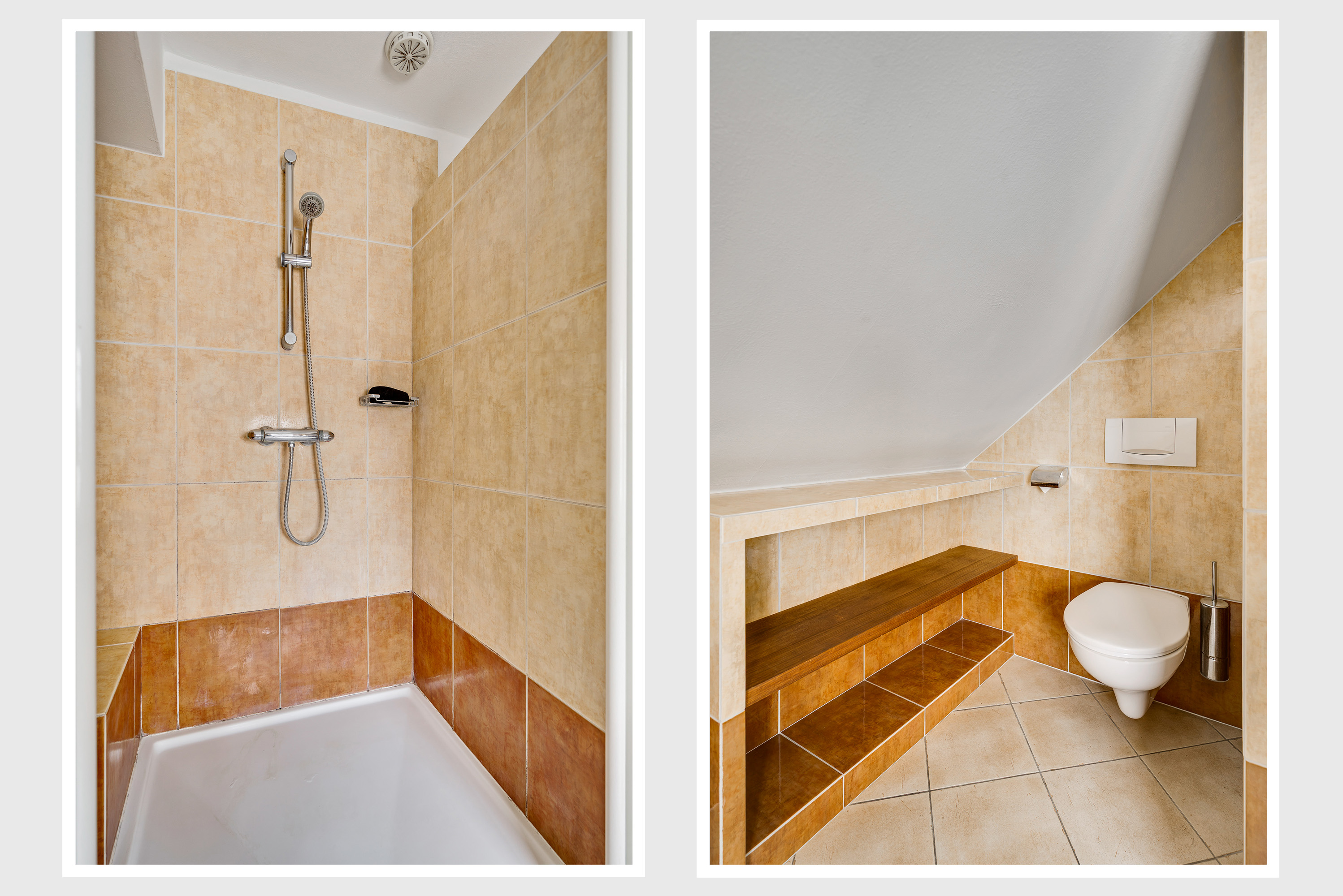Also on the ground floor are an additional bedroom and a second bathroom with a shower and sink.