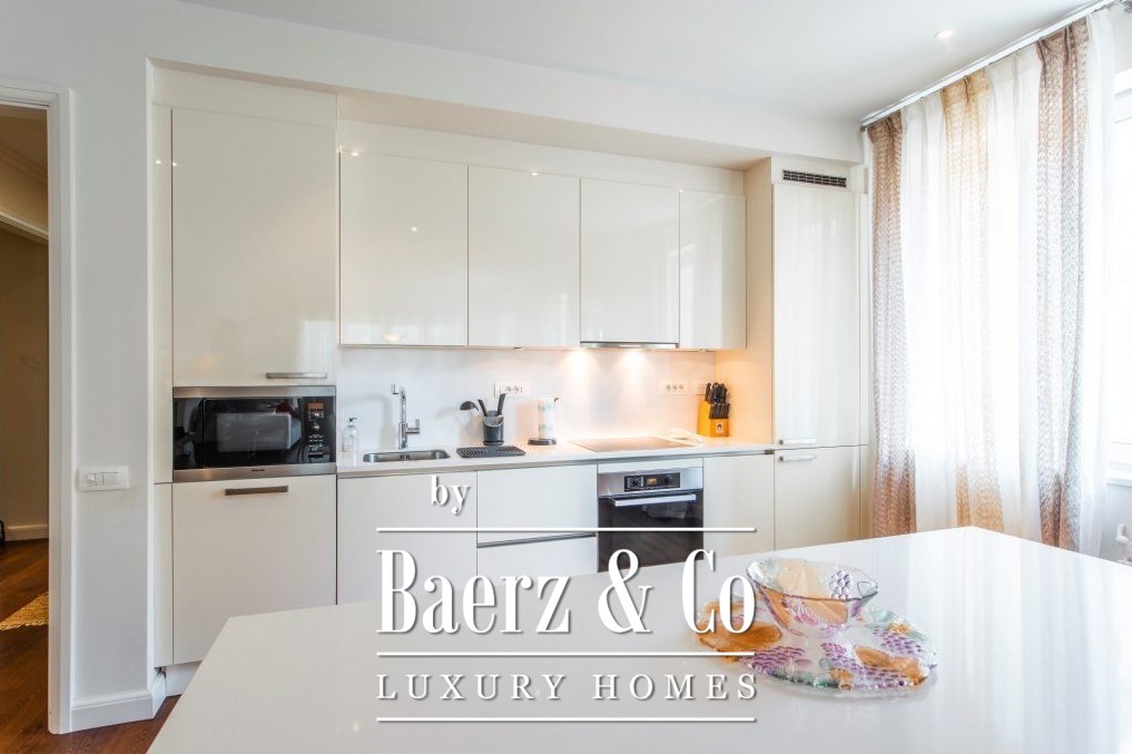 Apartment Tivat Center occupies a prime setting just 50 metres from the shoreline, offering a peaceful vantage in the heart of Tivat. This apartment presents the ideal blend of direct access to the Adriatic and proximity to all urban amenities, with the marina, local restaurants, and grocery shops within easy reach. The property spans 129m2 of interior space complemented by two terraces totalling 23m2, creating a living area of 152m2. Located on the first floor of a five-storey building, it offers a layout comprising a hallway, an open-plan living room with kitchen and dining area, two bedrooms, two bathrooms, and two terraces. Expansive sea and mountain views act as a constant backdrop.