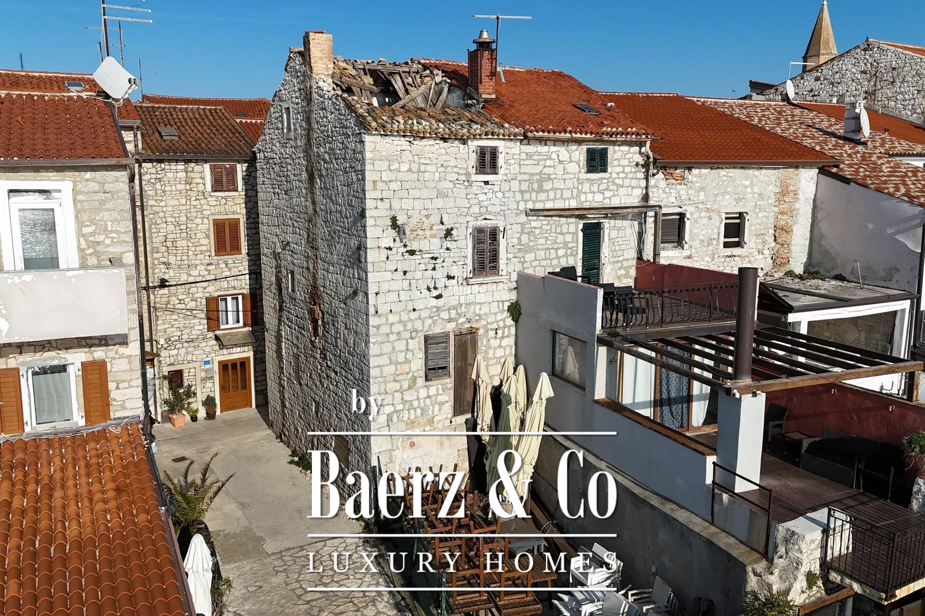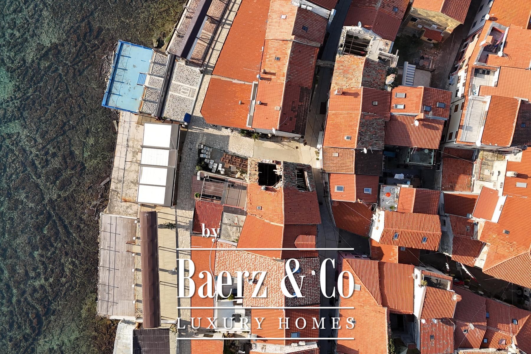 Stone house Umag occupies an exceptional first-row position along the coast, a rarity that underscores its enduring value. This authentic stone residence offers 105 m² distributed over three floors, each approximately 35 m², all set within an 83 m² plot. The property requires full renovation, inviting the future owner to reimagine its interior while retaining the material honesty and spirit of traditional coastal architecture.