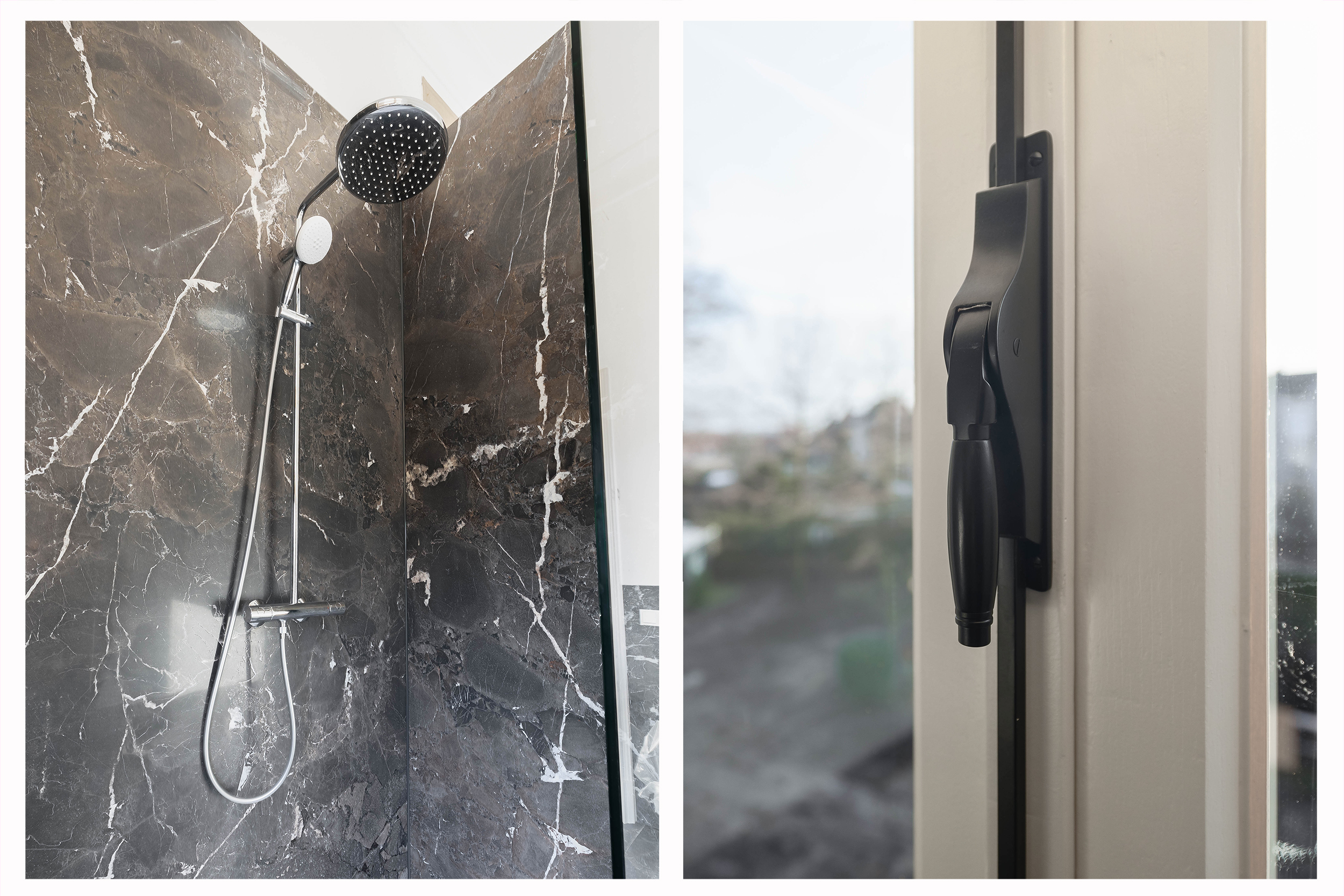 • A luxury bathroom with modern finishes and high-quality materials, including a walk-in shower and stylish sanitary fittings.