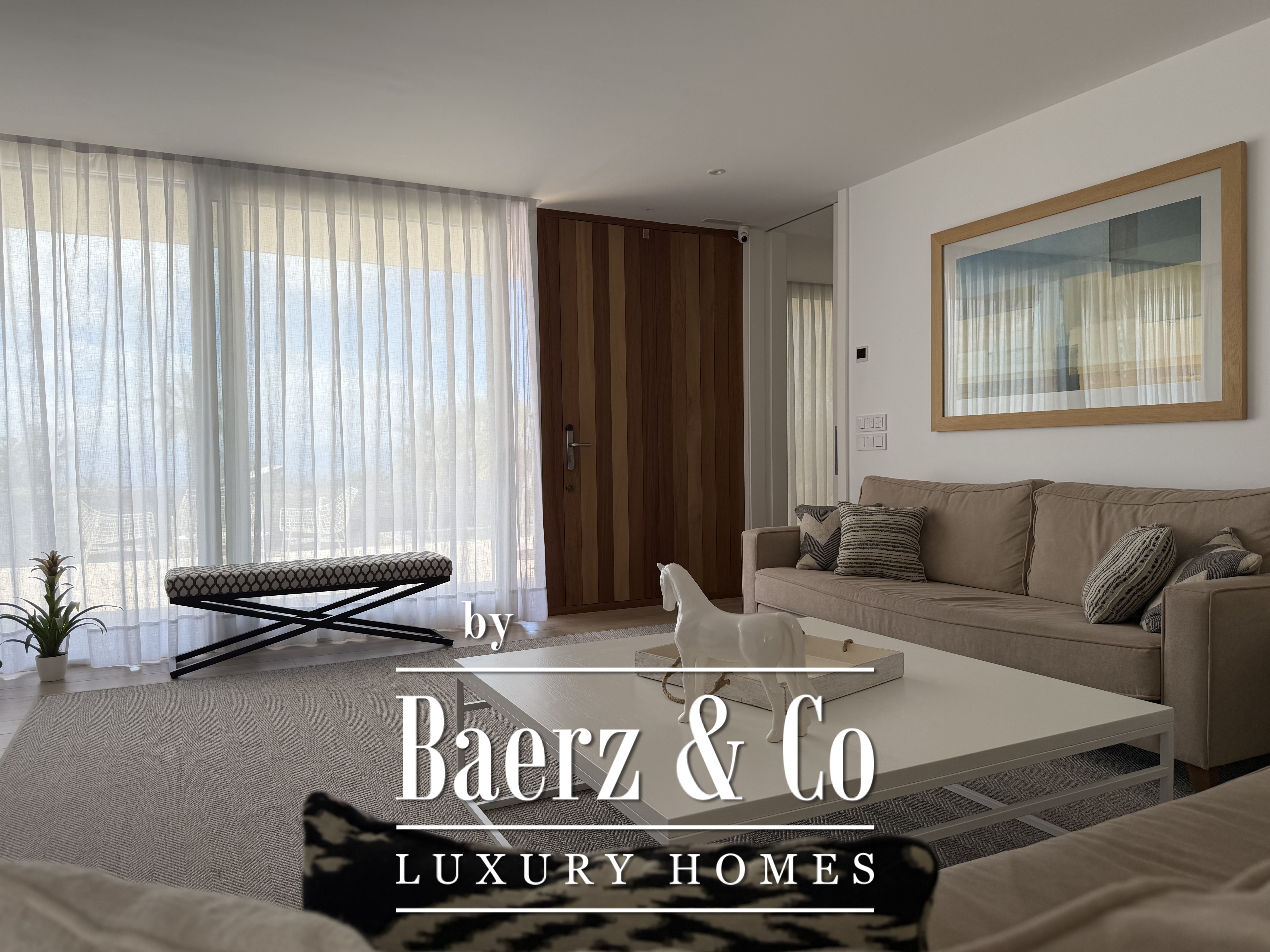 De woning beschikt over een garage voor één auto en een buggy en wordt volledig gemeubileerd verkocht met luxe meubilair, inclusief tuinmeubelen. De ramen zijn voorzien van automatische zonwering die het zonlicht reguleert zonder het natuurlijke licht te verliezen.