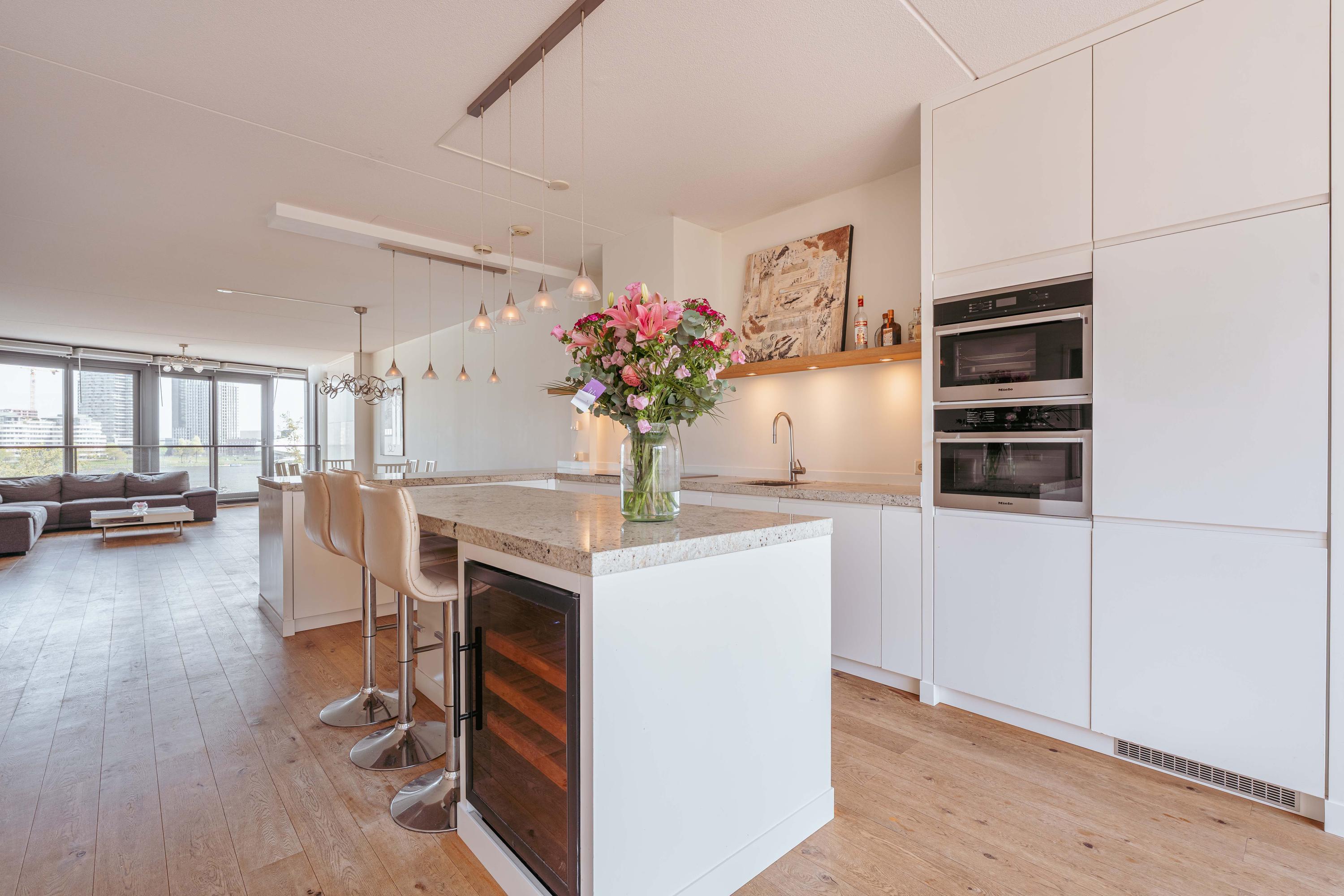 Het appartement is gelegen op het moderne Westerdokseiland, een unieke woonlocatie aan de rand van de Jordaan en het historische centrum. Hier combineert u het beste van twee werelden: de levendigheid van de stad met de rust en ruimte van wonen aan het water. Vanuit uw woning loopt u in enkele minuten naar het Centraal Station, de Haarlemmerstraat, de grachtengordel of het sfeervolle Prinseneiland. In de directe omgeving vindt u een groot aanbod aan hoogwaardige horeca, gezellige cafés en karakteristieke winkels – denk aan hotspots als Meneer Nieges, De Gouden Reael (by Caron), BAK en de populaire boetiekjes van de Haarlemmerdijk. Ook de Noordermarkt en het Westerpark bevinden zich op korte afstand. Met de pont bent u bovendien zó in het creatieve en bruisende Amsterdam-Noord. Of u nu met de fiets, de auto of het openbaar vervoer reist: de bereikbaarheid is uitstekend. Het Centraal Station ligt op loopafstand en met de auto bent u via de S101/S102 of de Piet Hein Tunnel in een mum van tijd op de Ring A10. Schiphol bereikt u binnen 20 minuten.