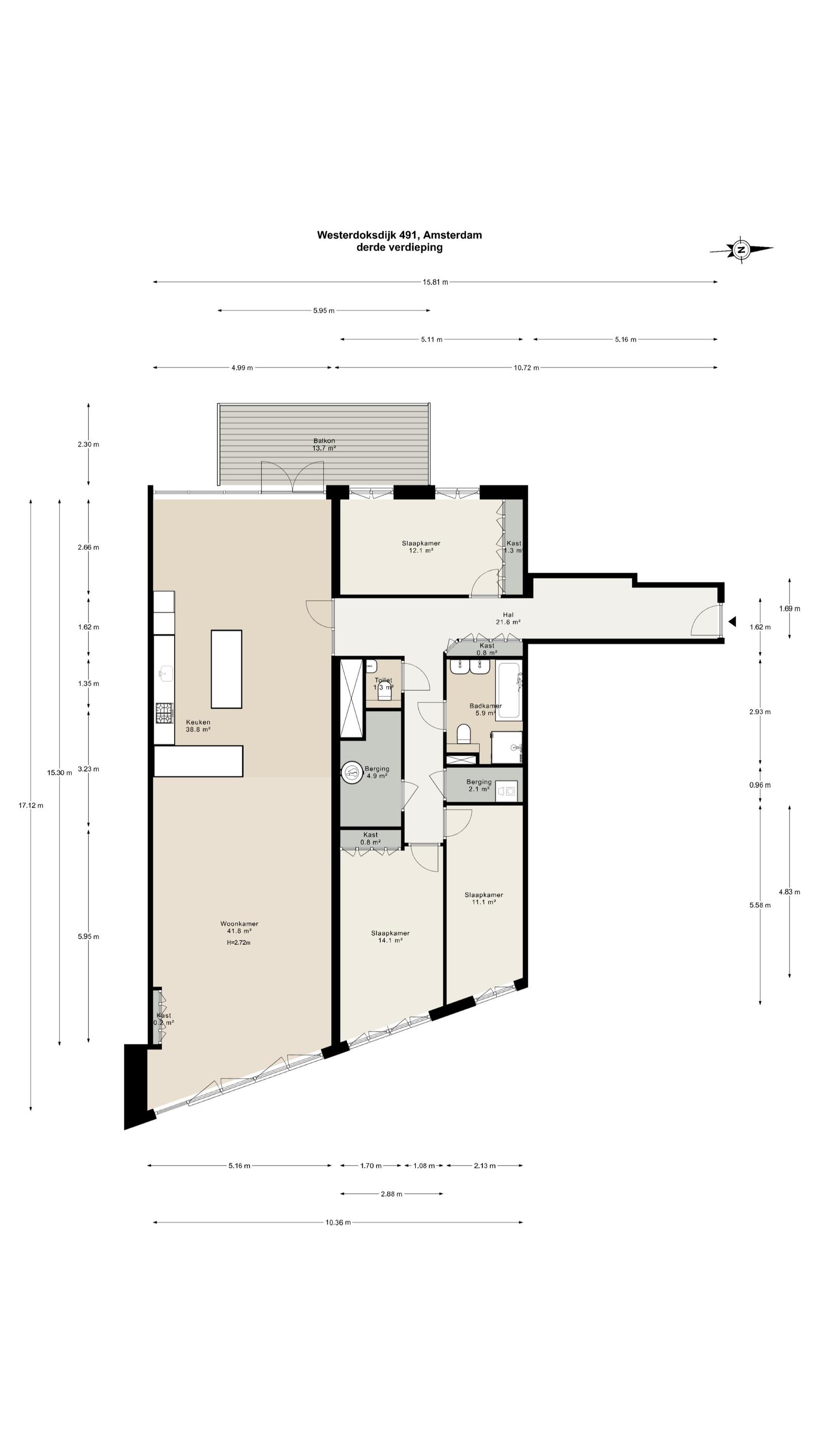 In de onderbouw van het complex bevinden zich de algemene fietsenstalling, een privéberging van ca. 5 m² en de parkeergarage. De eigen parkeerplaats wordt separaat aangeboden voor € 60.000,- k.k. Kortom: een ruim, comfortabel en licht appartement op een unieke locatie aan het water in hartje Amsterdam – ideaal voor wie centraal wil wonen zonder in te leveren op rust en ruimte.