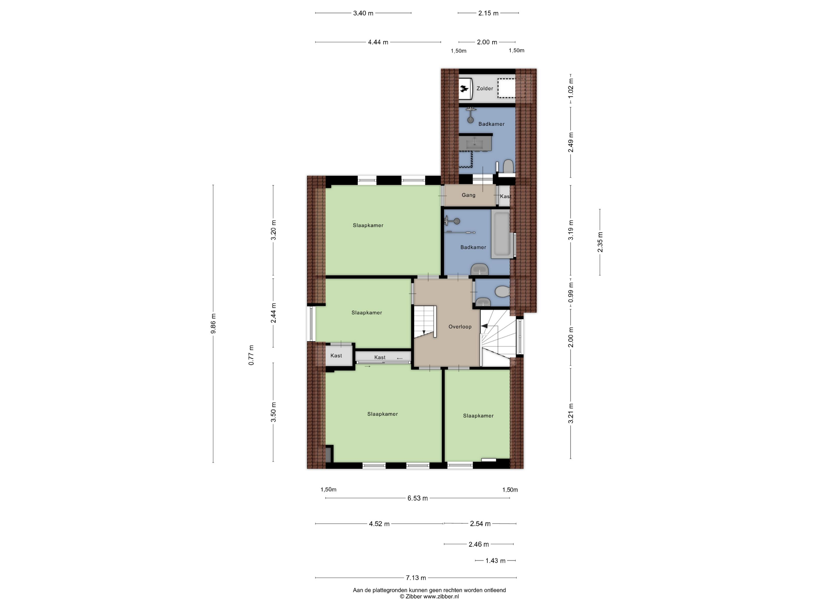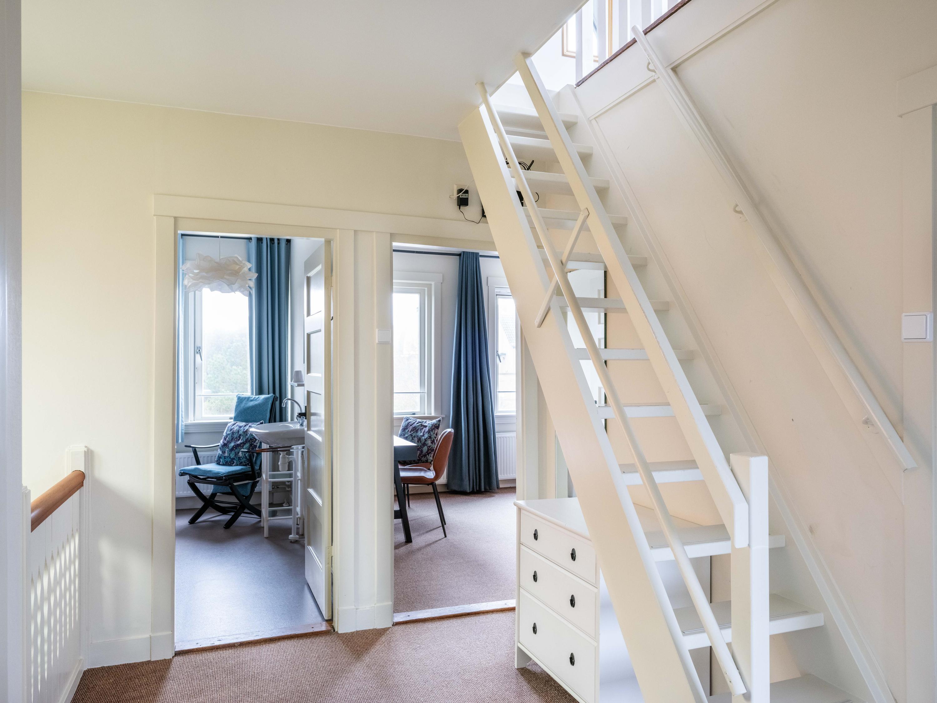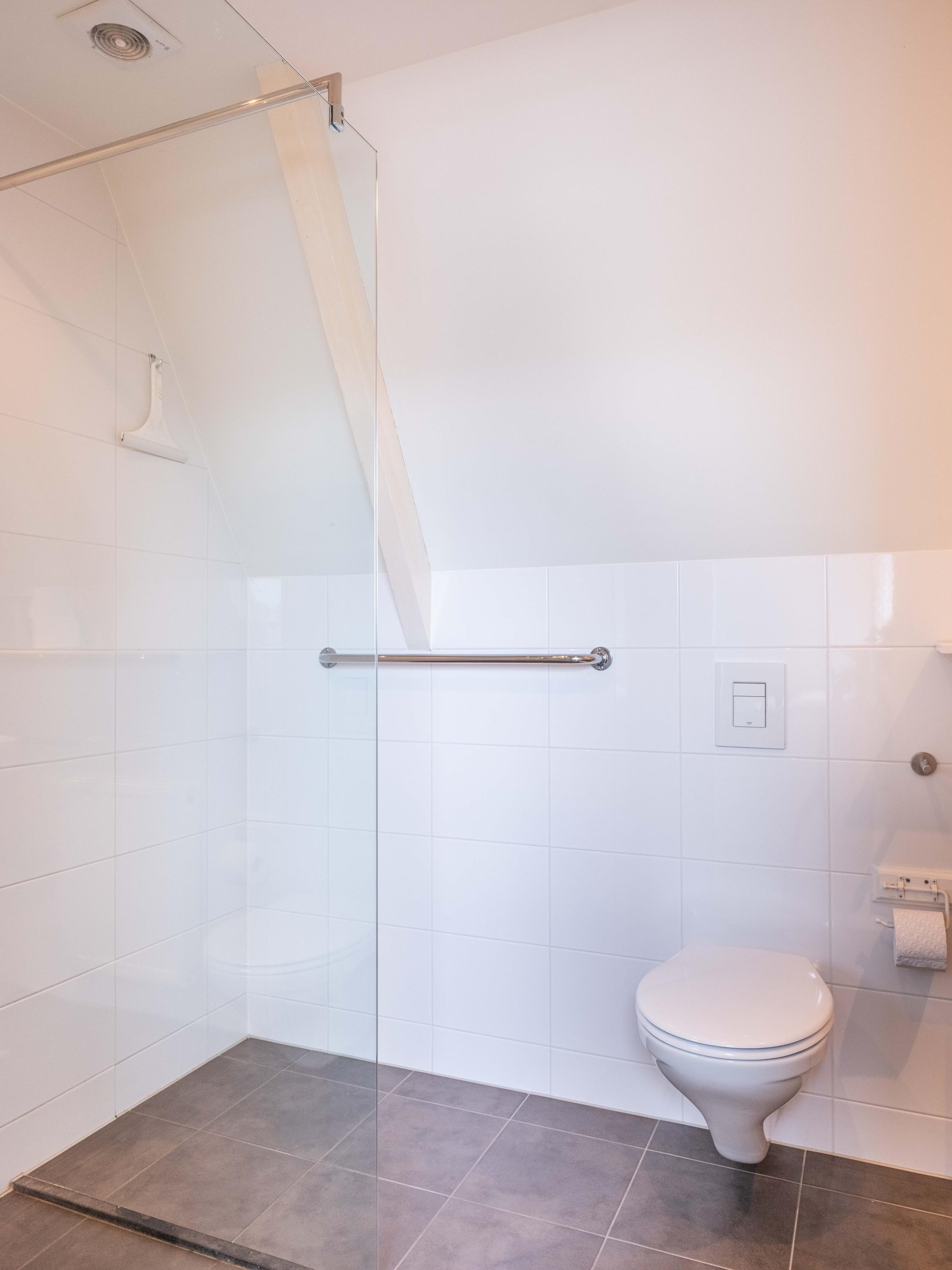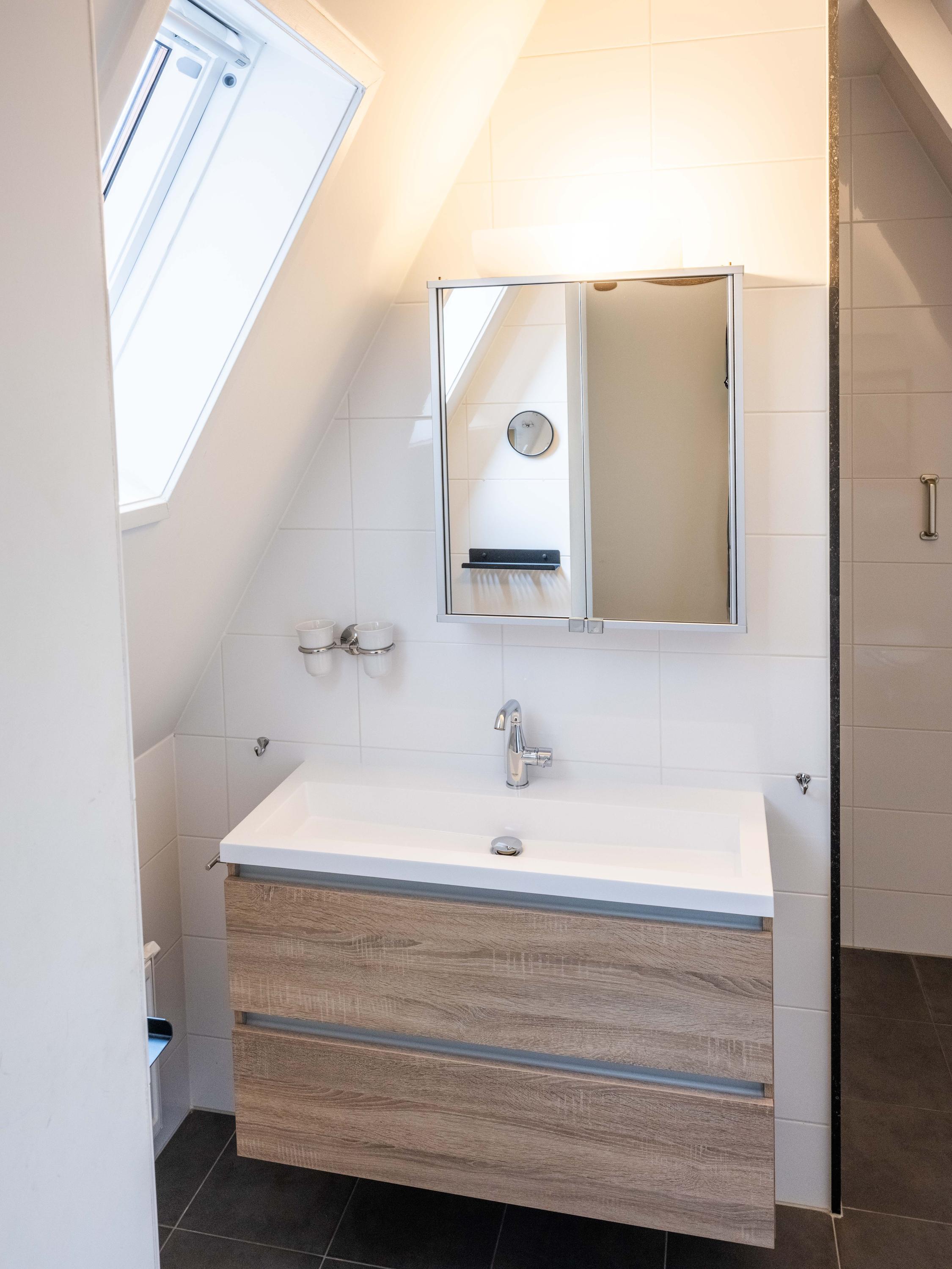 De tweede verdieping is via een vaste trap bereikbaar en beschikt, dankzij een groot raam, over een ruime, lichte overloop. Op deze verdieping bevinden zich nog twee slaapkamers en een derde badkamer met douche, toilet, en wastafel.