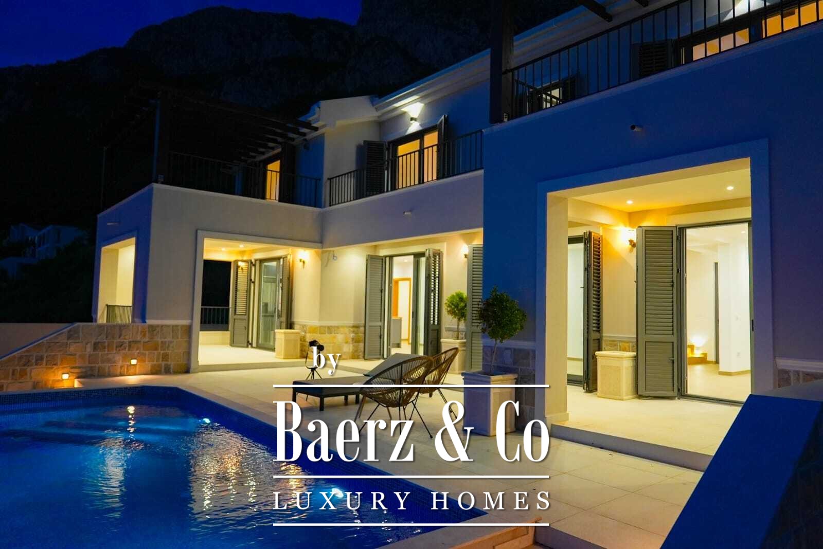 The villa has a panoramic sea view and the view of the mountains that surround it. It is unfurnished with equipped bathrooms and kitchen, finished tiles and equipped air conditioning.