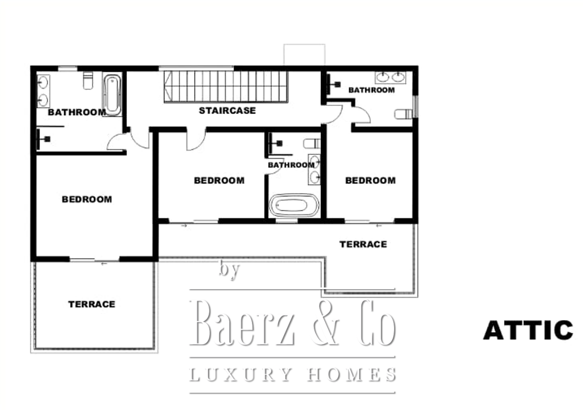 Level 2: 3 bedrooms, 3 bathrooms and 2 terraces.