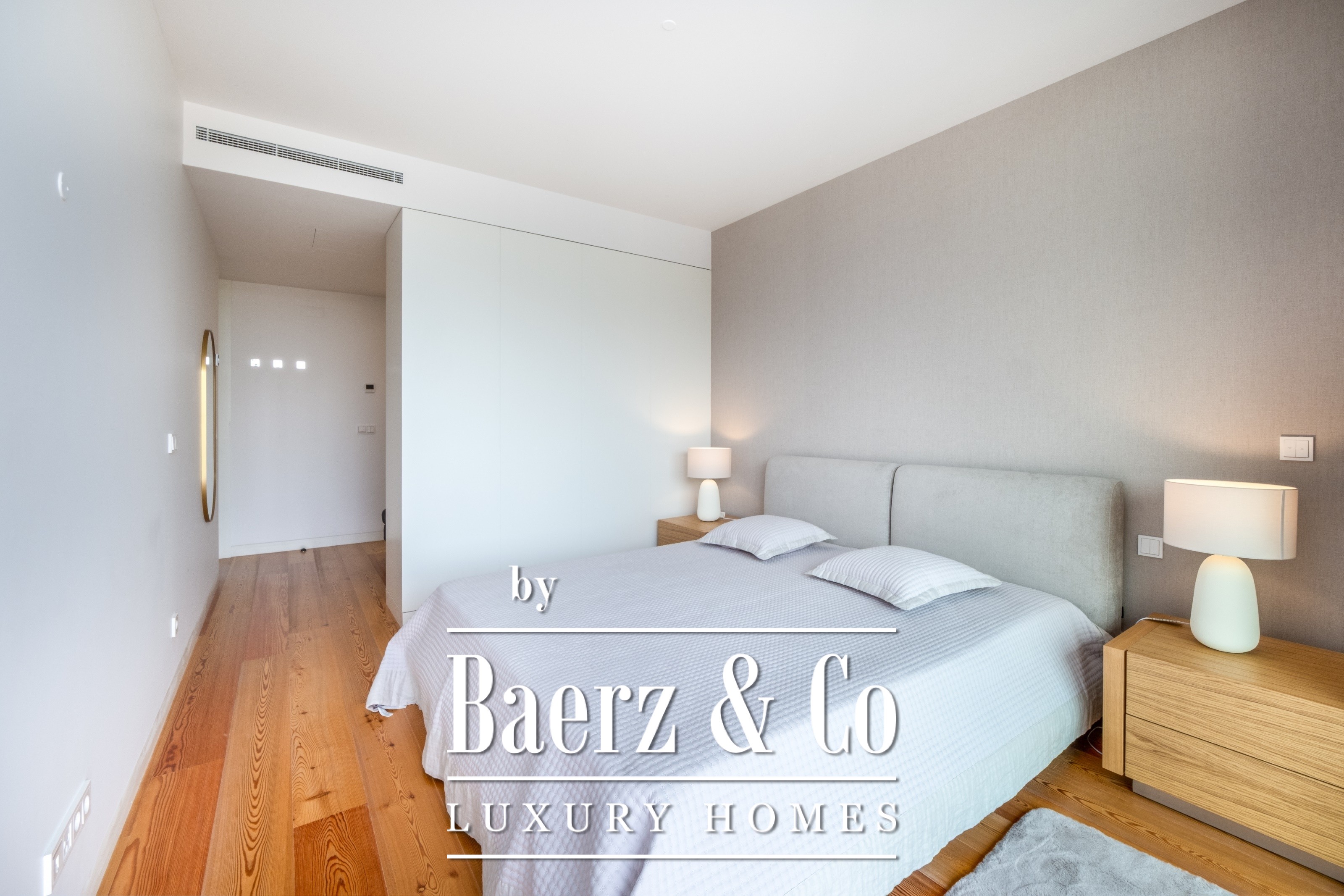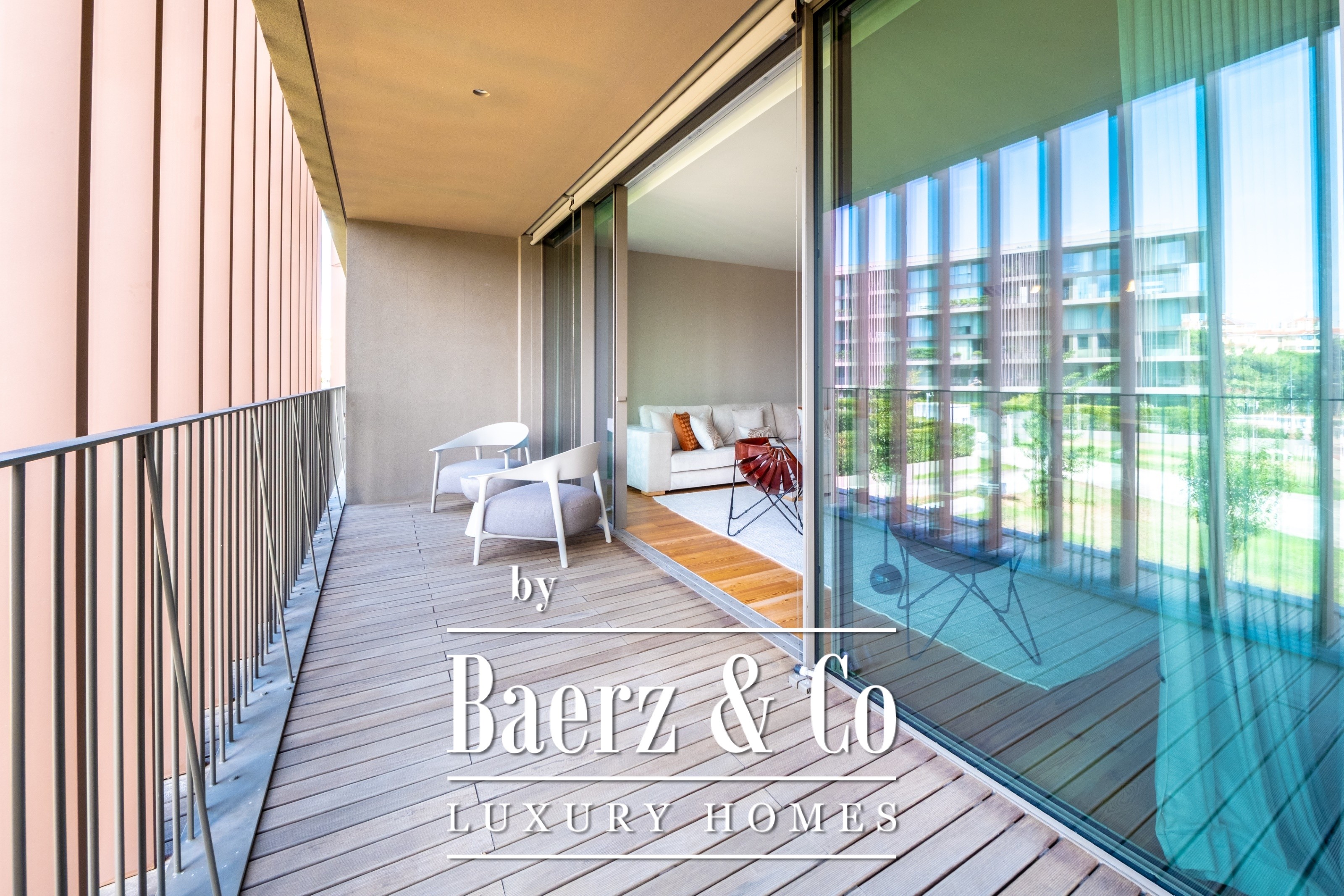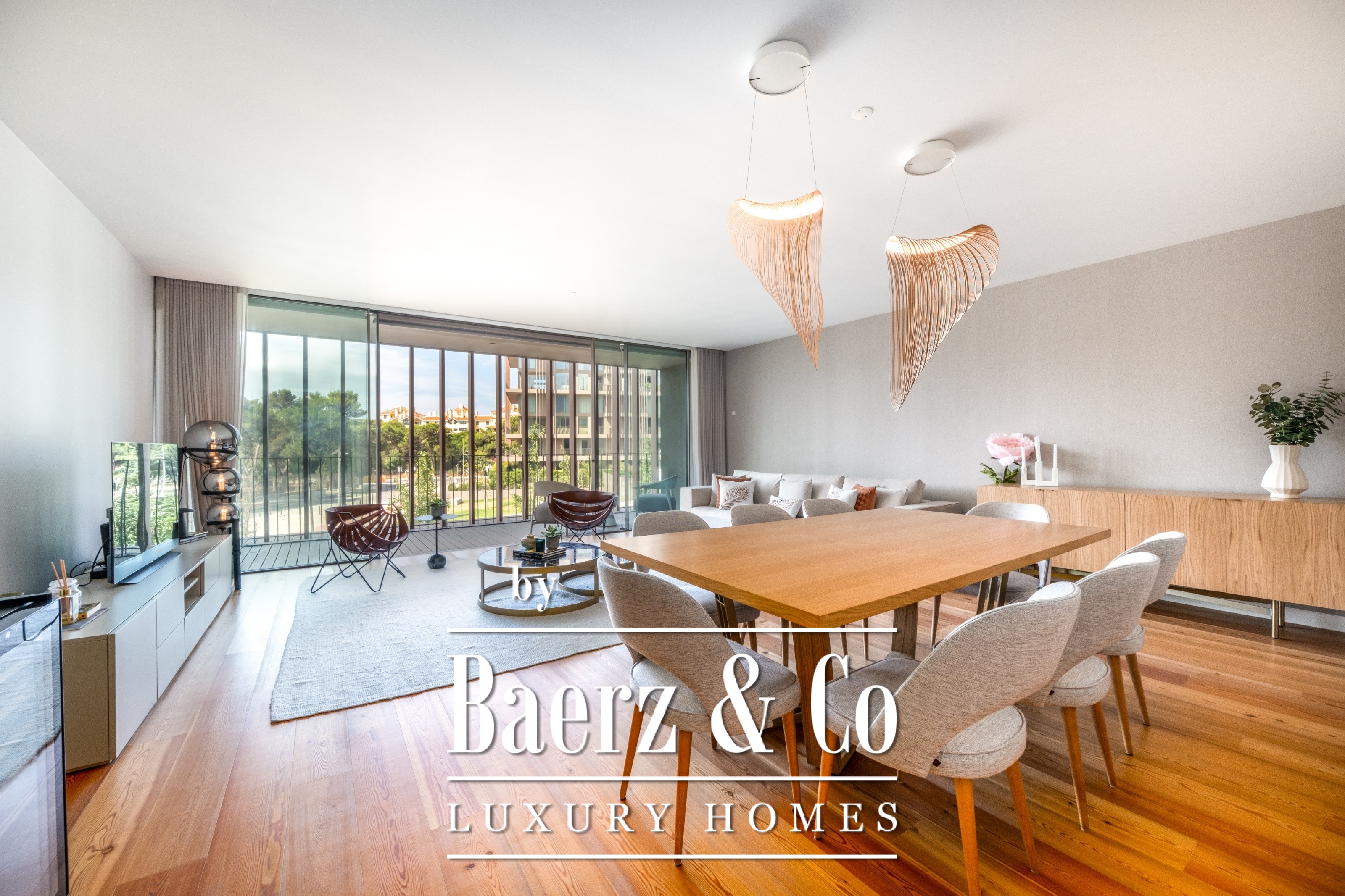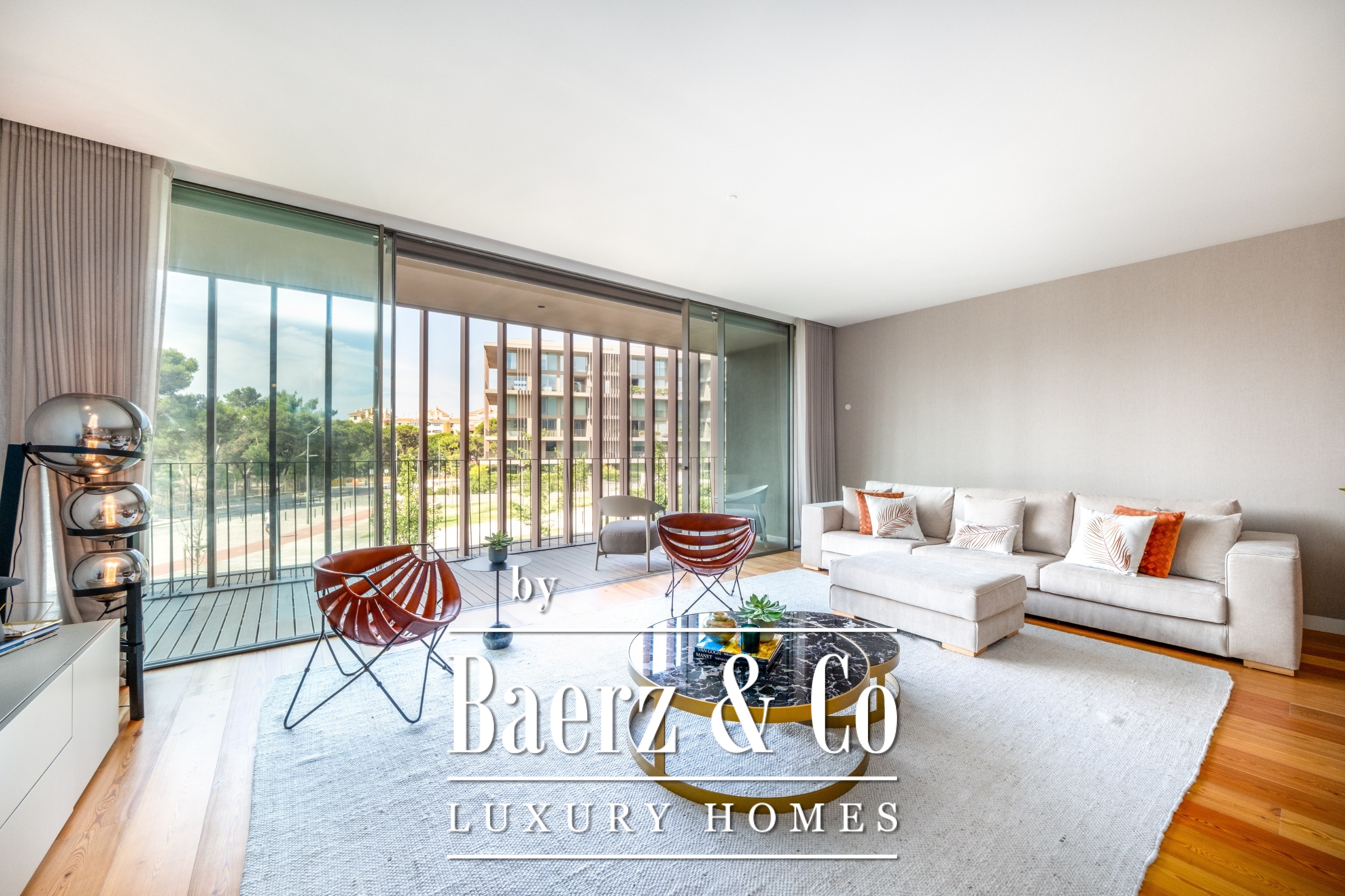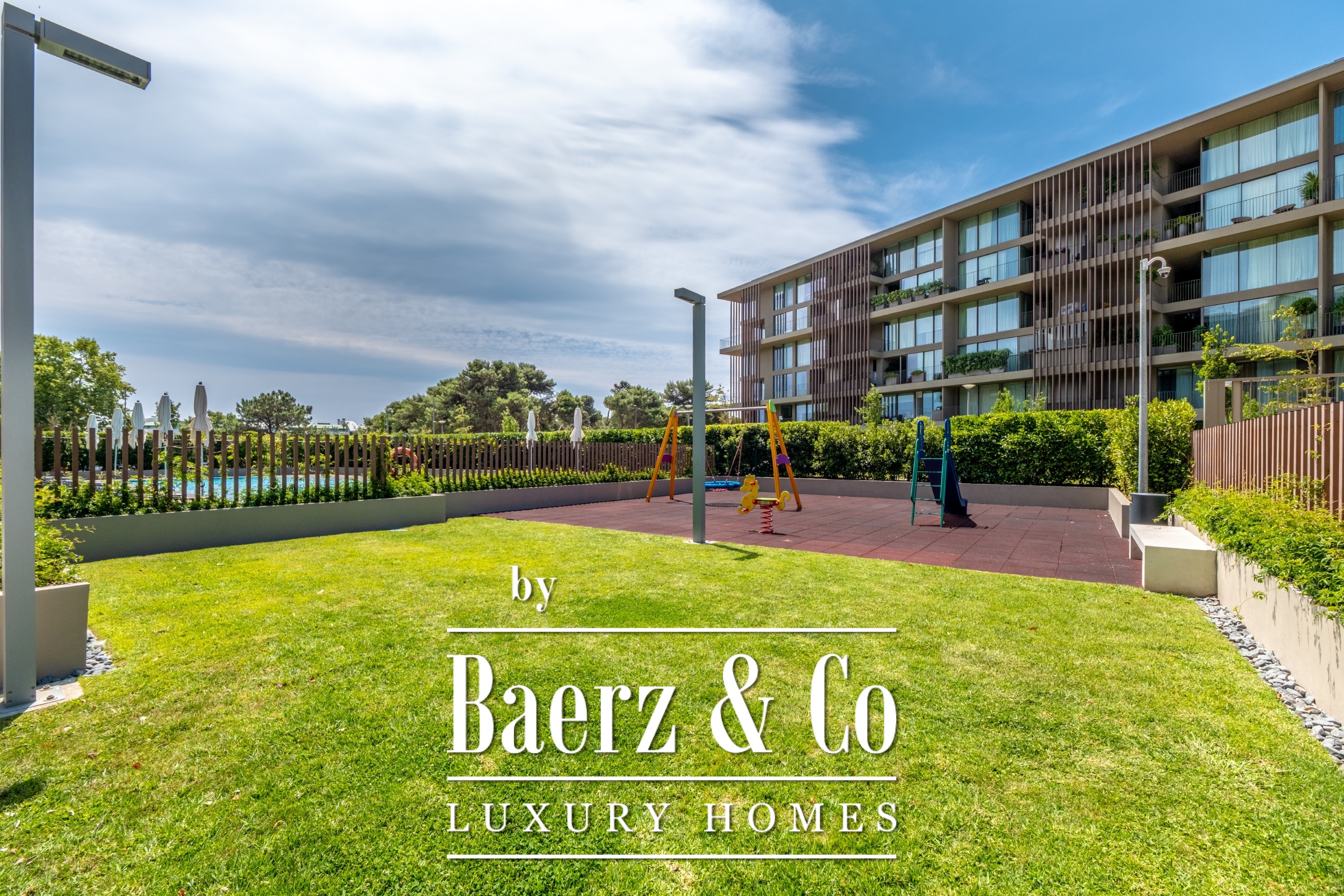 Two-bedroom apartment on the 2nd floor of the One Living Condominium, built in 2021.The apartment features an entrance hall, a living room (43m²) with access to a terrace (22m²), a kitchen (12m²) equipped with Miele appliances, a guest powder room (2m²), two suites (15m²), including a master suite (21m²) with a walk-in closet. Both suites have access to a terrace (19m²) with a laundry area. Two parking spaces and a storage room are available. Ducted air conditioning, plenty of natural light, and excellent finishes are provided. The condominium features a swimming pool, playground, fully equipped gym, changing rooms and lockers, a gourmet area with a barbecue, and a shopping area and supermarket.Located in the most exclusive area of Cascais, Gandarinha, known for