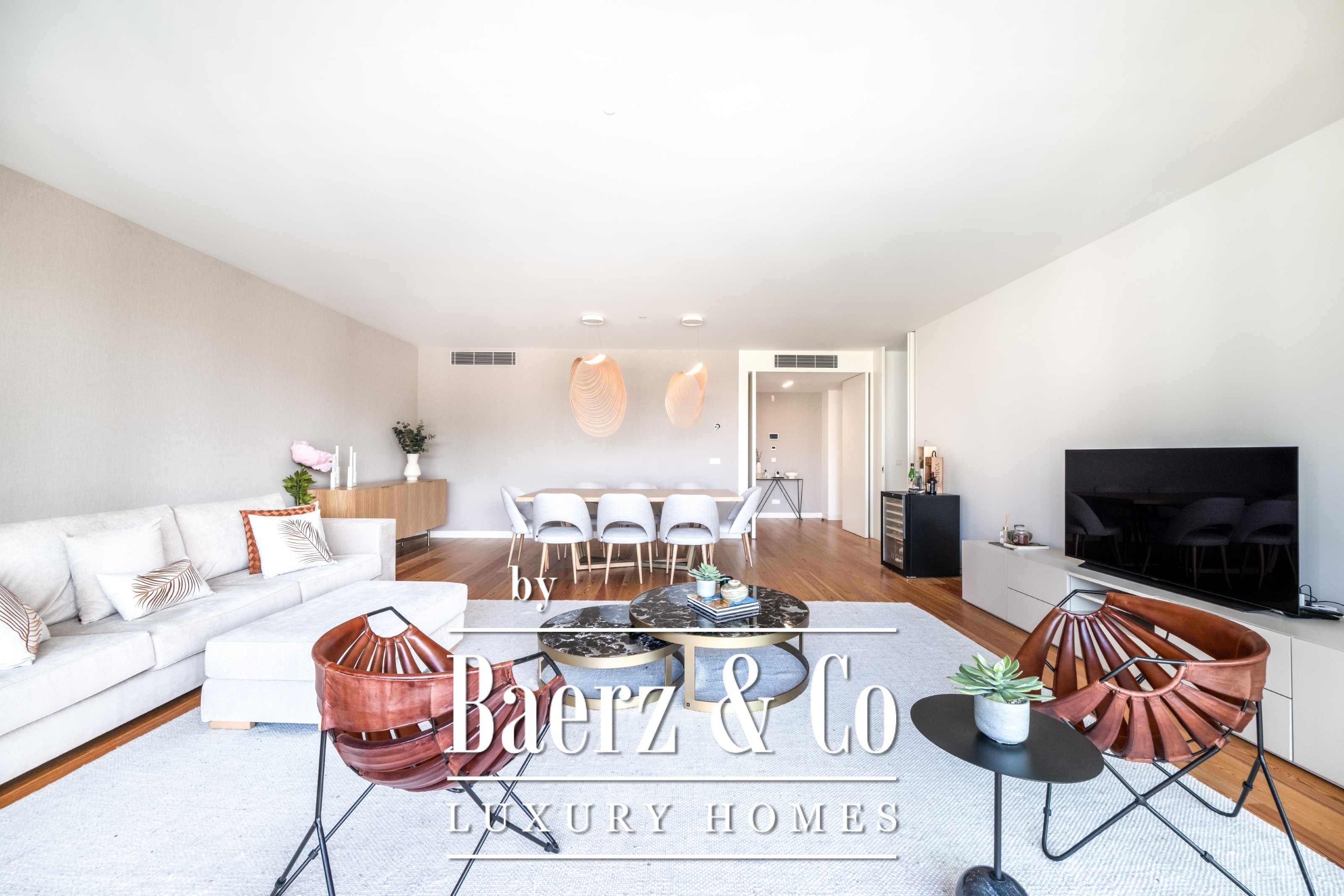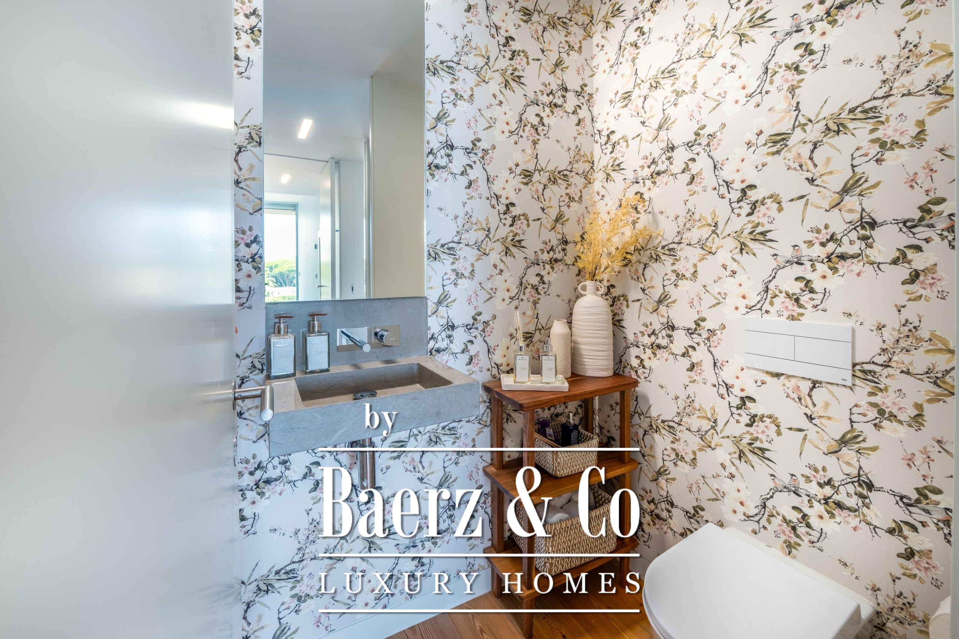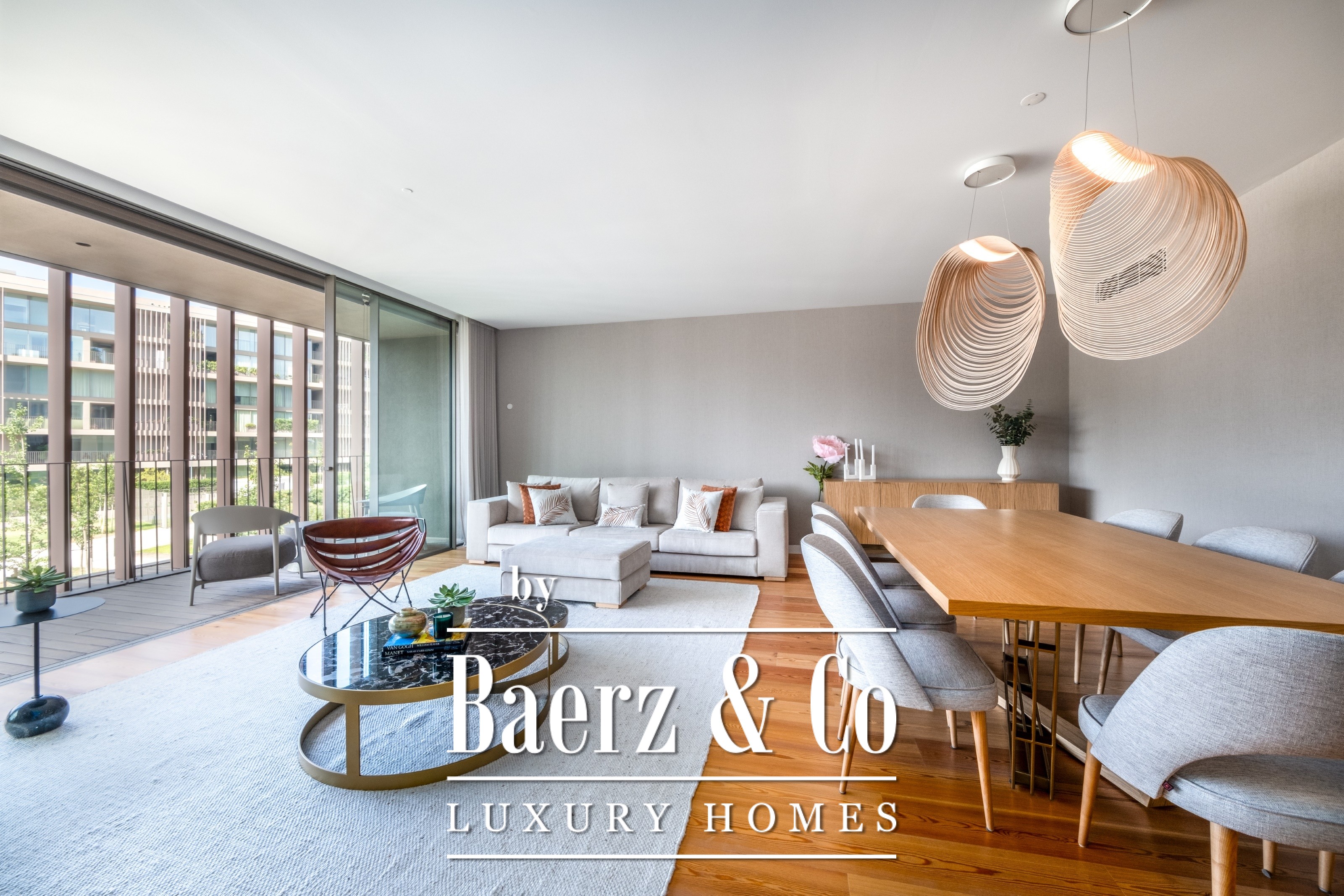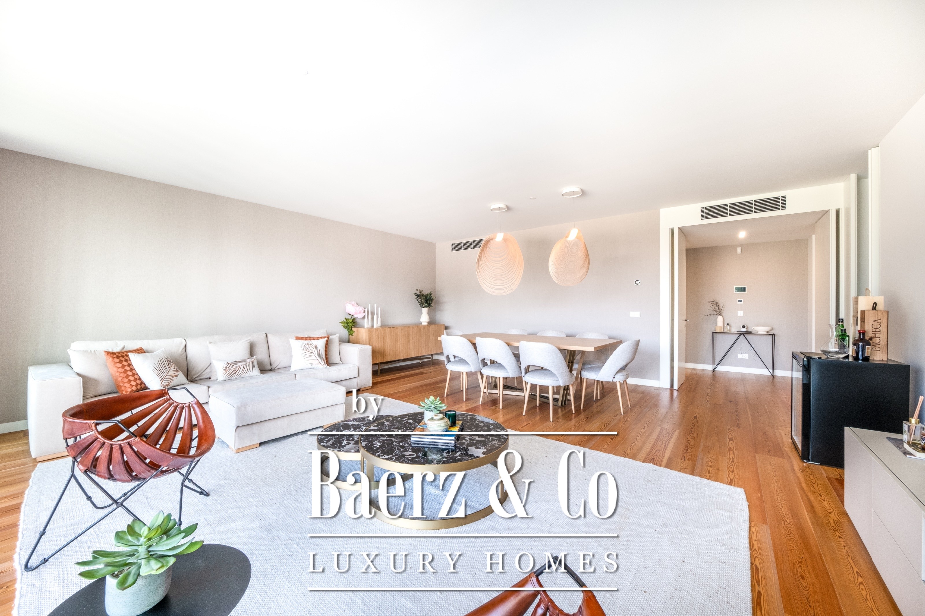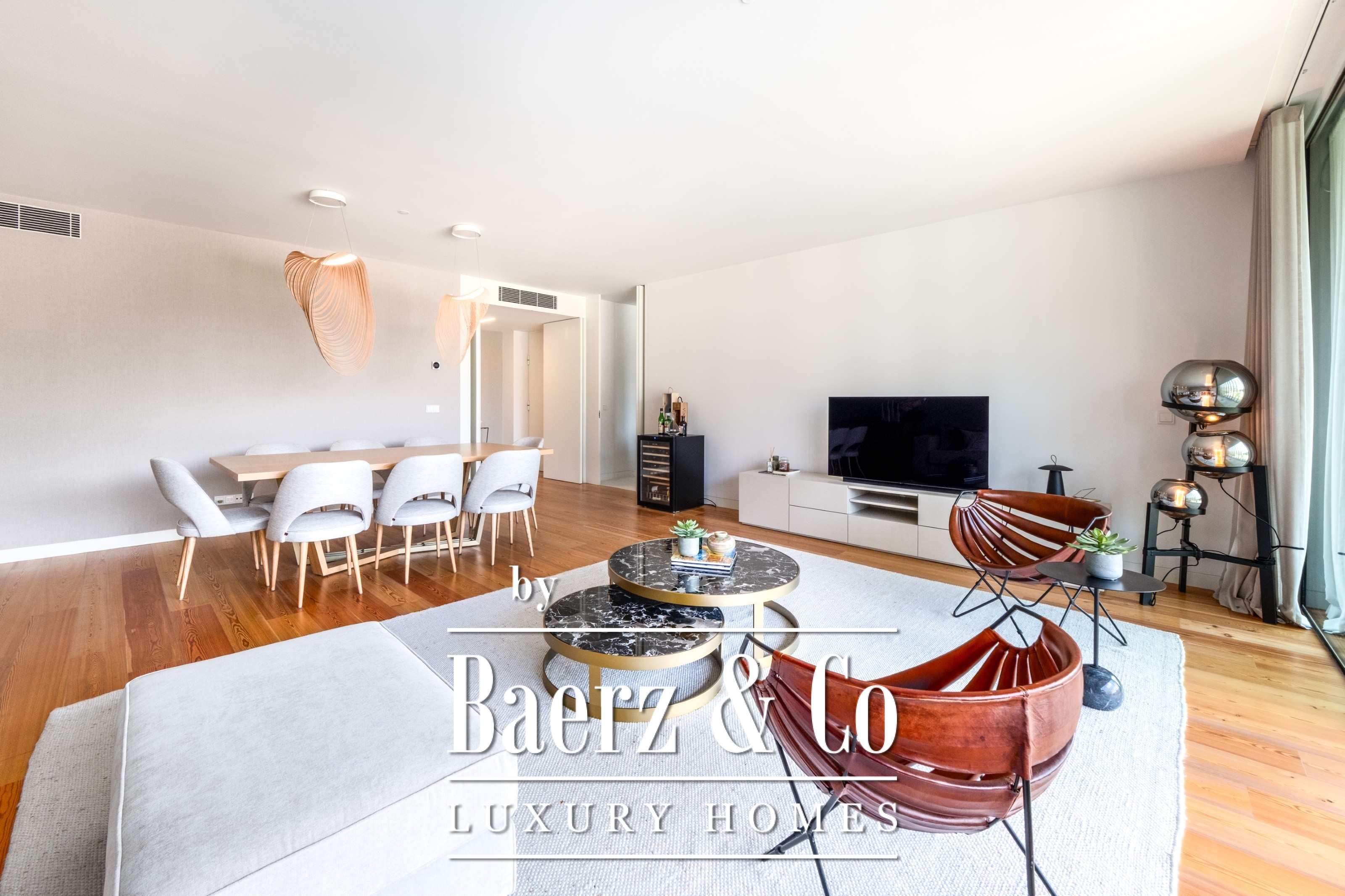 Two-bedroom apartment on the 2nd floor of the One Living Condominium, built in 2021.The apartment features an entrance hall, a living room (43m²) with access to a terrace (22m²), a kitchen (12m²) equipped with Miele appliances, a guest powder room (2m²), two suites (15m²), including a master suite (21m²) with a walk-in closet. Both suites have access to a terrace (19m²) with a laundry area. Two parking spaces and a storage room are available. Ducted air conditioning, plenty of natural light, and excellent finishes are provided. The condominium features a swimming pool, playground, fully equipped gym, changing rooms and lockers, a gourmet area with a barbecue, and a shopping area and supermarket.Located in the most exclusive area of Cascais, Gandarinha, known for
