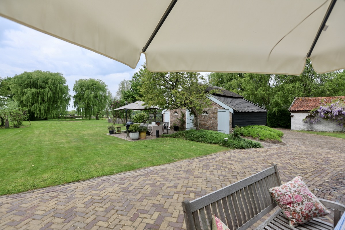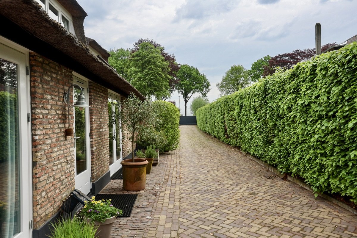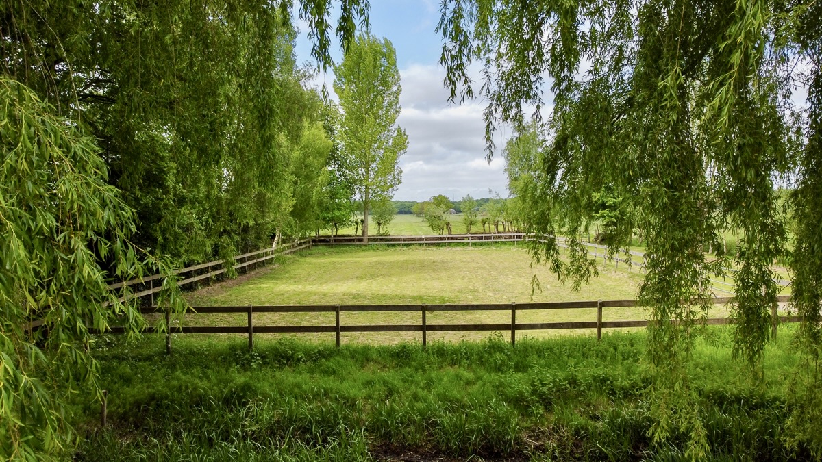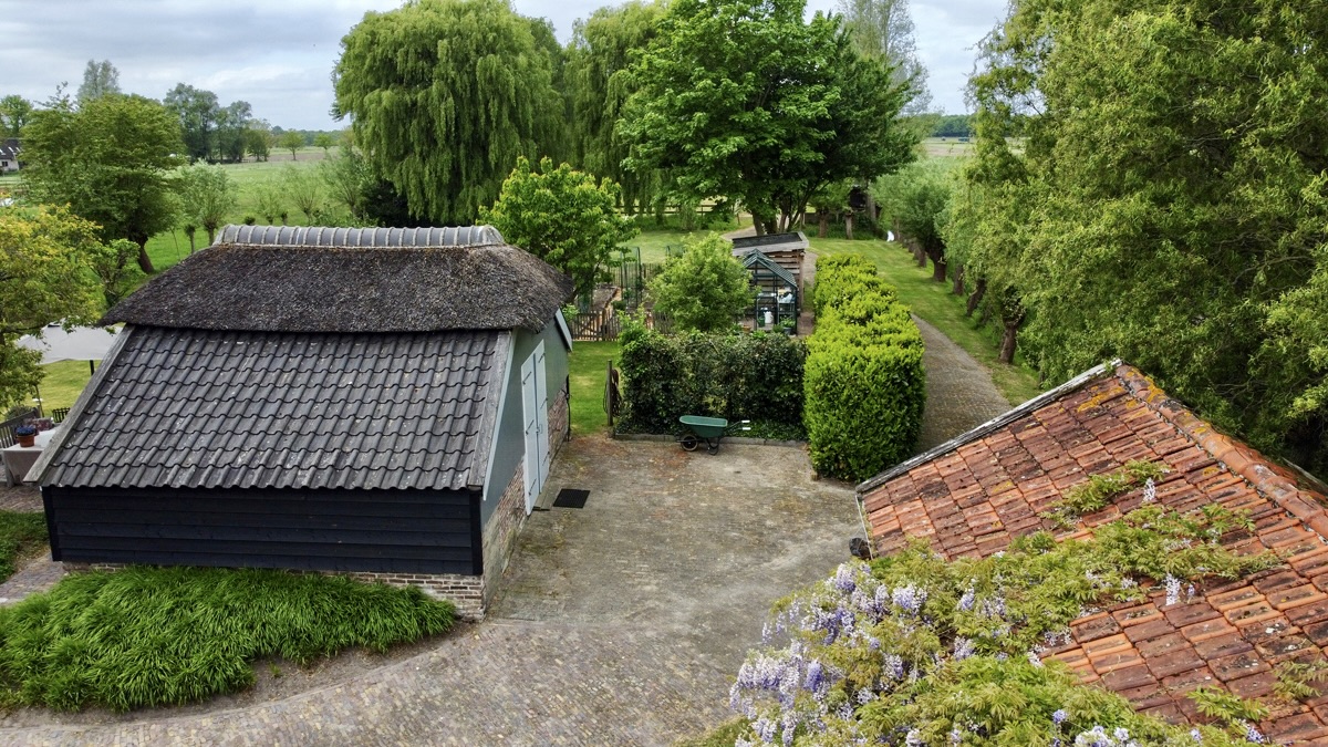 Aan het einde van een lang oprijpad – dat slechts voor een gedeelte gedeeld wordt met twee andere woningen – opent een elektrisch hek de poort naar jouw eigen stukje paradijs. Hier bevindt zich deze charmante rietgedekte woonboerderij, het achterste gedeelte omringd door weidsheid en mooie oude treurwilgen. Op een perceel van circa 1,1 hectare en een woonoppervlak van 264 m² voelt het hier alsof je een hoofdstuk uit een landelijke droom binnenstapt. 2 bijgebouwen met ieder een oppervlak van ca. 40m2: een voormalig paardenstal en een schuur. Tevens is er een voormalige buitenbak met verlichting.