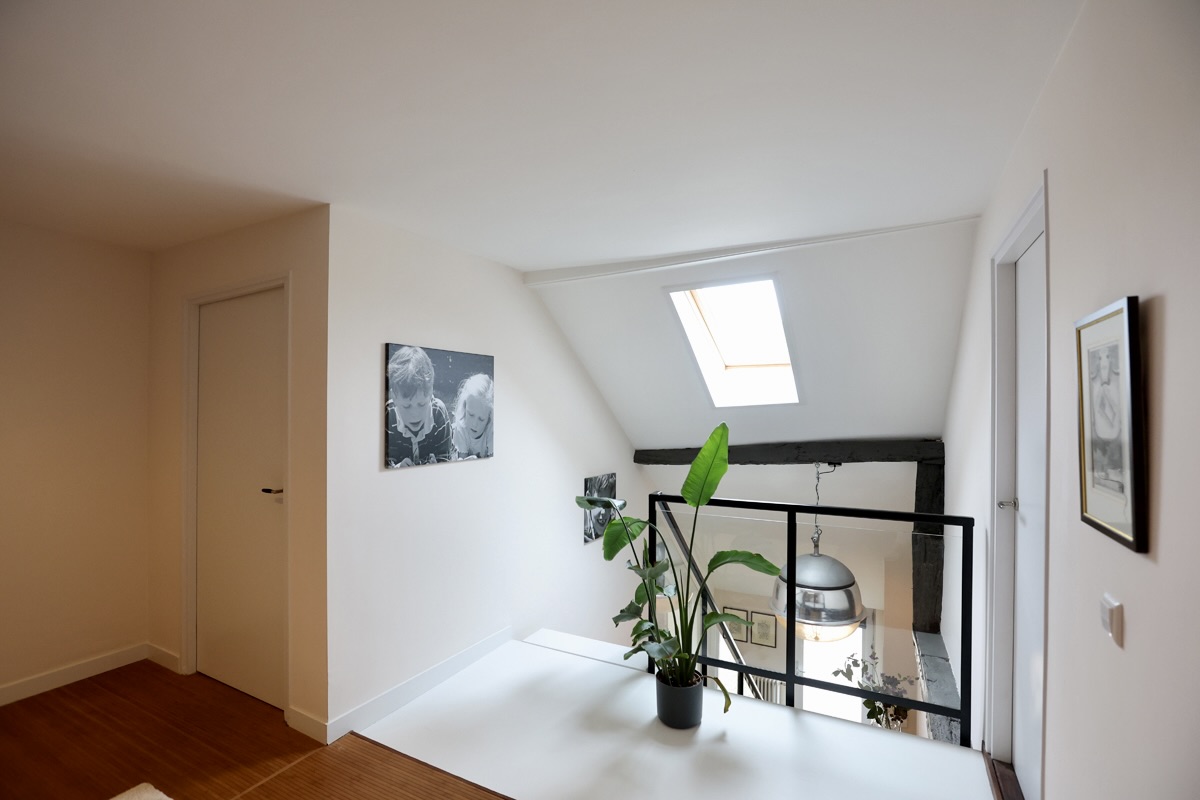 De eerste verdieping heeft alles wat je nodig hebt voor gezinsleven of logees: een sfeervolle ouderslaapkamer met zicht tot in de nok en vaste kasten, waarbij het uitzicht over de weilanden zorgt voor een rustige start van elke dag. Verder zijn er twee gezellige kinderkamers, evenals een tweede badkamer met douche, toilet en wastafelmeubel – zodat iedereen in huis zijn of haar eigen plek heeft, en natuurlijk bergruimte.