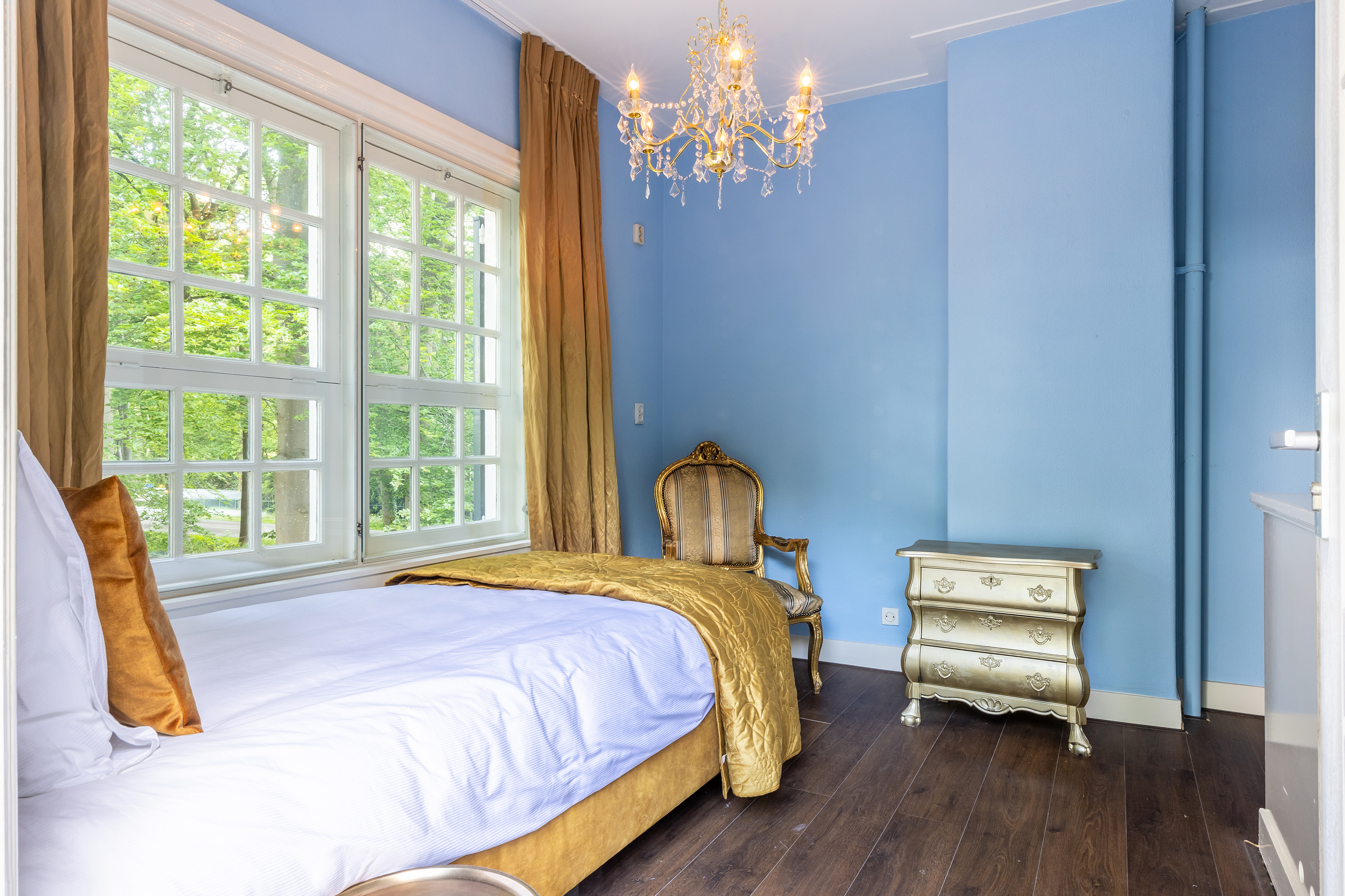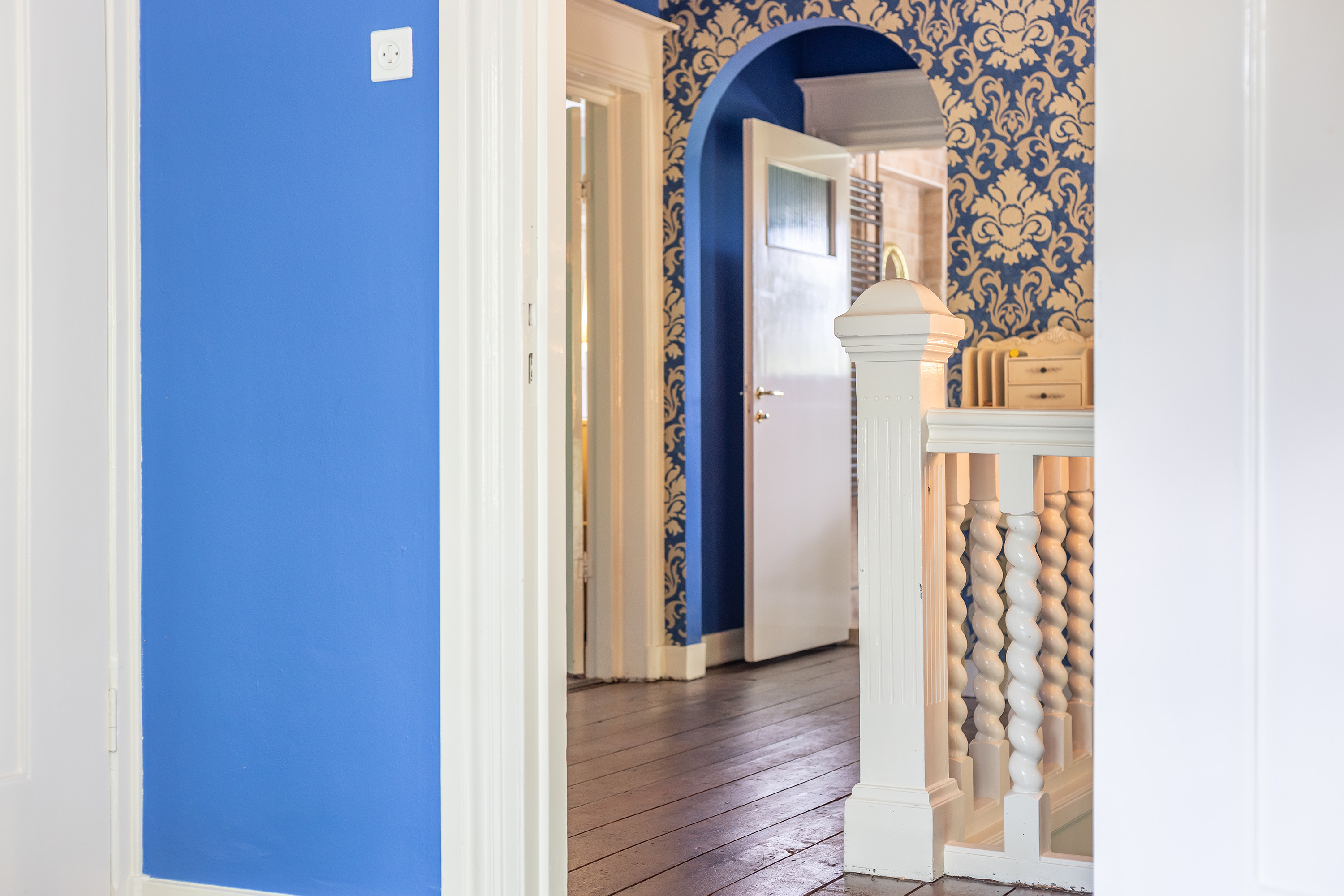 Op de eerste verdieping zorgt de statige bordestrap met vide voor een ruimtelijke overgang naar de slaapverdieping. De ouderslaapkamer aan de achterzijde biedt rust en ook een directe toegang tot een extra kamer die uitstekend kan dienen als garderobe of privéwerkplek. Verder zijn er nog twee volwaardige slaapkamers voor een tweepersoonsbed, waarvan één met een eigen badkamer. Alle kamers zijn voorzien van praktische inbouwkasten. De vierde slaapkamer is geschikt als kinderkamer en heeft toegang tot het dakterras.