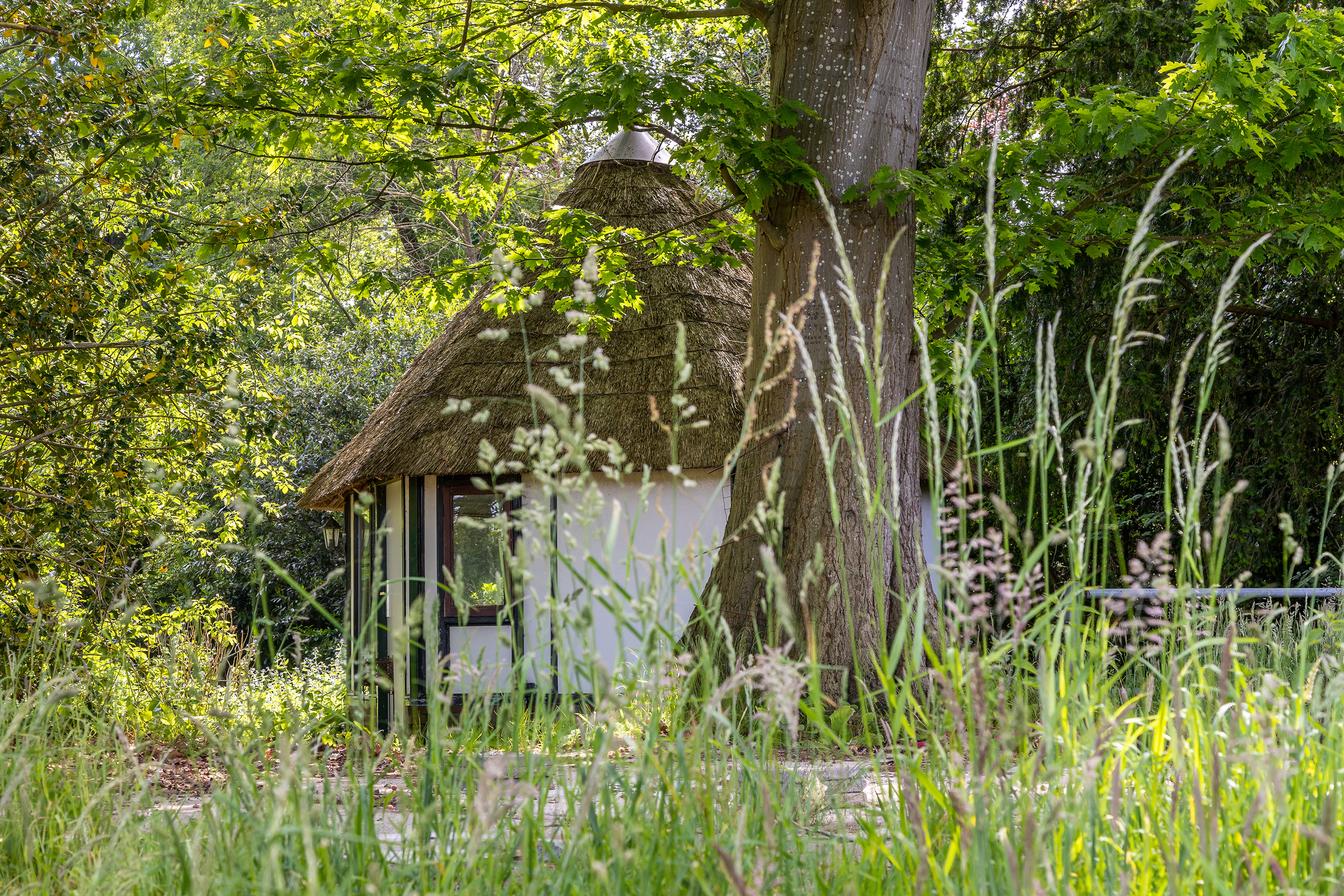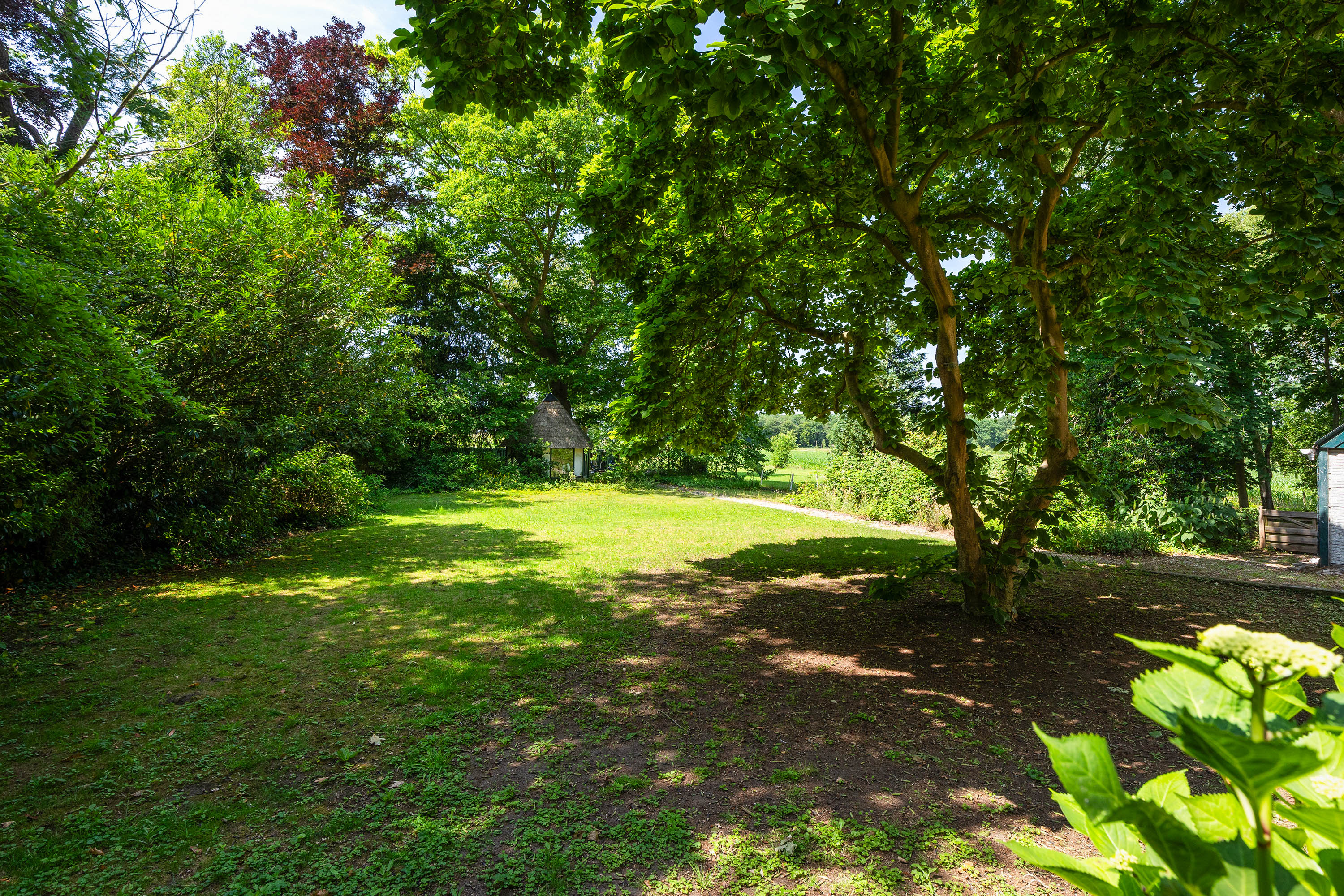 Tot slot beschikt het perceel over meerdere bijgebouwen. Een volledig geïsoleerde stenen schuur met verwarming biedt comfort voor diverse doeleinden. De vrijstaande garage met zadeldak is geschikt voor opslag, en een charmante rieten berging versterkt het landelijke karakter van het geheel.