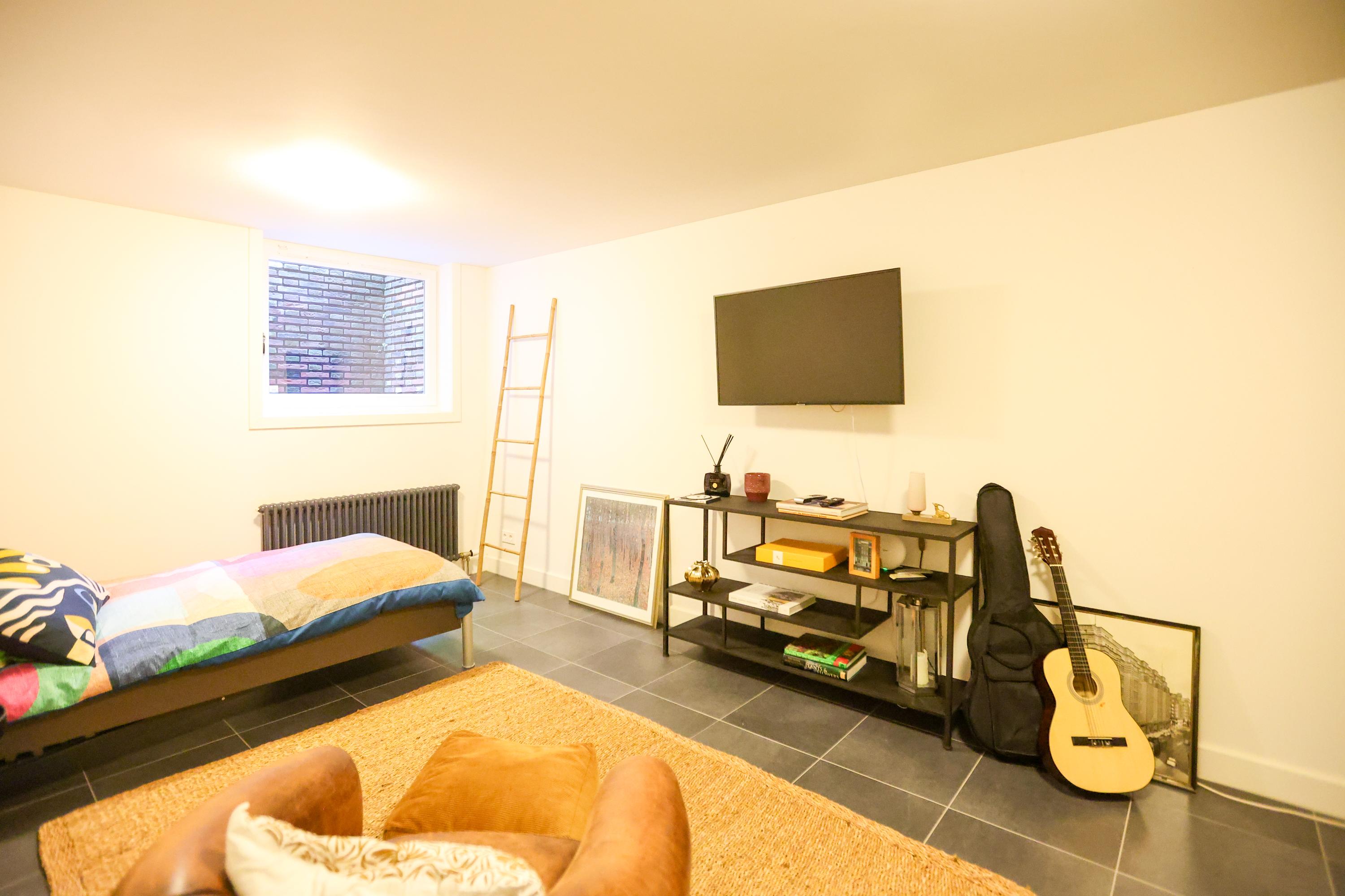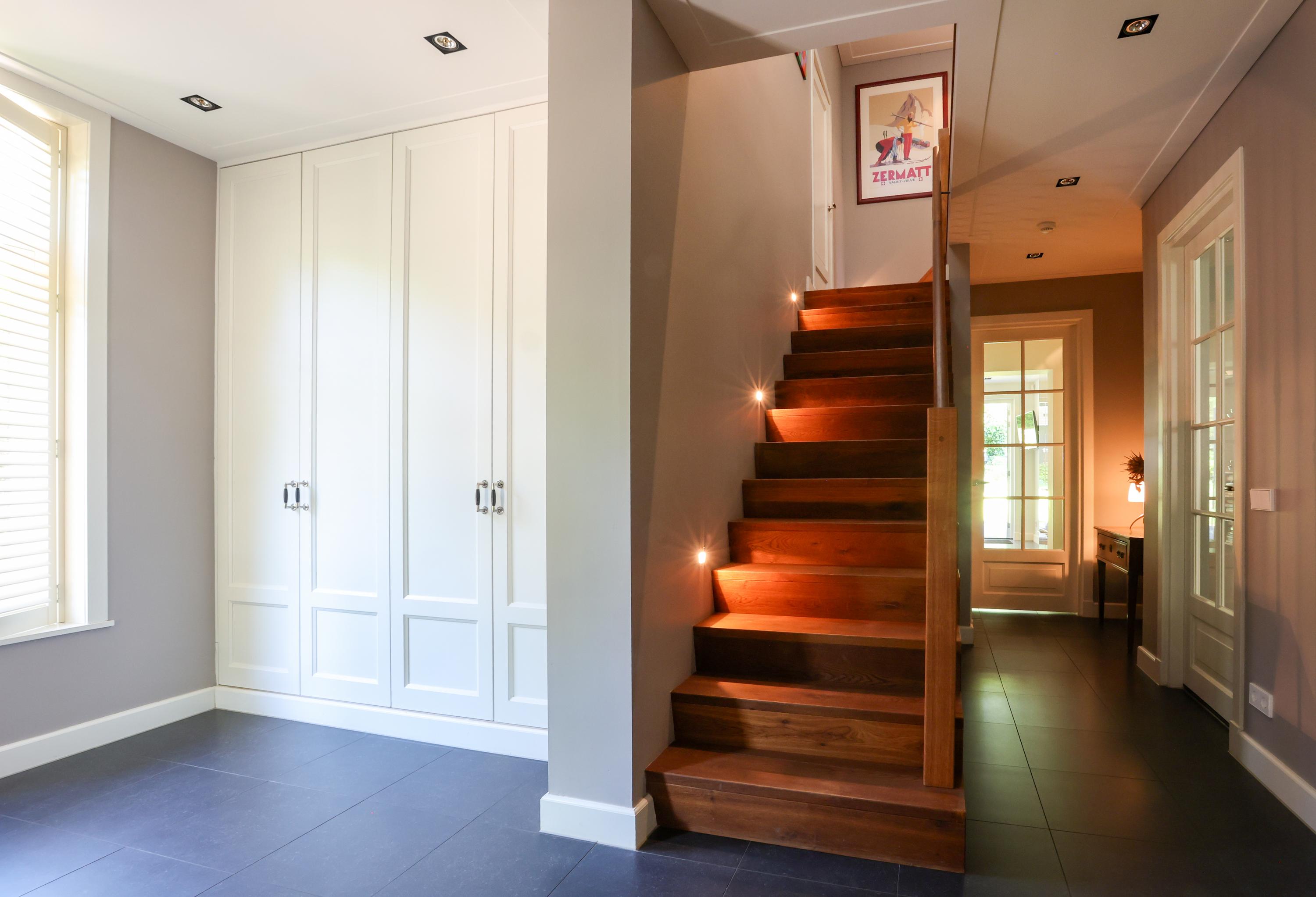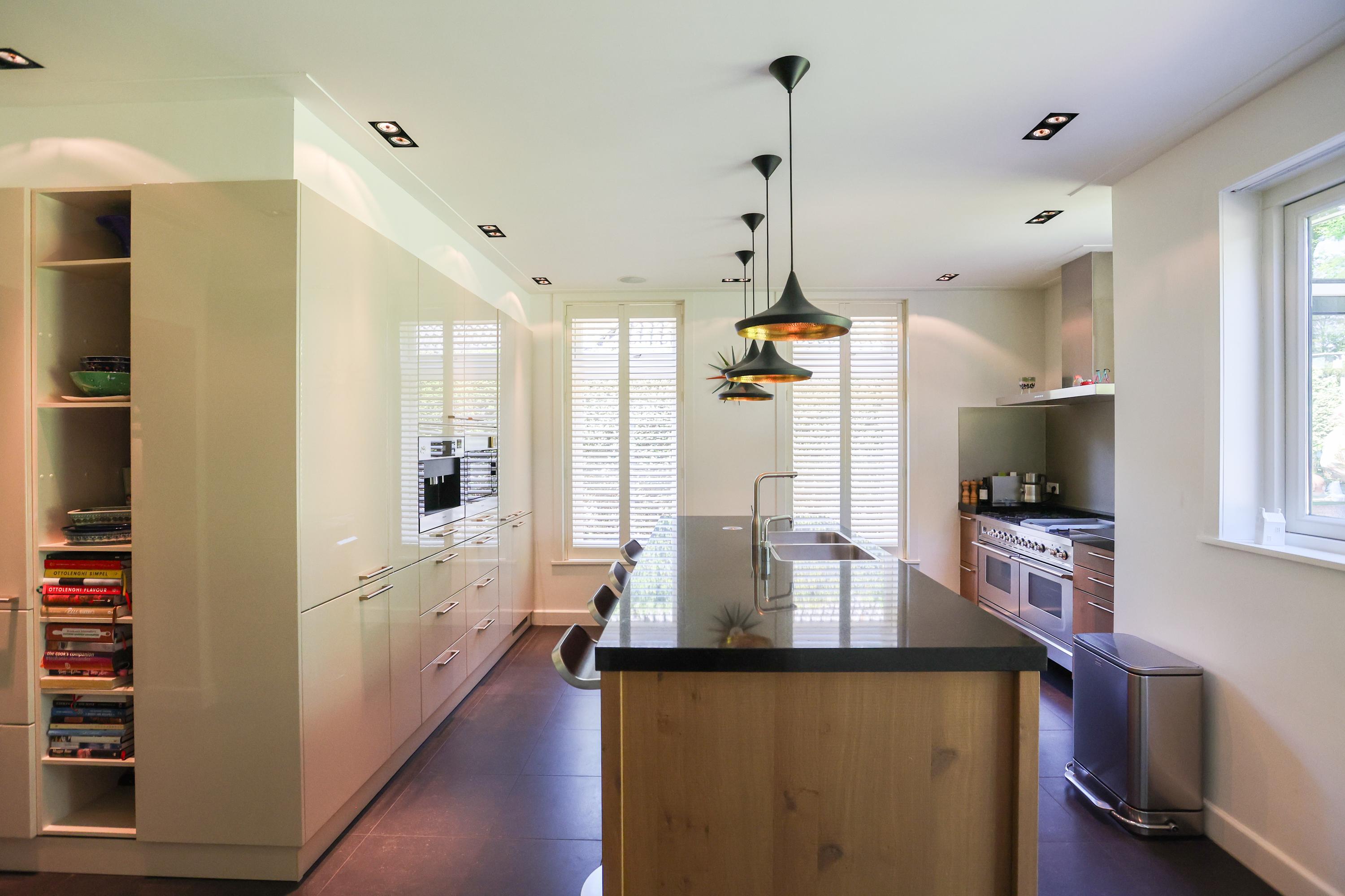 De royale hal biedt toegang tot een gastentoilet, praktische bij/waskeuken en een verrassend compleet souterrain met logeerkamer, bergruimte én een eigen wijngedeelte. De woonkamer is meer dan sfeervol, een prachtige parketvloer, ruim en voorzien van open haard. Via de en suite eetkamer ook met dezelfde parketvloer (en zie ook de impressie hoe de eetkamer eruit ziet met een lichtstraat), bereik je de moderne lichte woonkeuken, voorzien van alle denkbare inbouwapparatuur. Vanuit de keuken en eetkamer is er direct contact met het terras en de tuin – koken met uitzicht, noemen we dat.