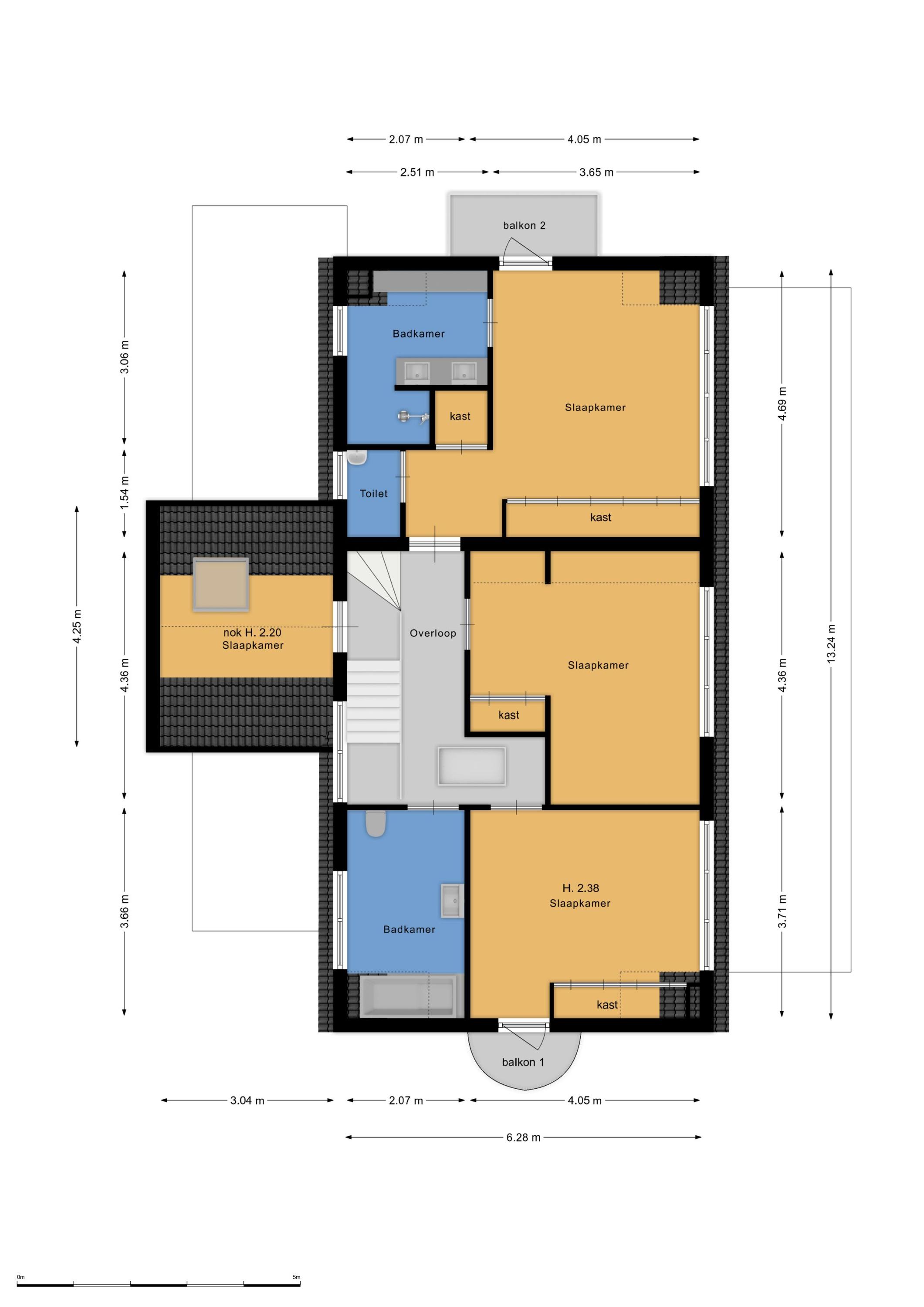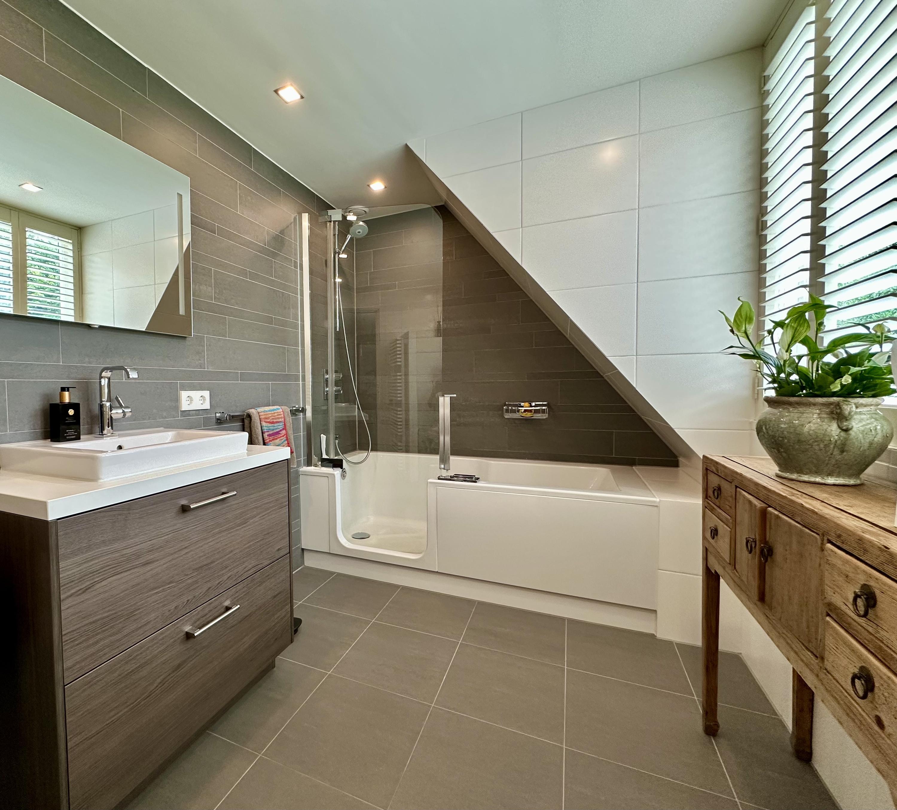 Op de 1ste verdieping, een speelse kinderkamer, twee slaapkamers met vaste kasten, een moderne badkamer met bad, toilet en wastafelmeubel. De ouderslaapkamer heeft een op maat gemaakte kastenwand en een eigen doorloop naar de tweede badkamer met wastafelmeubel inloopdouche, een separaat toilet en voor meer bergruimte is er een vliering.
