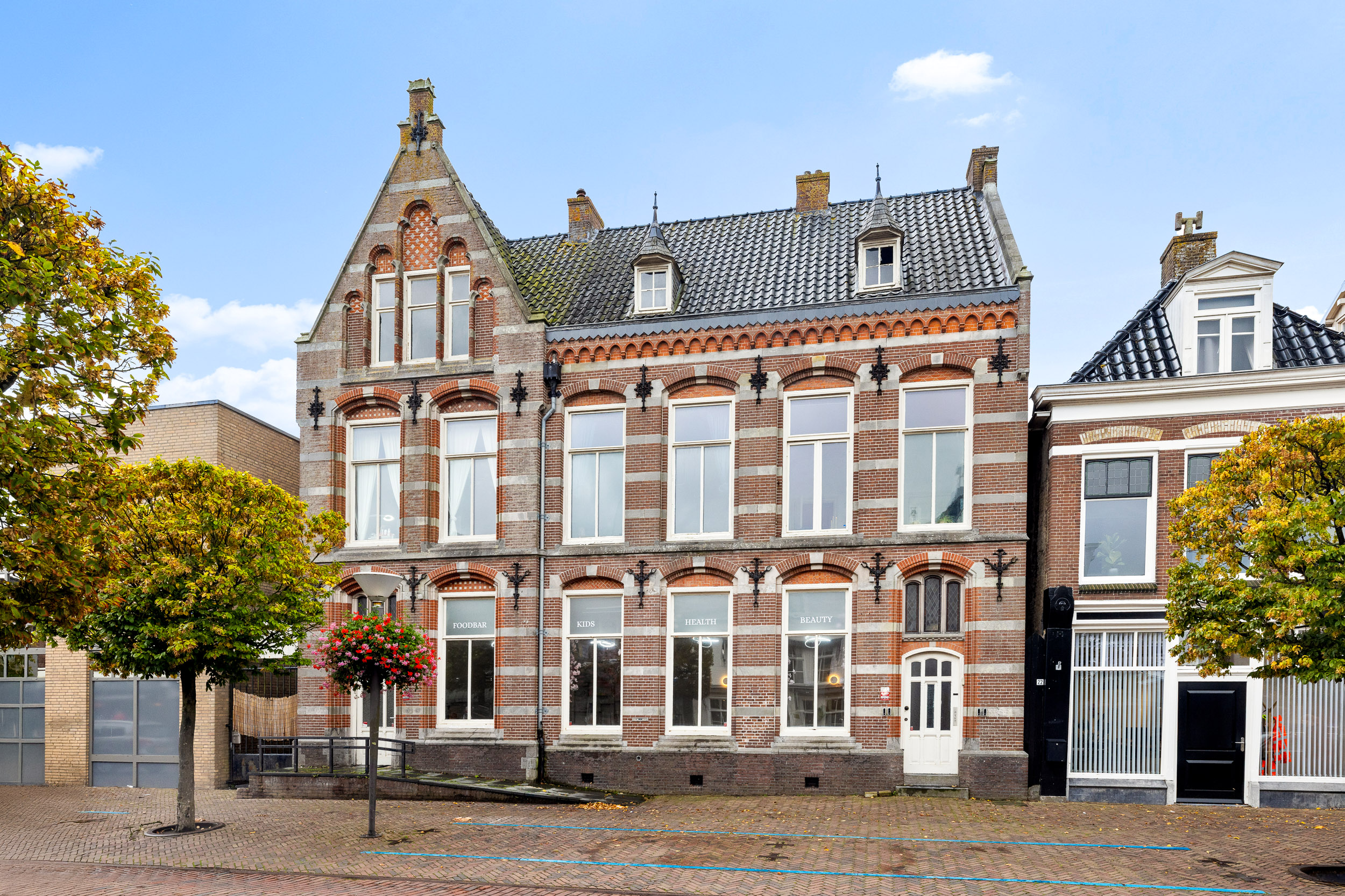 In de karakteristieke Midstraat, in het hart van Joure, staat dit imposante Rijksmonument uit 1904, ontworpen door architect en Rijksbouwmeester C.H. Peters (1847–1931). Het pand is een schitterend voorbeeld van Neogotische architectuur, verrijkt met verfijnde elementen uit de Neo-renaissance. De rijk bewerkte gevel, het gedetailleerde metselwerk en de originele ornamentiek ademen de grandeur van een vervlogen tijd.