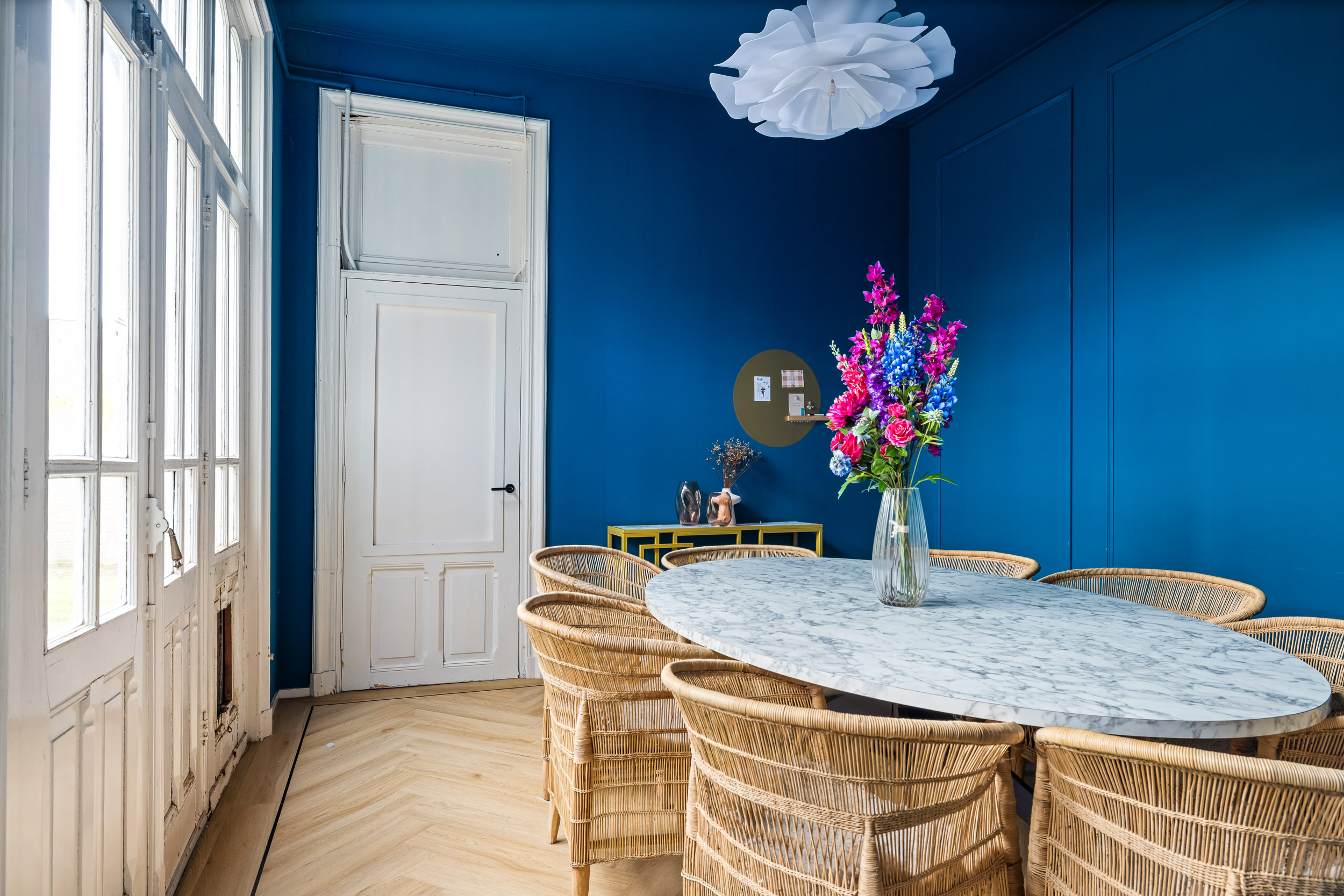 Een multifunctionele Friese stadsvilla met 470m2 woon-, werk- en bergruimte en omsloten tuin, centrumbestemming, 2 huisnummers, geschikt om te wonen en/of ondernemen. Uitstekende bereikbaarheid Randstad (1 uur) dankzij de snelle verbinding met de A6 en A7.