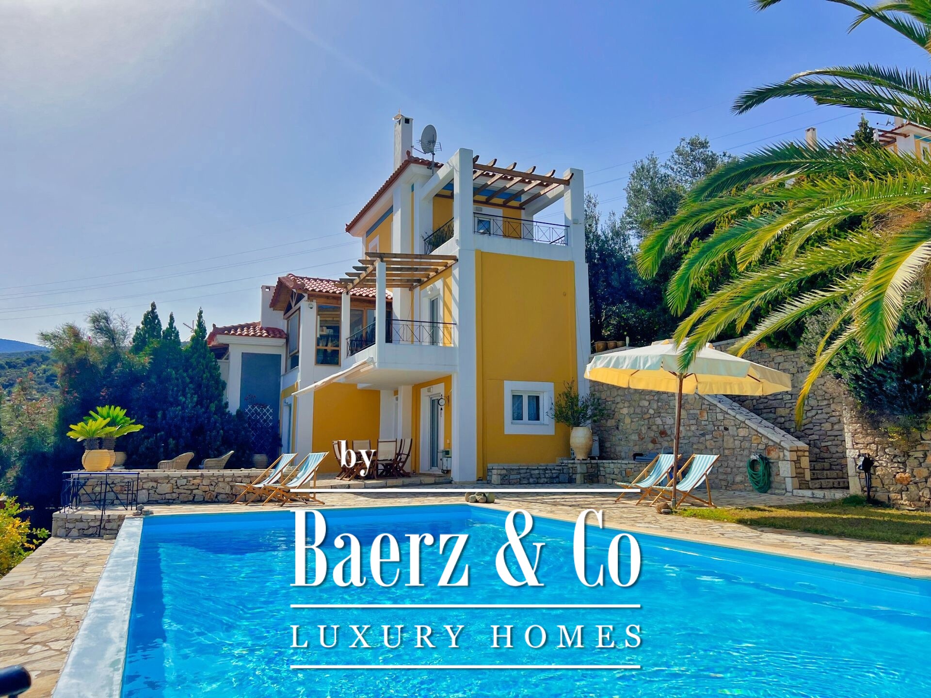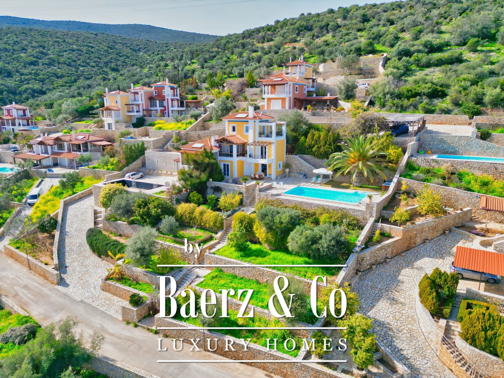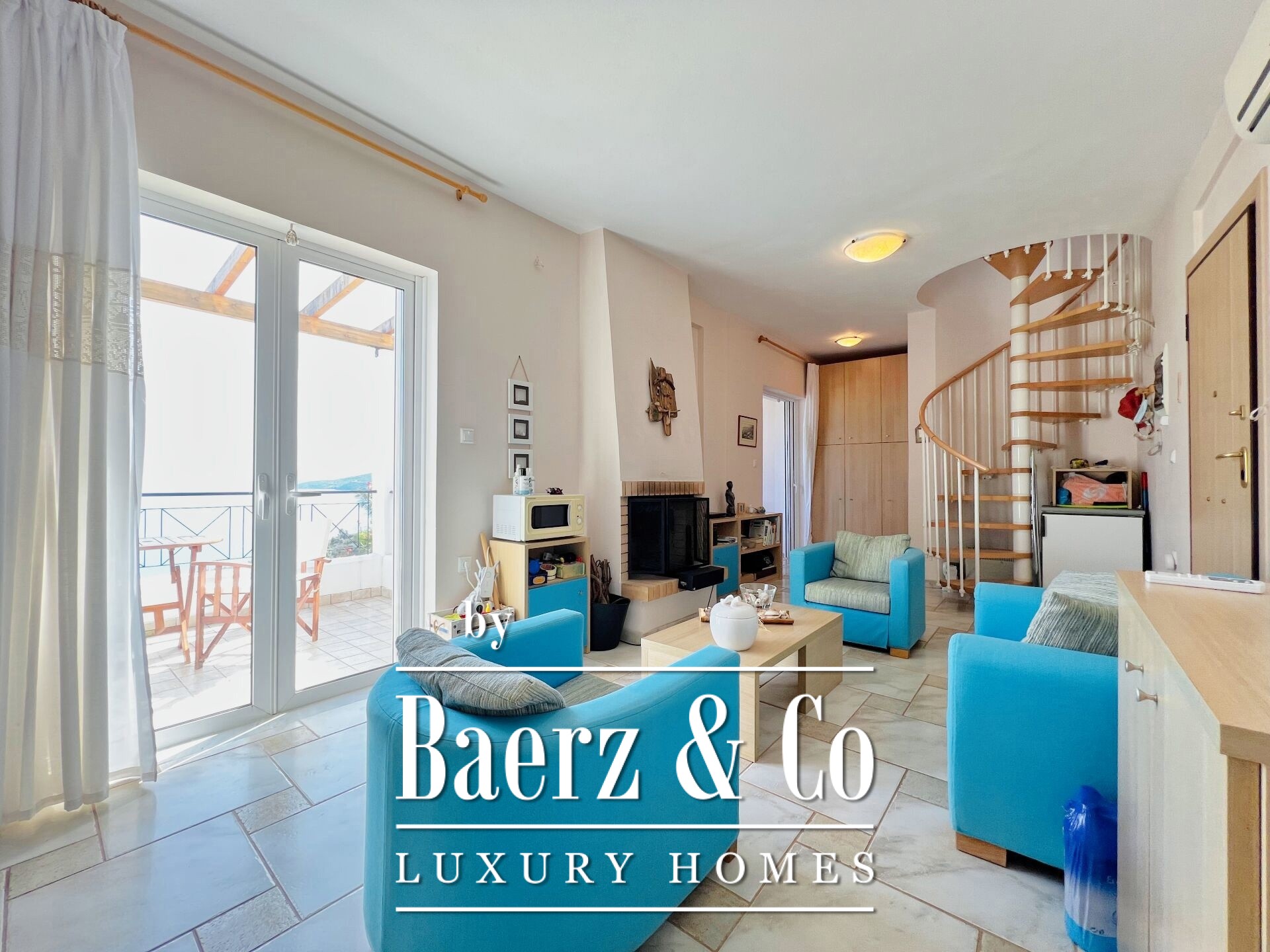 Deze woning in Kiveri, gelegen binnen een verfijnd residentieel complex en omgeven door een uniek landschap, is te koop. De woning beschikt over een totale woonoppervlakte van 114 m² op een royaal perceel van 1.100 m², waardoor er optimaal wordt genoten van privacy en ruimte. Weelderige begroeiing, markante rotsformaties en onbelemmerd panoramisch uitzicht over zee en bergen bepalen de sfeer van dit zelfstandige eigendom met drie woonlagen.
