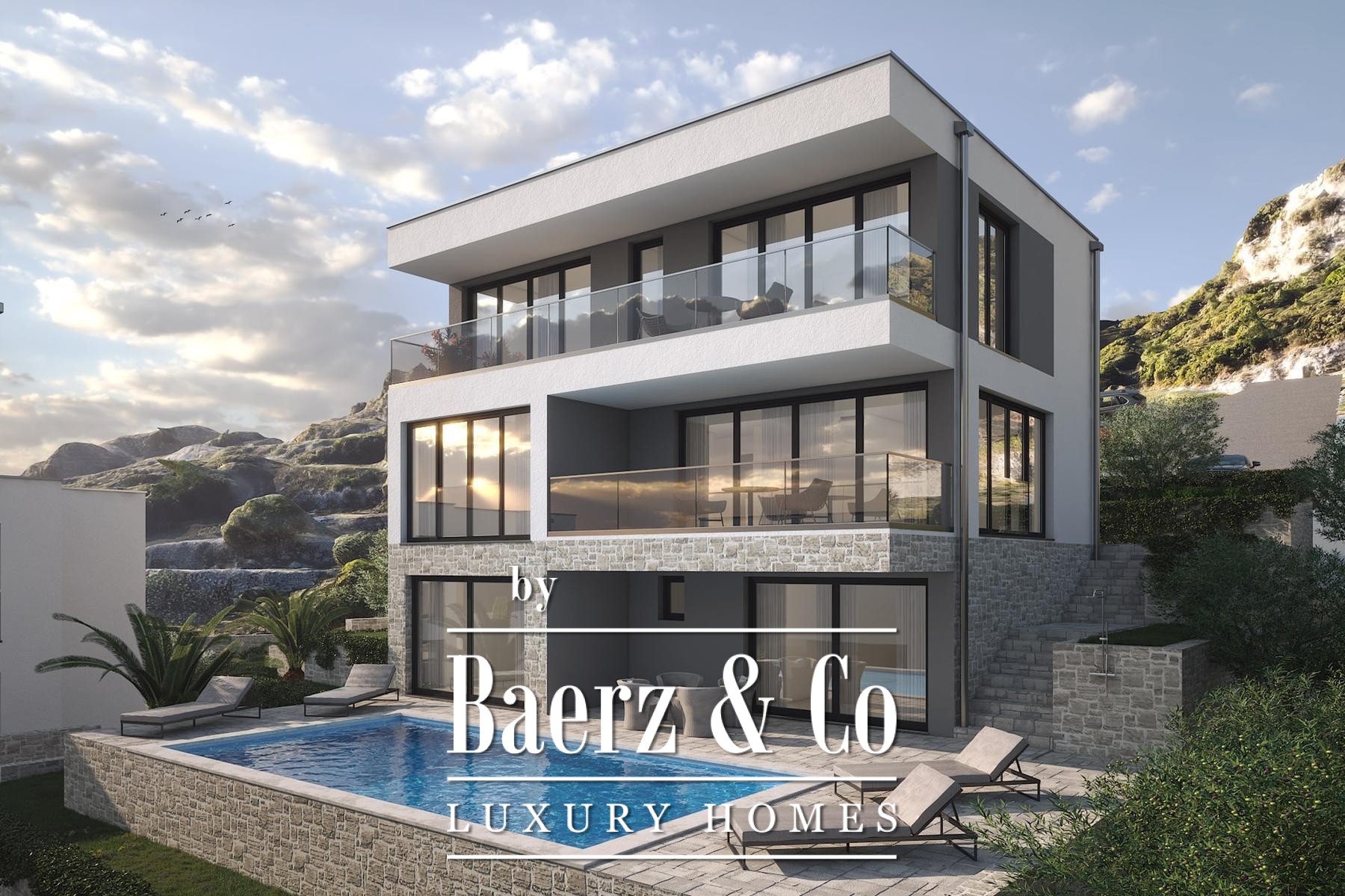 swimming pool, with a private parking space.The project will start at the end of 2025.The villa offers a beautiful view of the sea and the coast and the island of Korčula. The facility will be surrounded by a private garden with palm trees and Mediterranean plants that guarantees absolute privacy! An additional advantage of each of these properties will be a Dalmatian stone grill. The house will be built from the highest quality materials, and the villa will be connected to an intelligent system that can be controlled by all modern mobile phones.