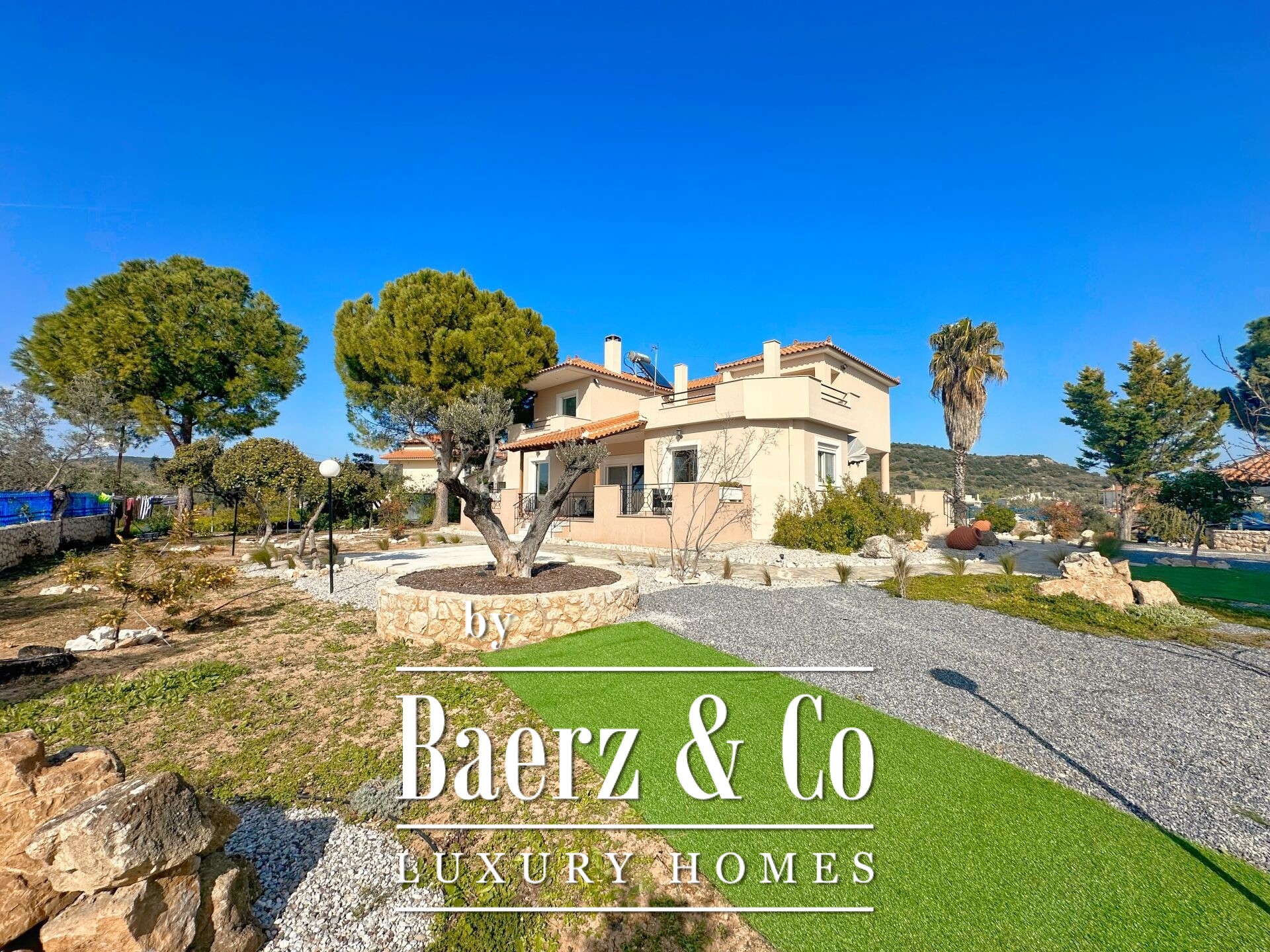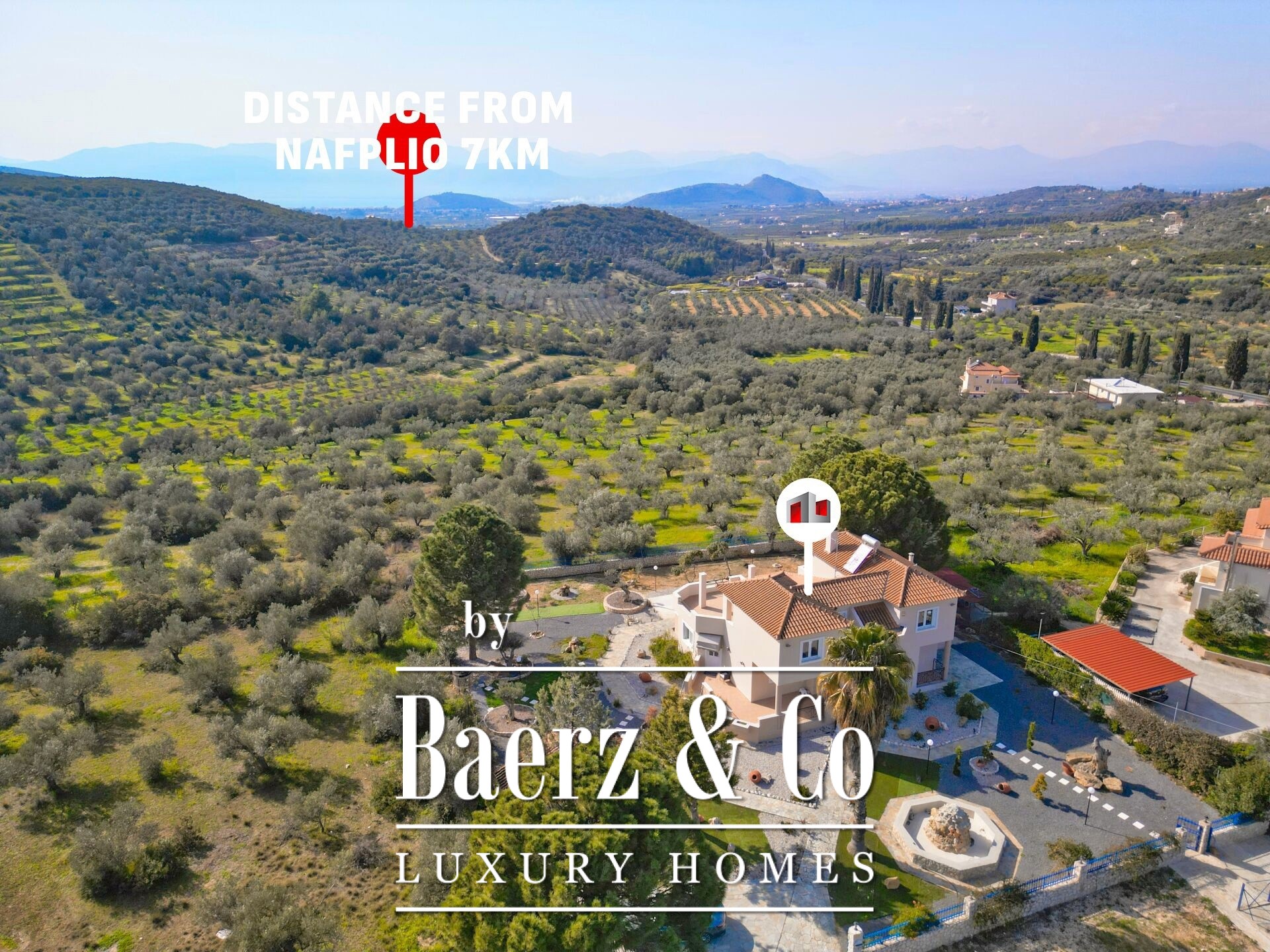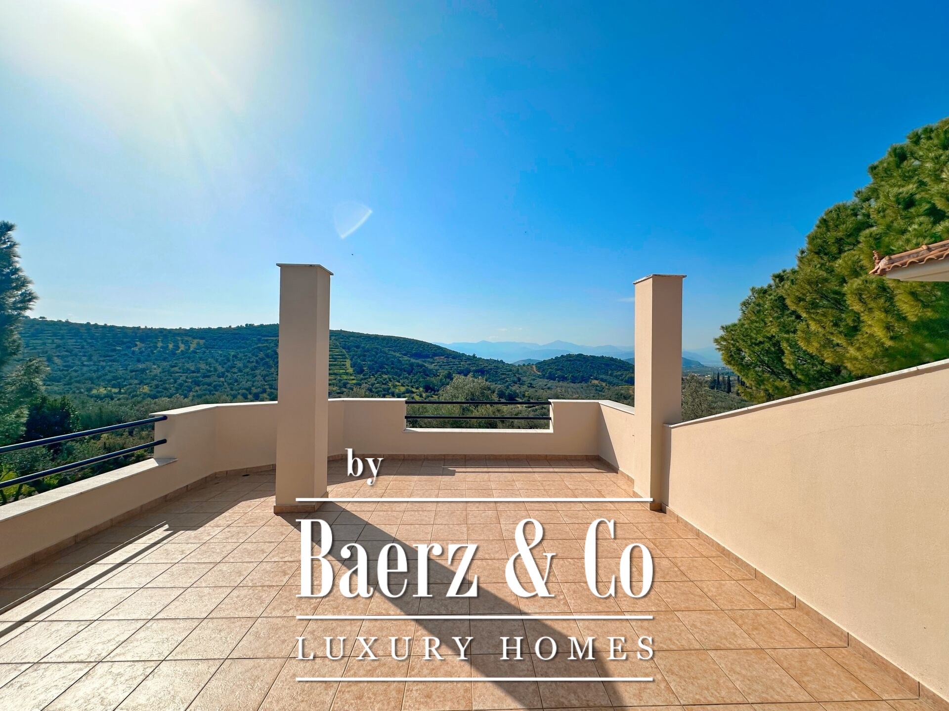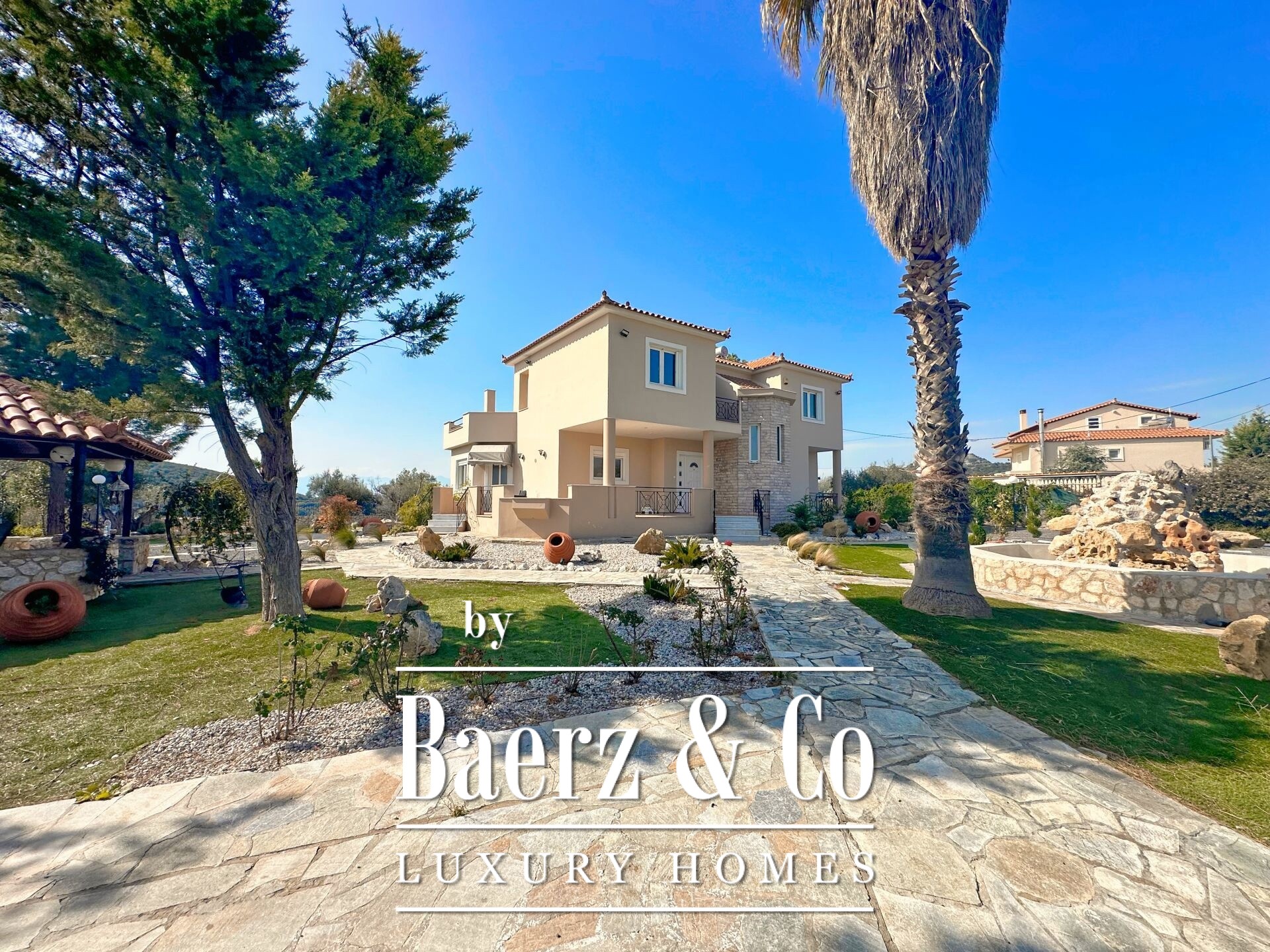 Vrijstaande woning Pyrgiotika Nafplio combineert op zeldzame wijze privacy, ruimtelijkheid en toegankelijkheid. Deze in 2003 gebouwde woning ligt op een perceel van 3.643 m² en biedt een woonoppervlakte van 240 m², ingebed in een natuurlijke omgeving met panoramisch uitzicht over het landschap en richting Nafplio.