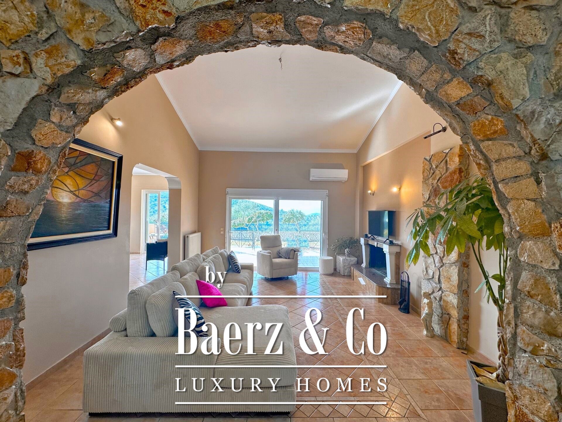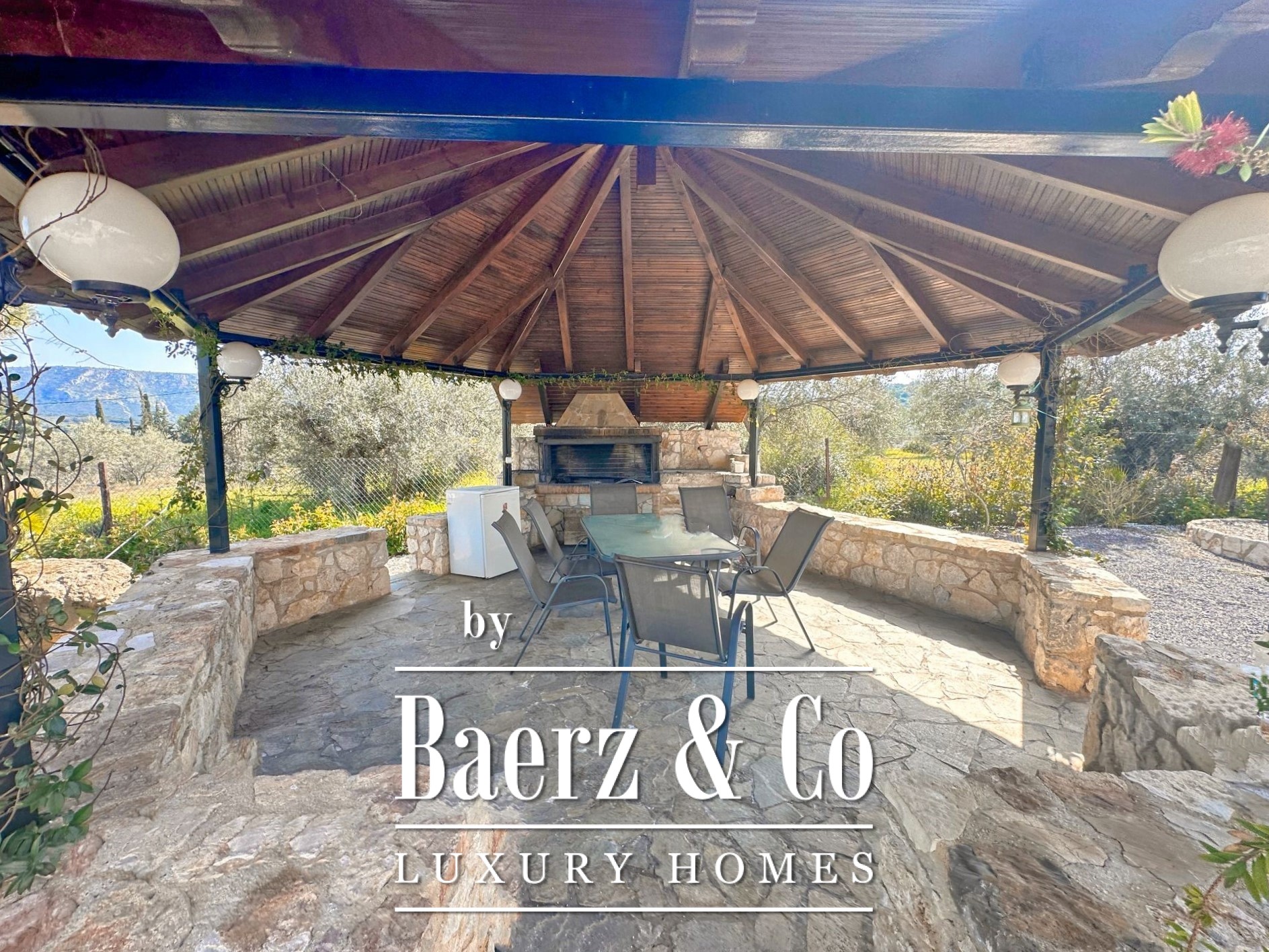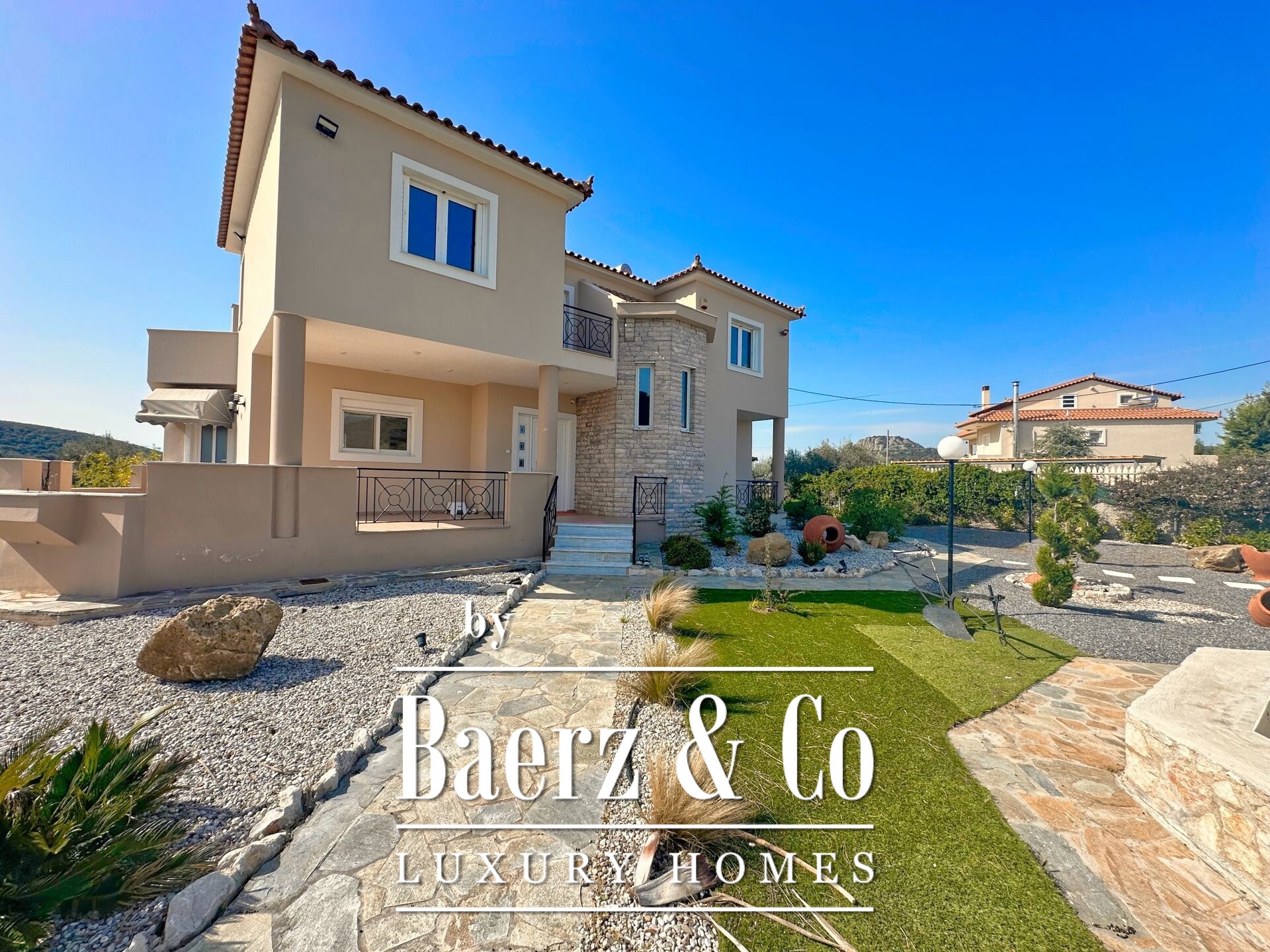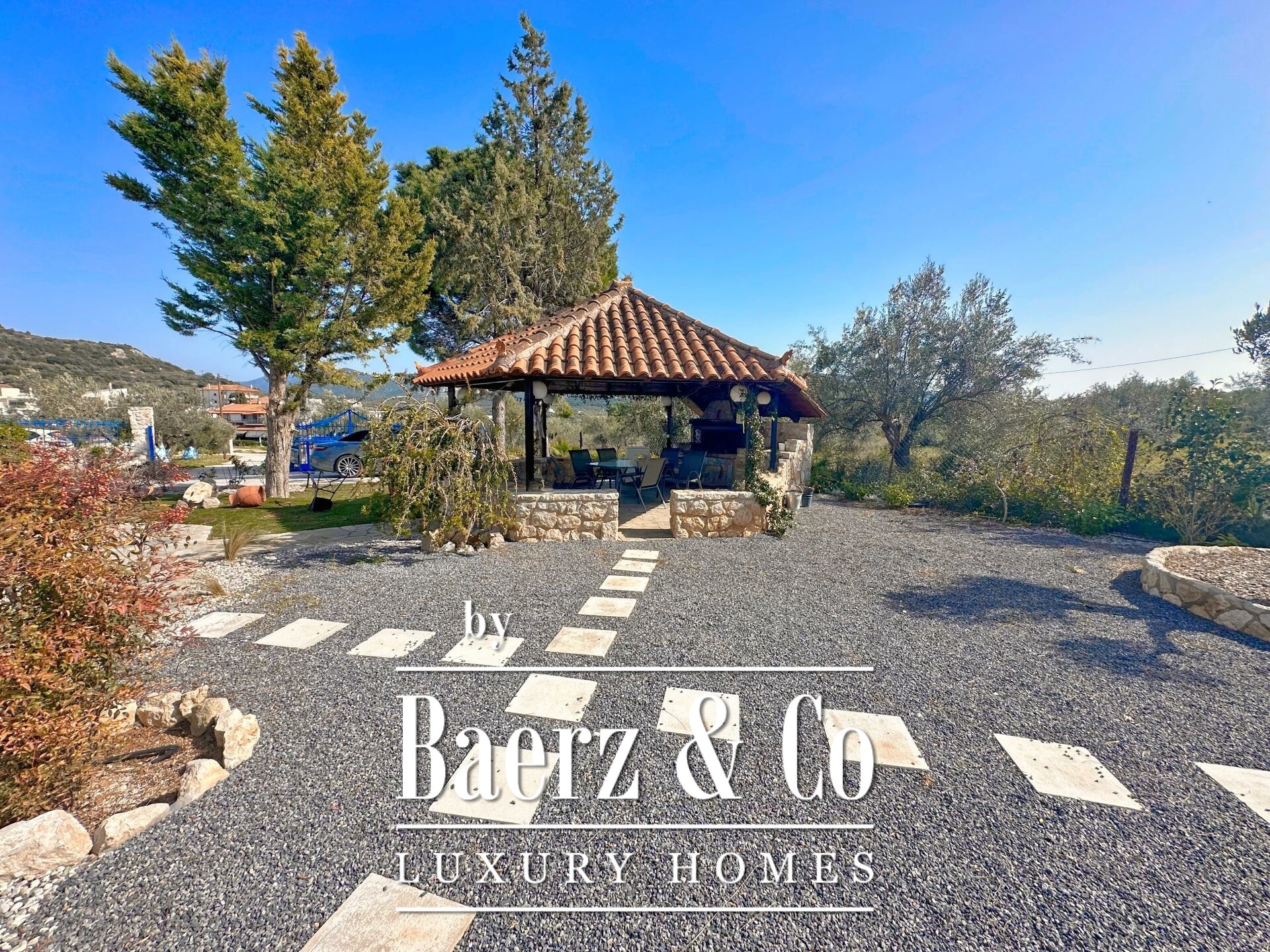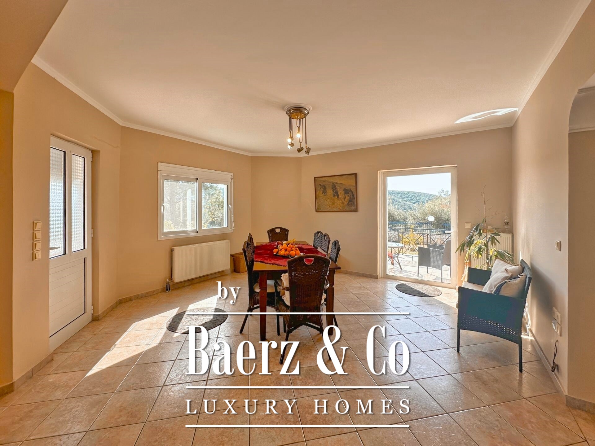 Vrijstaande woning Pyrgiotika Nafplio combineert op zeldzame wijze privacy, ruimtelijkheid en toegankelijkheid. Deze in 2003 gebouwde woning ligt op een perceel van 3.643 m² en biedt een woonoppervlakte van 240 m², ingebed in een natuurlijke omgeving met panoramisch uitzicht over het landschap en richting Nafplio.