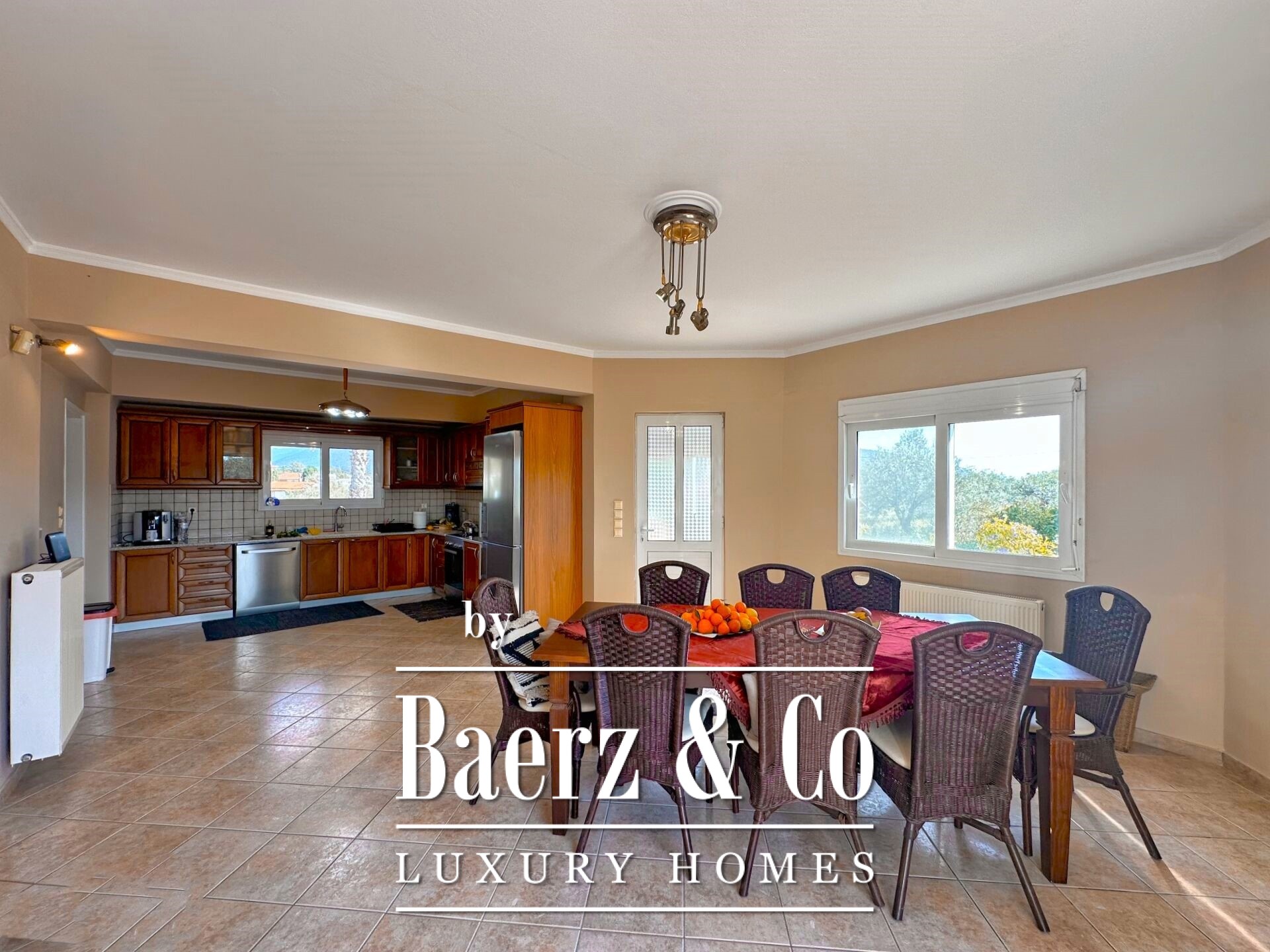 Praktische kenmerken zijn onder meer een berging van 10 m², een beveiligingssysteem met alarm en camera’s en kostenefficiënte irrigatie via het Anavalos-netwerk. Momenteel verhuurd tot november 2027, biedt deze woning rust, investeringspotentie en een bevoorrechte ligging op slechts enkele minuten van het centrum van Nafplio.