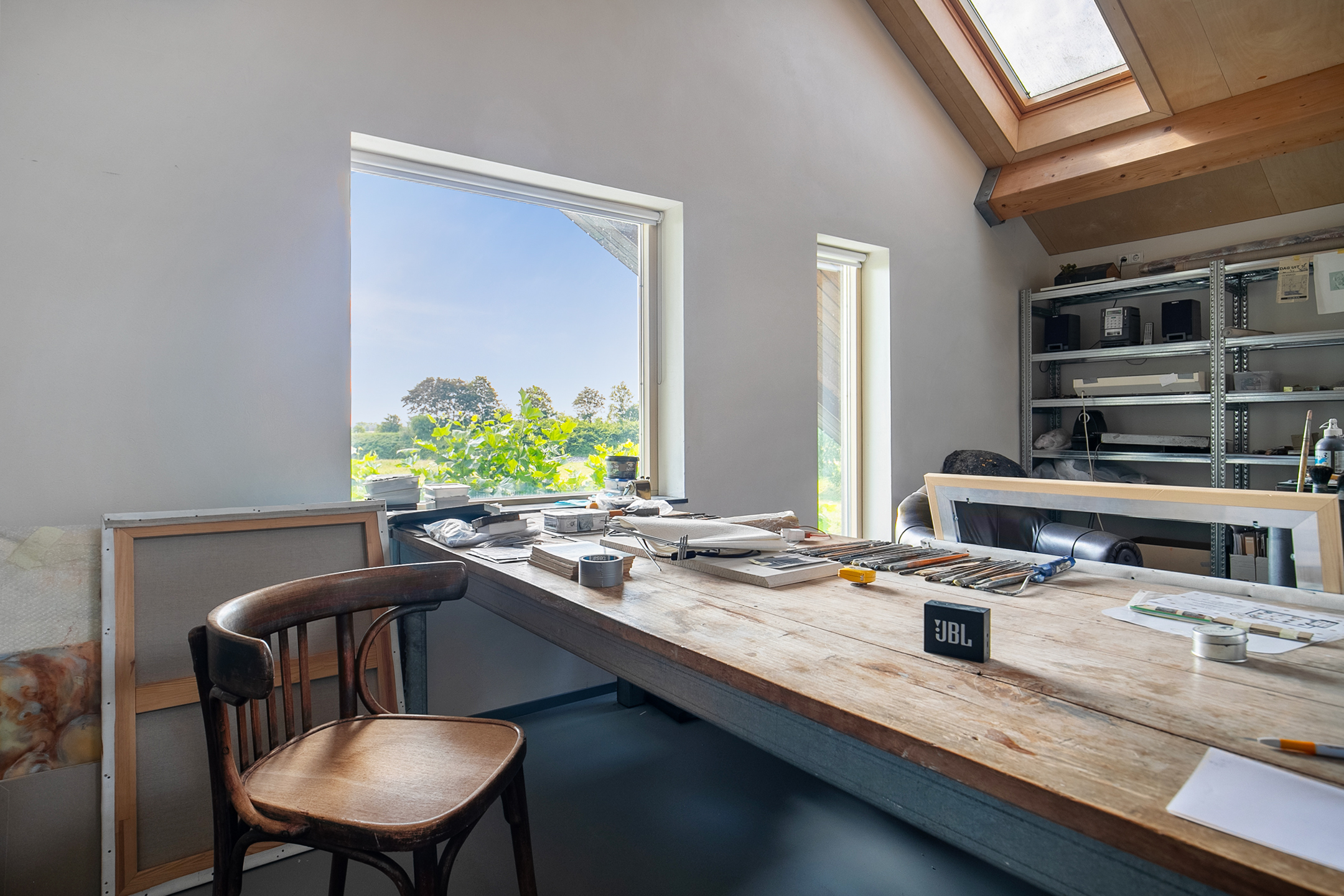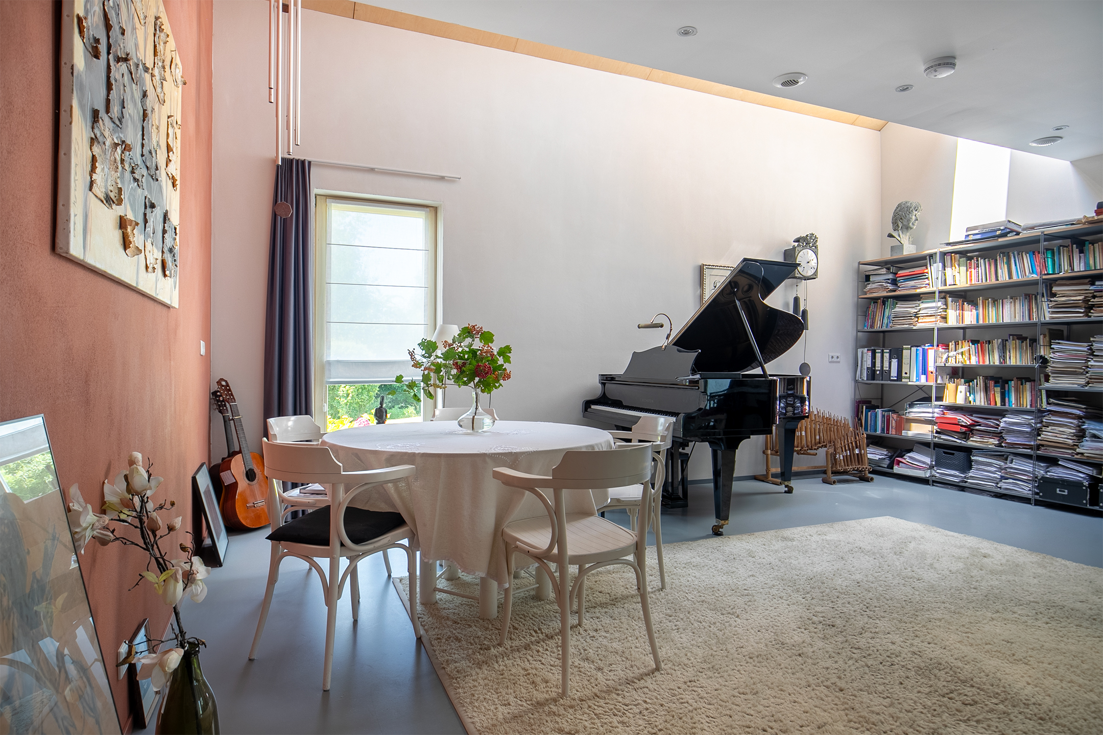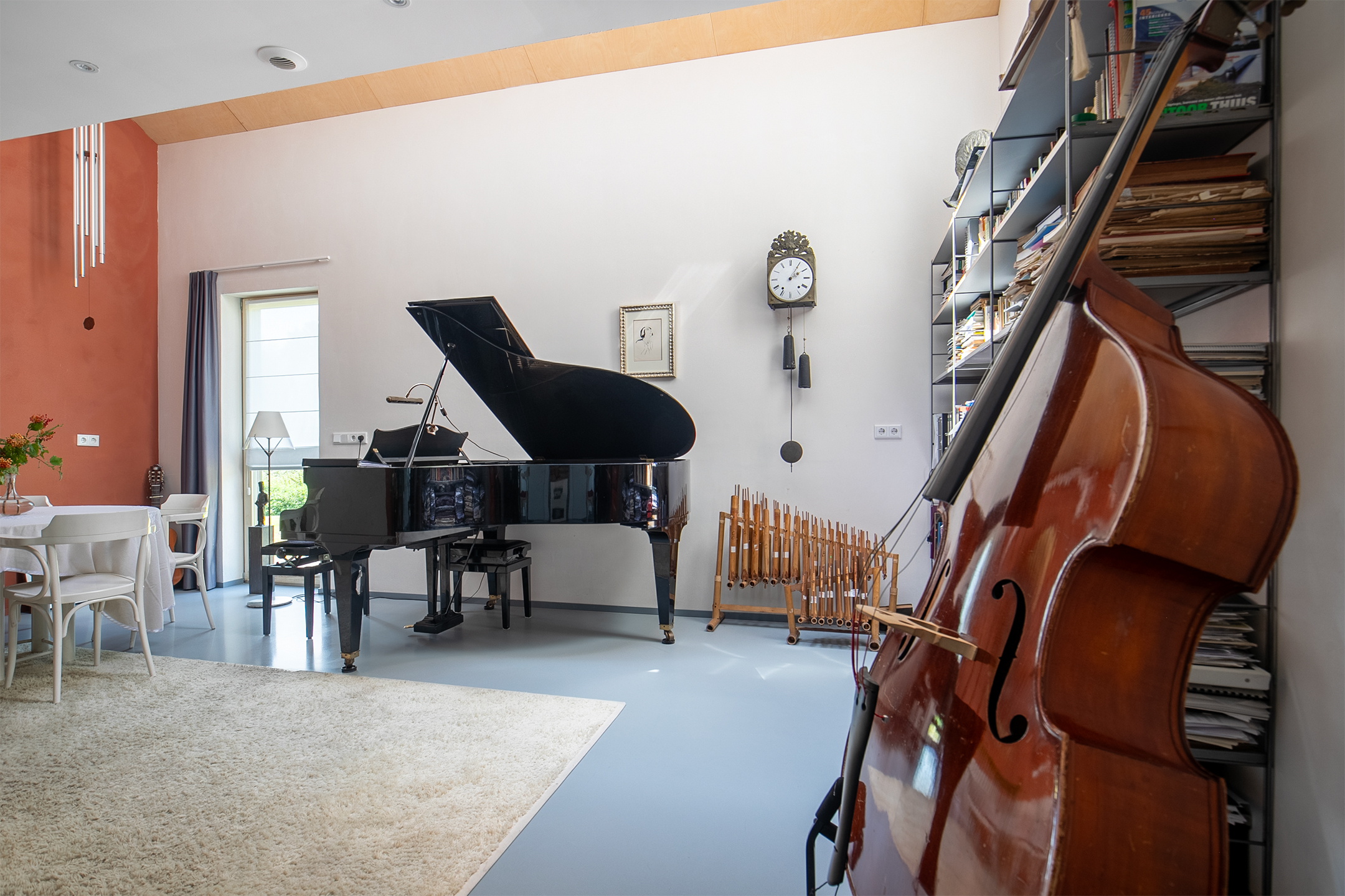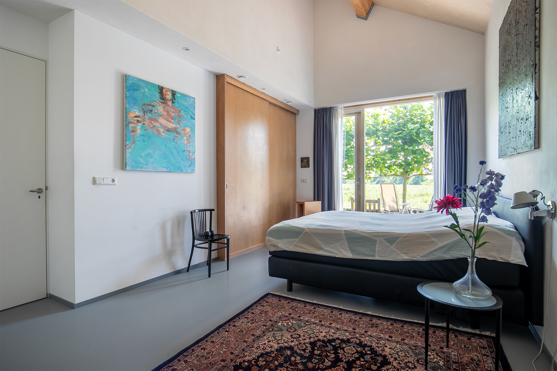 Daarnaast vindt u op de begane grond een bijkeuken, een apart toilet en een royale slaapkamer met ensuite badkamer – perfect voor gelijkvloers wonen of als gastenverblijf. Uniek is de extra zeer ruime kamer, die naar eigen wens in te richten is als salon, werkruimte of extra slaapkamer. Dankzij de aparte toegang biedt deze ruimte uitstekende mogelijkheden voor een beroep aan huis zonder in te leveren op privacy.