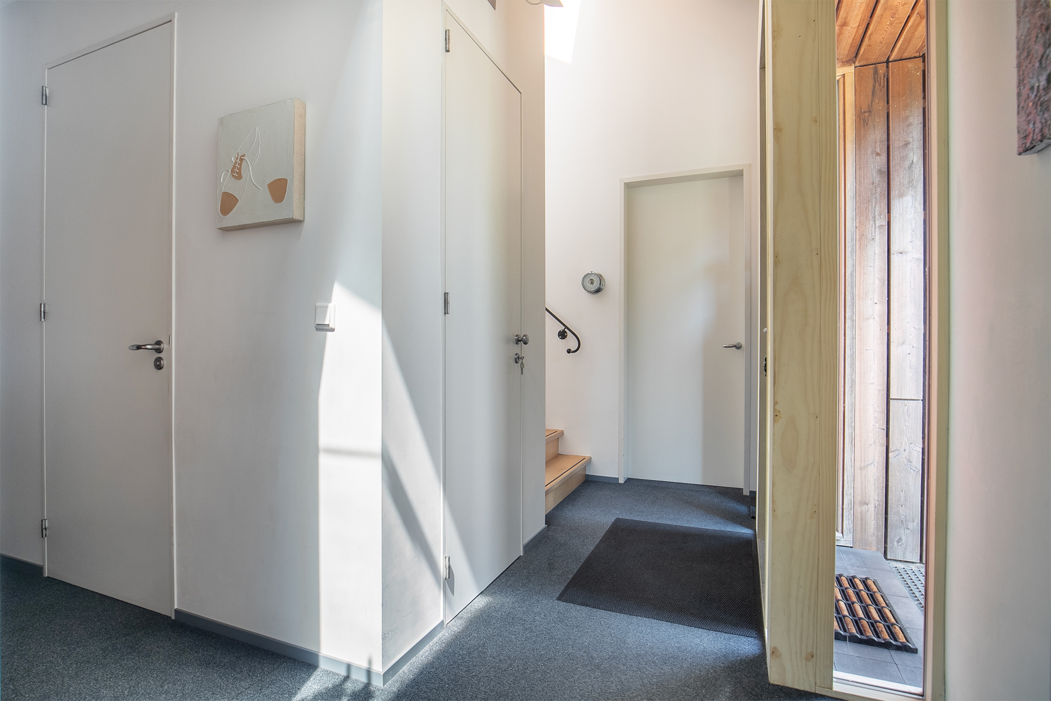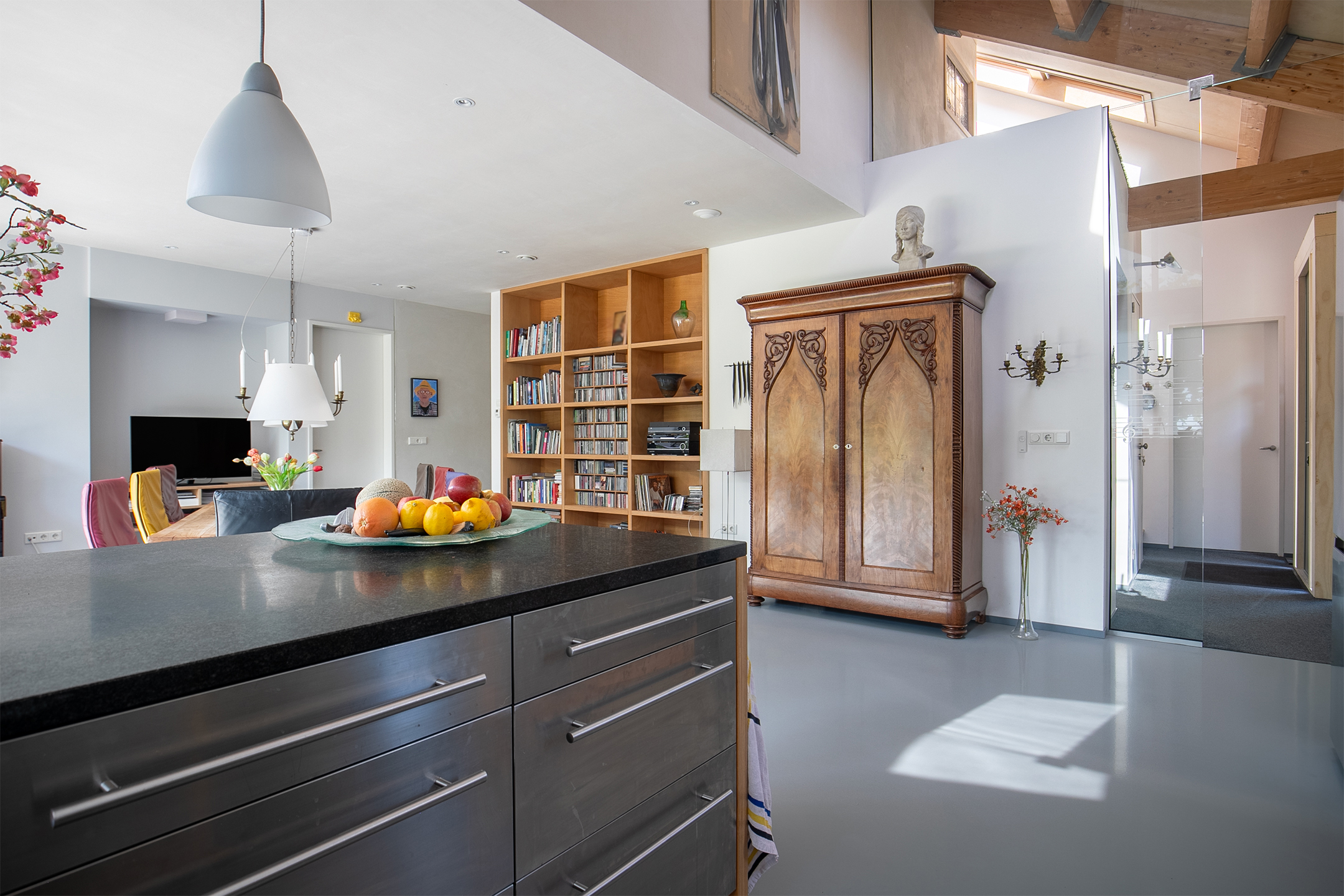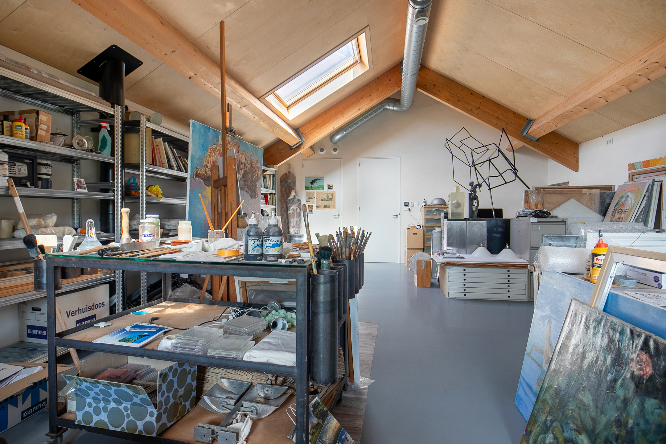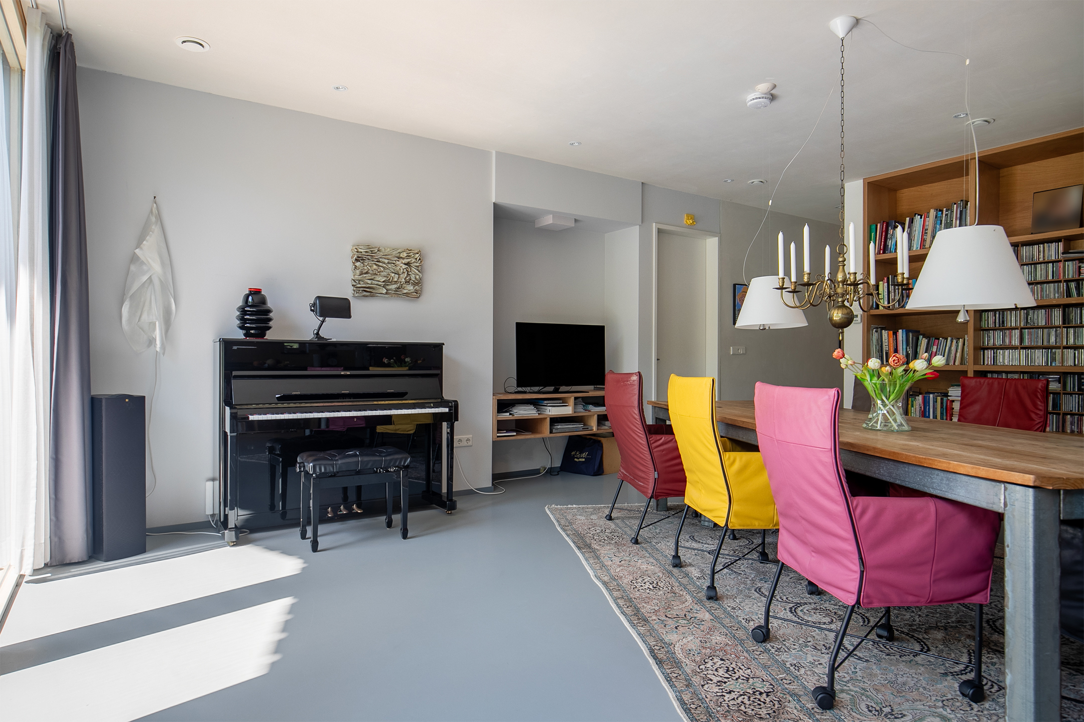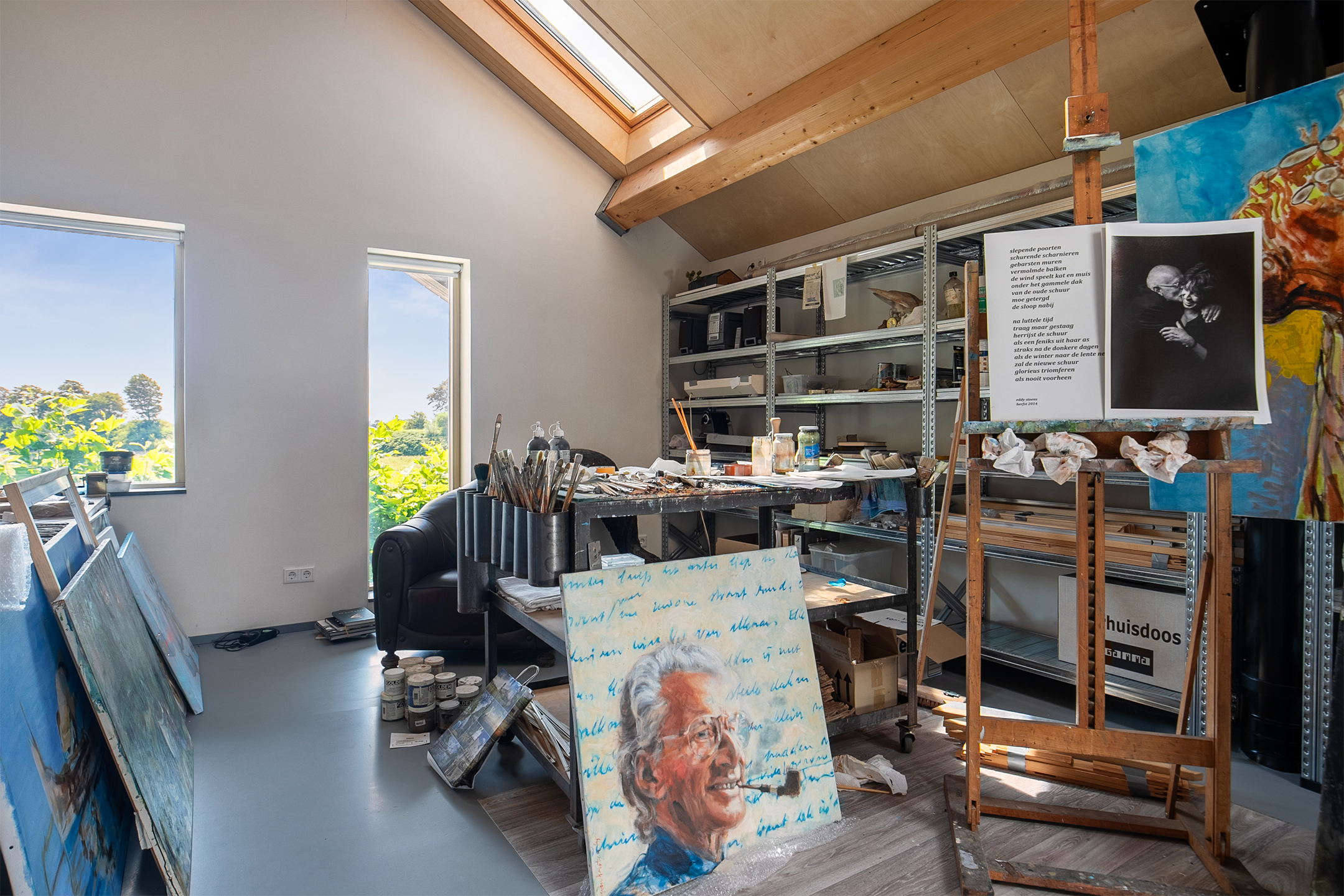 Daarnaast vindt u op de begane grond een bijkeuken, een apart toilet en een royale slaapkamer met ensuite badkamer – perfect voor gelijkvloers wonen of als gastenverblijf. Uniek is de extra zeer ruime kamer, die naar eigen wens in te richten is als salon, werkruimte of extra slaapkamer. Dankzij de aparte toegang biedt deze ruimte uitstekende mogelijkheden voor een beroep aan huis zonder in te leveren op privacy.