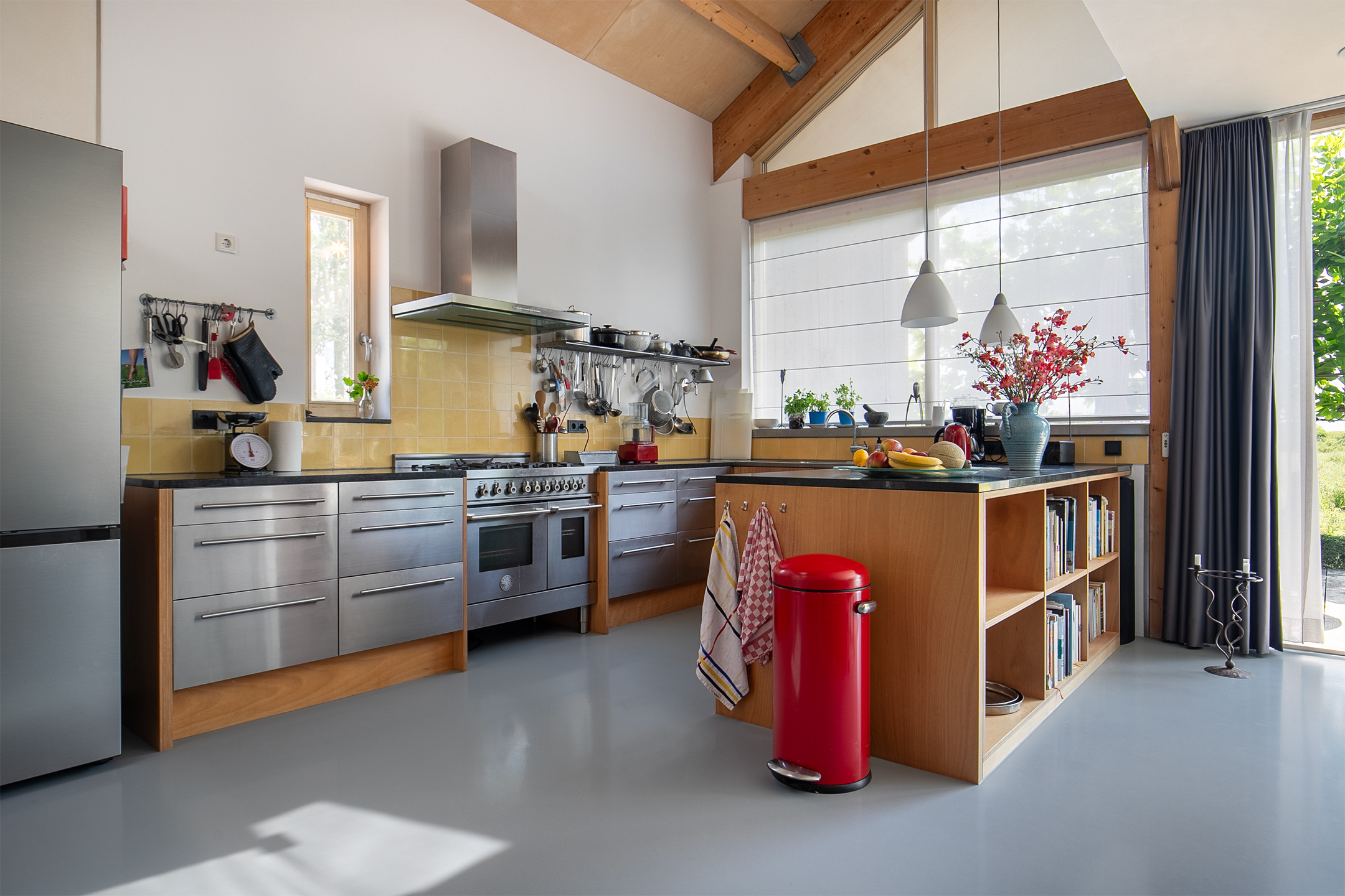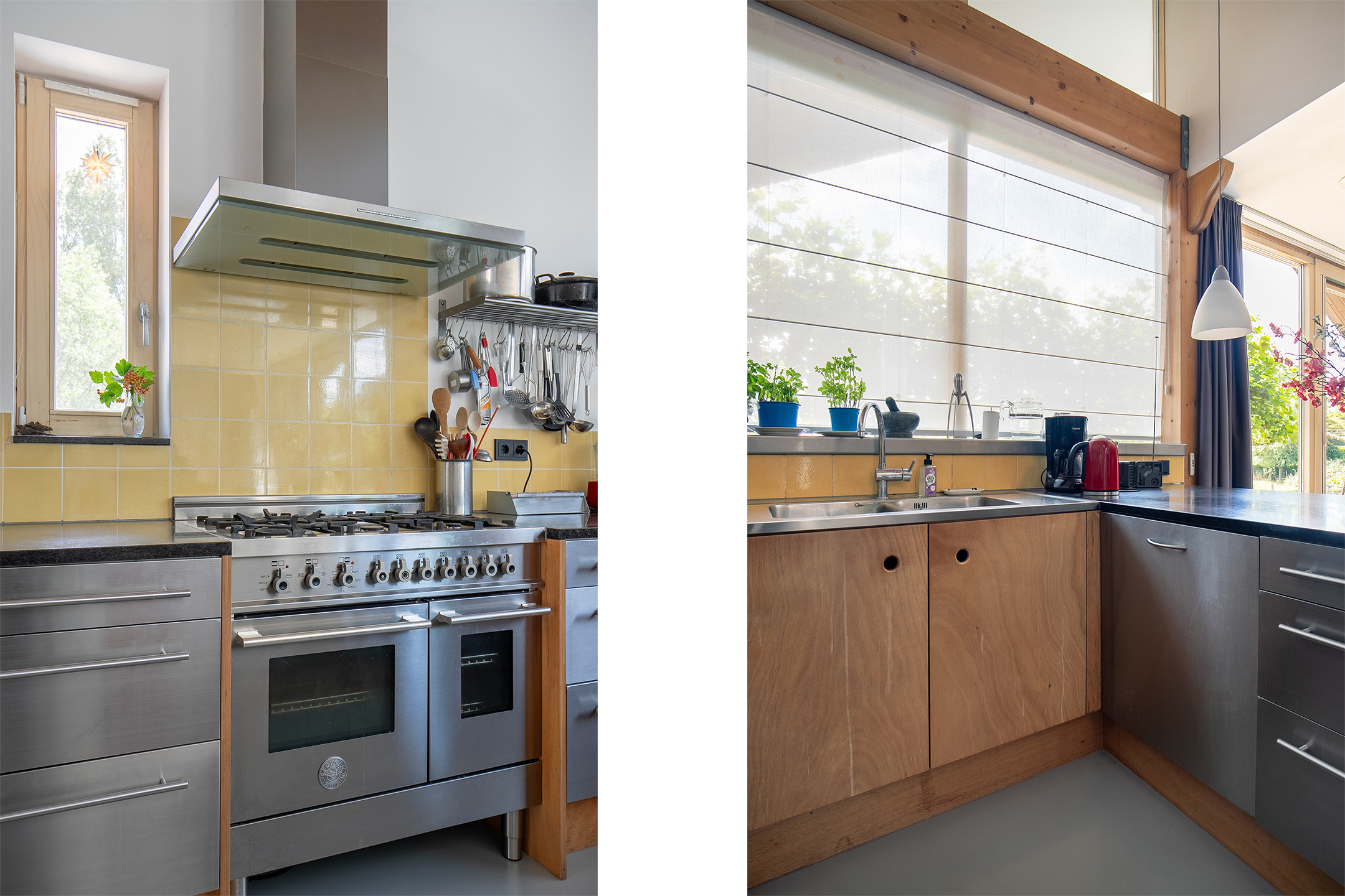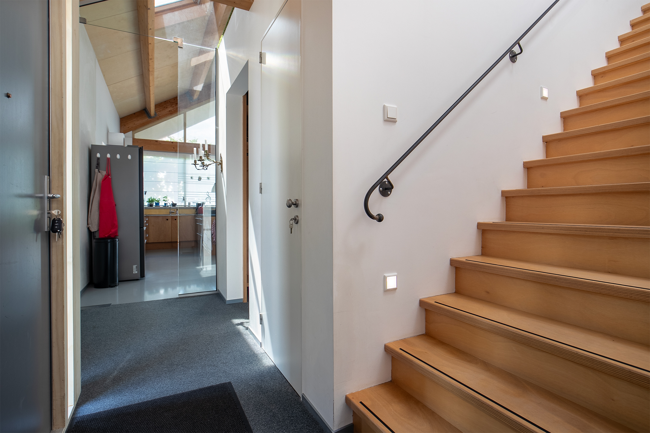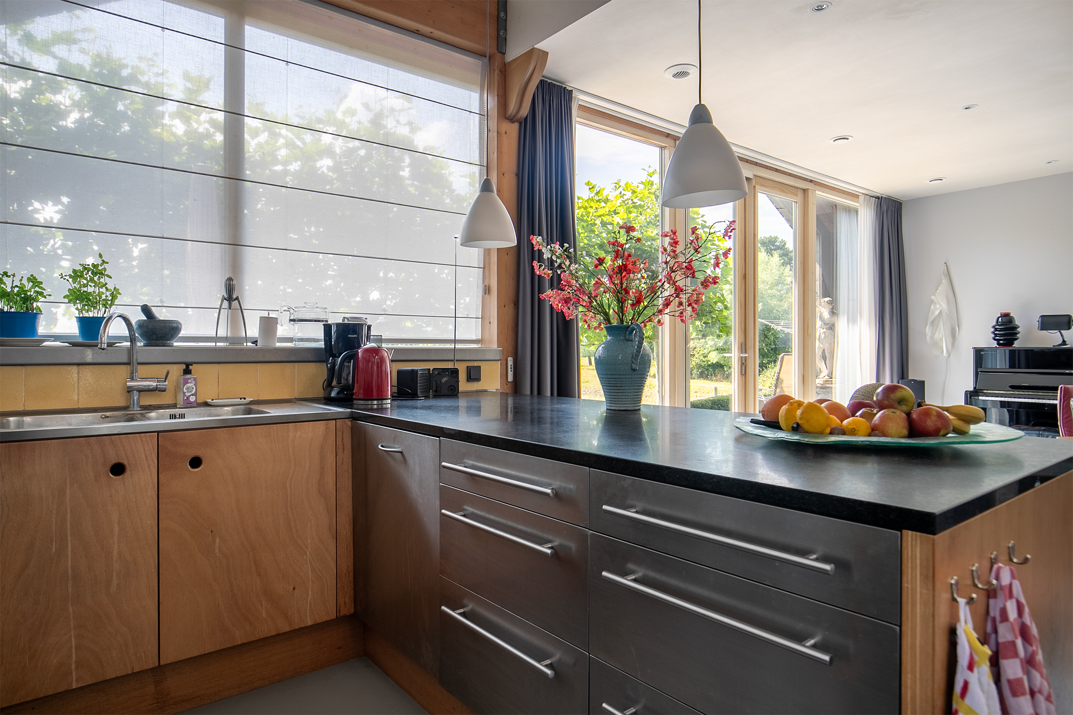 De ruime woonkamer op de begane grond wordt gekenmerkt door grote raampartijen, waardoor u een adembenemend panoramisch uitzicht heeft over de uitgestrekte natuur. De moderne open keuken is volledig uitgerust met hoogwaardige apparatuur en grenst aan een gezellige eetkamer met openslaande deuren naar een zonnige overkapping. Hier kunt u het hele jaar door genieten van het buitenleven, met een ruim terras en zonneluifels voor extra comfort op warme dagen.