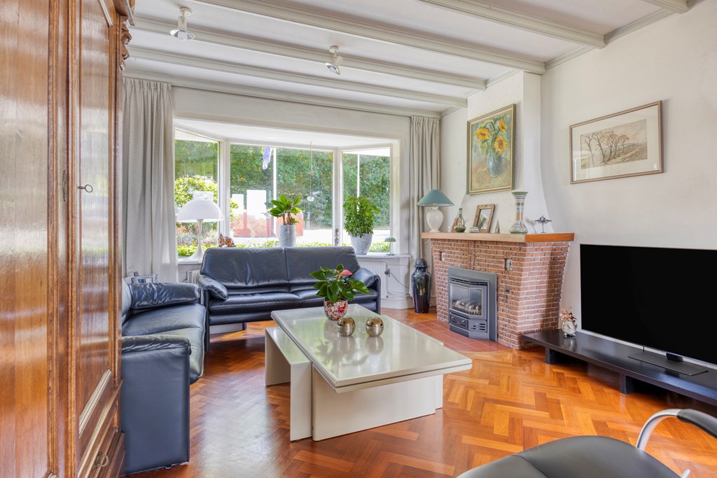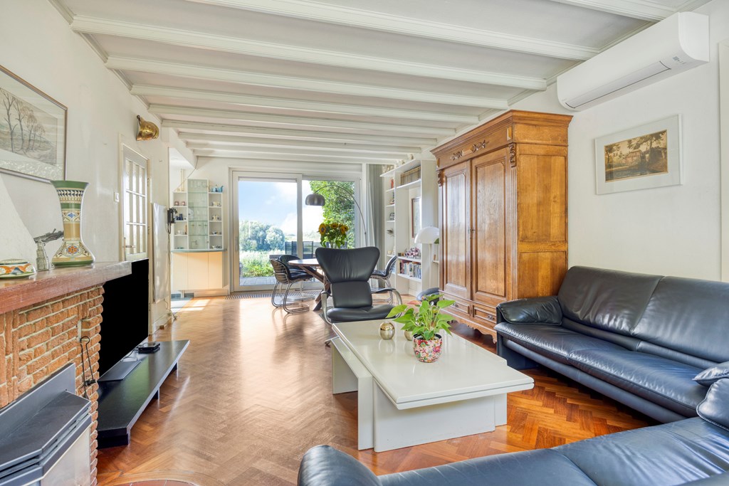 De woonkamer vormt het hart van het huis en ademt een warme sfeer dankzij de combinatie van grote raampartijen, een sfeervolle haard en karaktervolle houten draagbalken. De open indeling geeft volop mogelijkheden voor het inrichten van een zithoek en eetgedeelte, terwijl de schuifdeur naar de tuin zorgt voor een directe verbinding met buiten. Dankzij de airco is het hier in elk seizoen prettig verblijven.