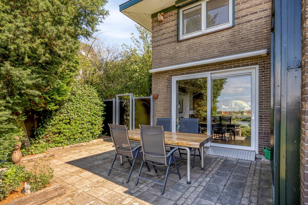 Een achtertuin met zonnige ligging en een schitterend vergezicht over natuur en water vormt het hoogtepunt van deze woning. Met een bestraat terras is er alle ruimte voor een lounge set of buitentafel, terwijl het groene karakter van de tuin rust en privacy biedt.