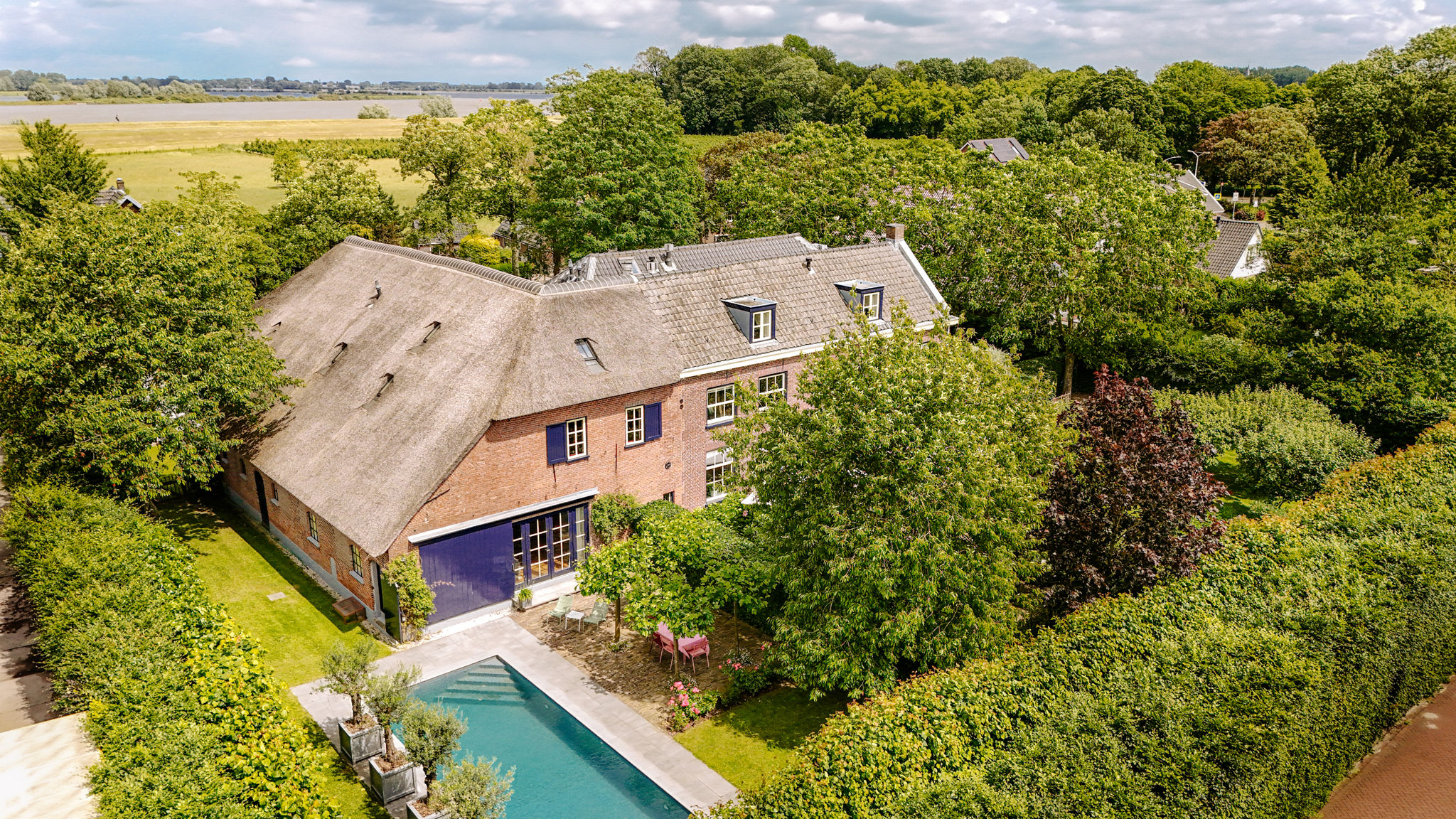 De vele ruimtes, inclusief gastenverblijf en kantoorruimte, maken deze herenboerderij uitermate geschikt om wonen en werken te combineren. Het verwarmde zwembad in de eigen lommerrijke tuin maakt het woongenot helemaal compleet.
