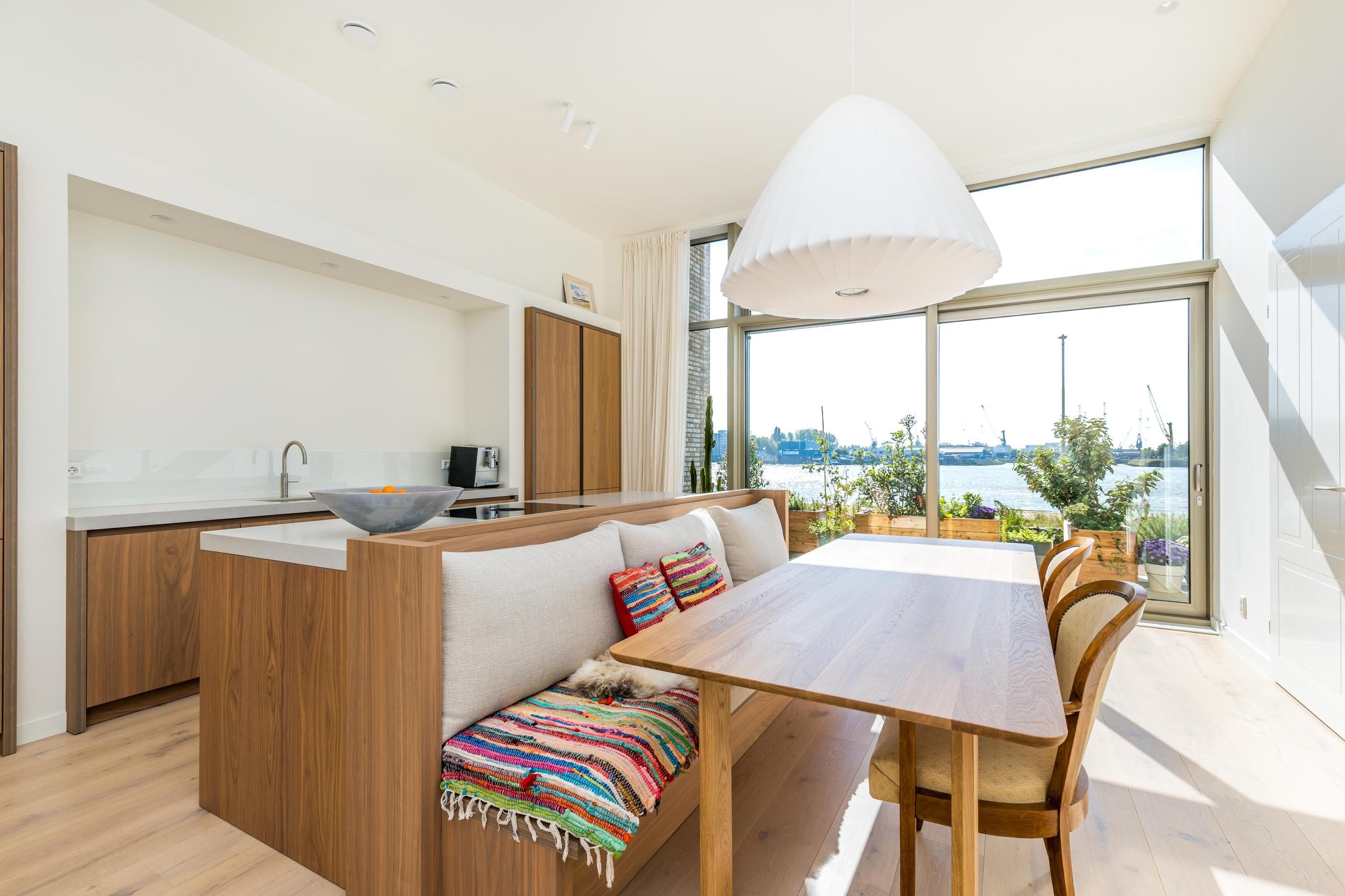 De eerste verdieping is ingericht als woonverdieping en biedt een royale living met ramen van vloer tot plafond, waardoor het uitzicht over het water naadloos onderdeel wordt van uw interieur. Alle slaapkamers en de woonkamer kijken uit over de Maas. Er zijn momenteel twee slaapkamers, maar een derde behoort eenvoudig tot de mogelijkheden.