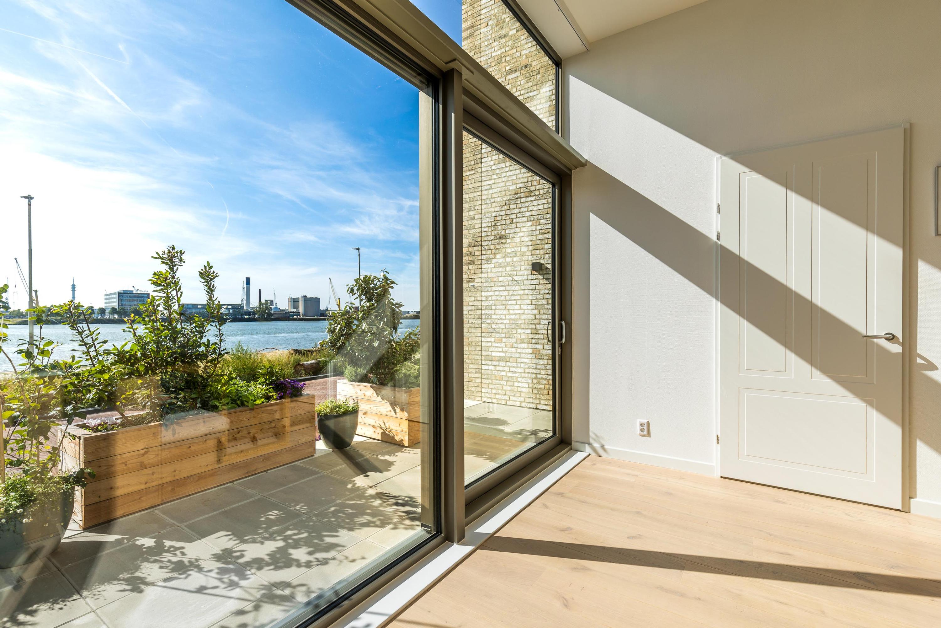 Elke dag een levend schilderij voor uw raam: dit royale en stijlvol afgewerkte appartement aan de Lloydkade biedt luxe, ruimte en een panoramisch uitzicht over de Maas. van zonsopkomst tot zonsondergang.