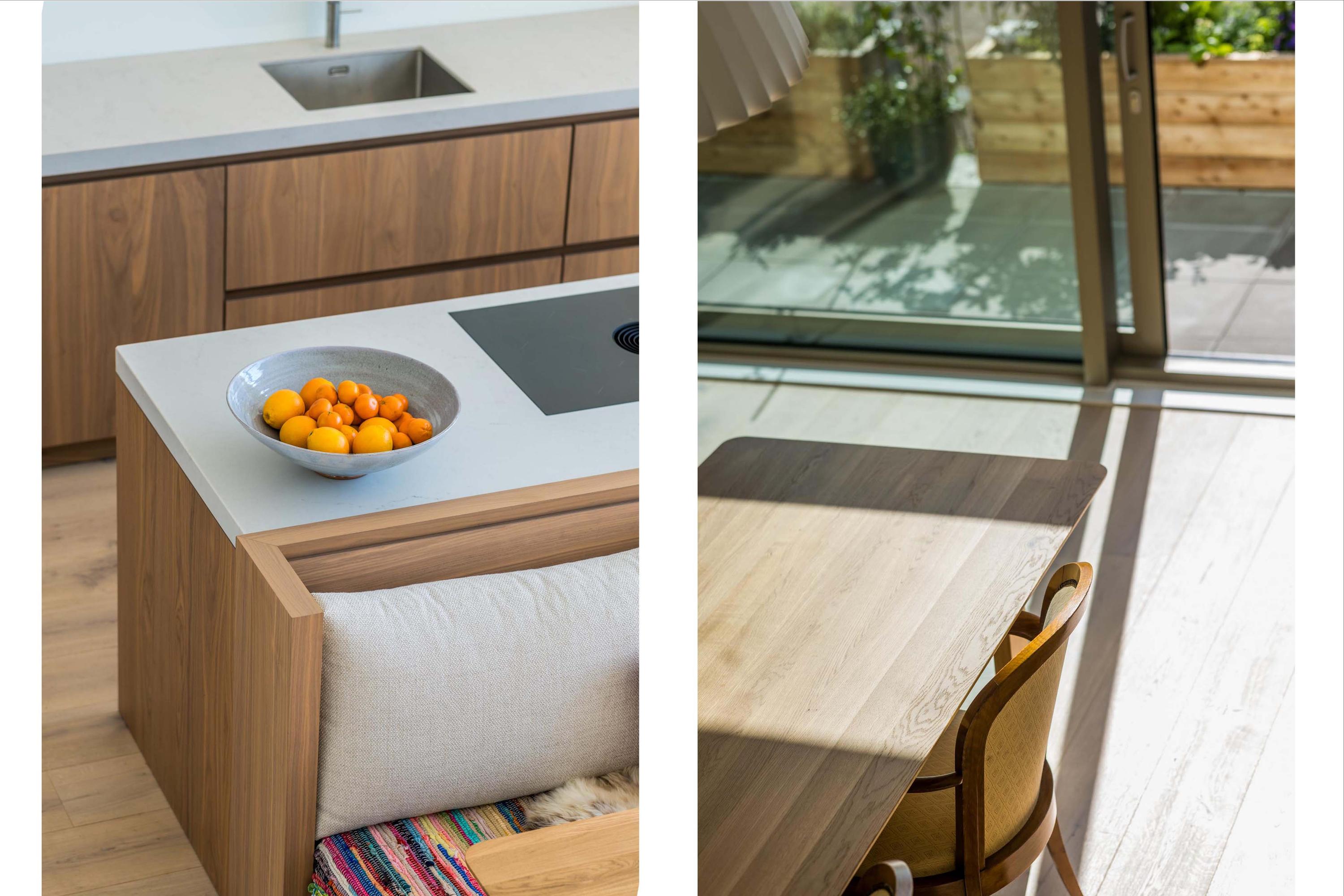 Via uw eigen veranda/zonneterras op de begane grond (gelegen op het zonnige zuiden én aan de Maas) betreedt u de woning. Hier bevindt zich de zeer luxe woonkeuken, volledig uitgerust en ontworpen om te genieten, of u nu een intiem diner organiseert of uitgebreid kookt voor vrienden en familie. Direct aangrenzend is er een ruime inpandige berging, ideaal voor extra opslag.
