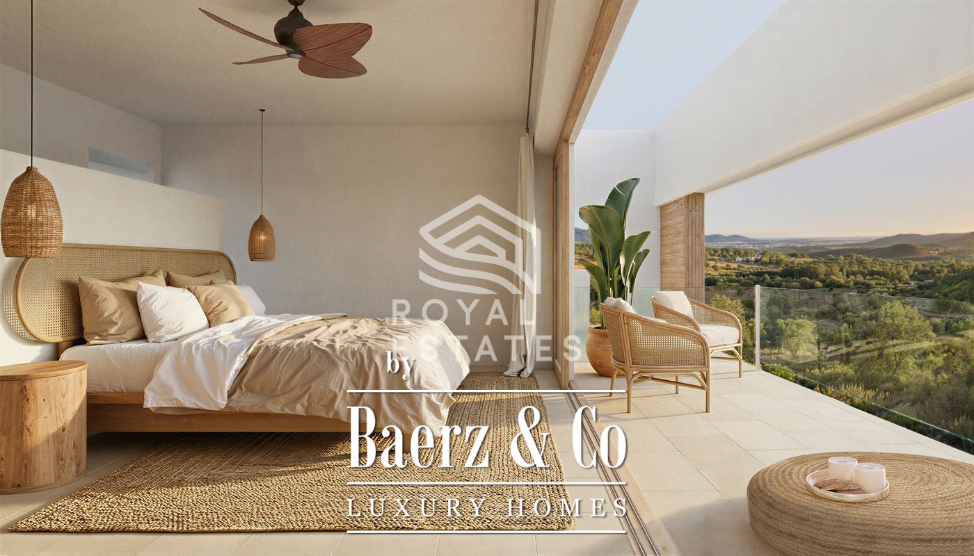 Het ontwikkelconcept vertaalt traditionele Ibizaanse architectuur in een eigentijdse stijl, gekenmerkt door strakke volumes, natuurlijke materialen en een open overgang tussen binnen en buiten. Met een verleende bouwvergunning kan het traject van visie naar realisatie snel worden vervolgd. De geplande villa biedt circa 520 m² woonoppervlak met vijf slaapkamers en vijf badkamers, waaronder aparte suites voor familie en gasten. Het interieurontwerp richt zich op een overvloed aan natuurlijk licht en een vloeiende overgang tussen leefruimte, eetkamer, terrassen en zwembadgedeelte.