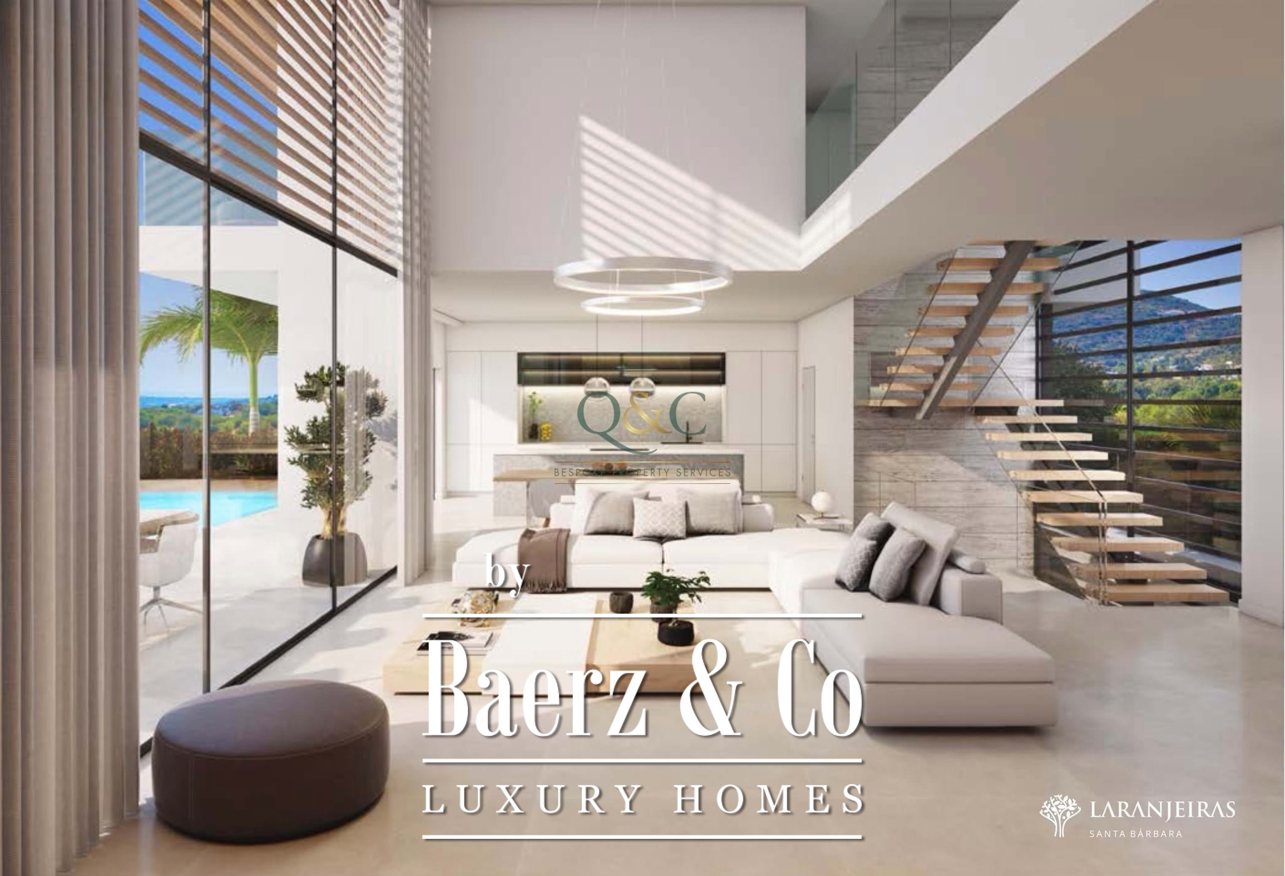 Laranjeiras a unique development of bespoke, architect designed detached villas that nestle quietly within a gated environment in the unspoilt hills above the quintessential Portuguese village of Santa Barbara de Nexe. This beautiful, well-kept village is an undiscovered hillside gem that boasts an historic white church complete with belltower, shady, tree-lined squares and a good sprinkling of amenities including bars, restaurants, shops and coffee houses. There is also a local market and a well-equipped garage. This stunning location offers unrivalled sea views and cool summer breezes and yet is only a short drive from the vibrancy and lifestyle activities of