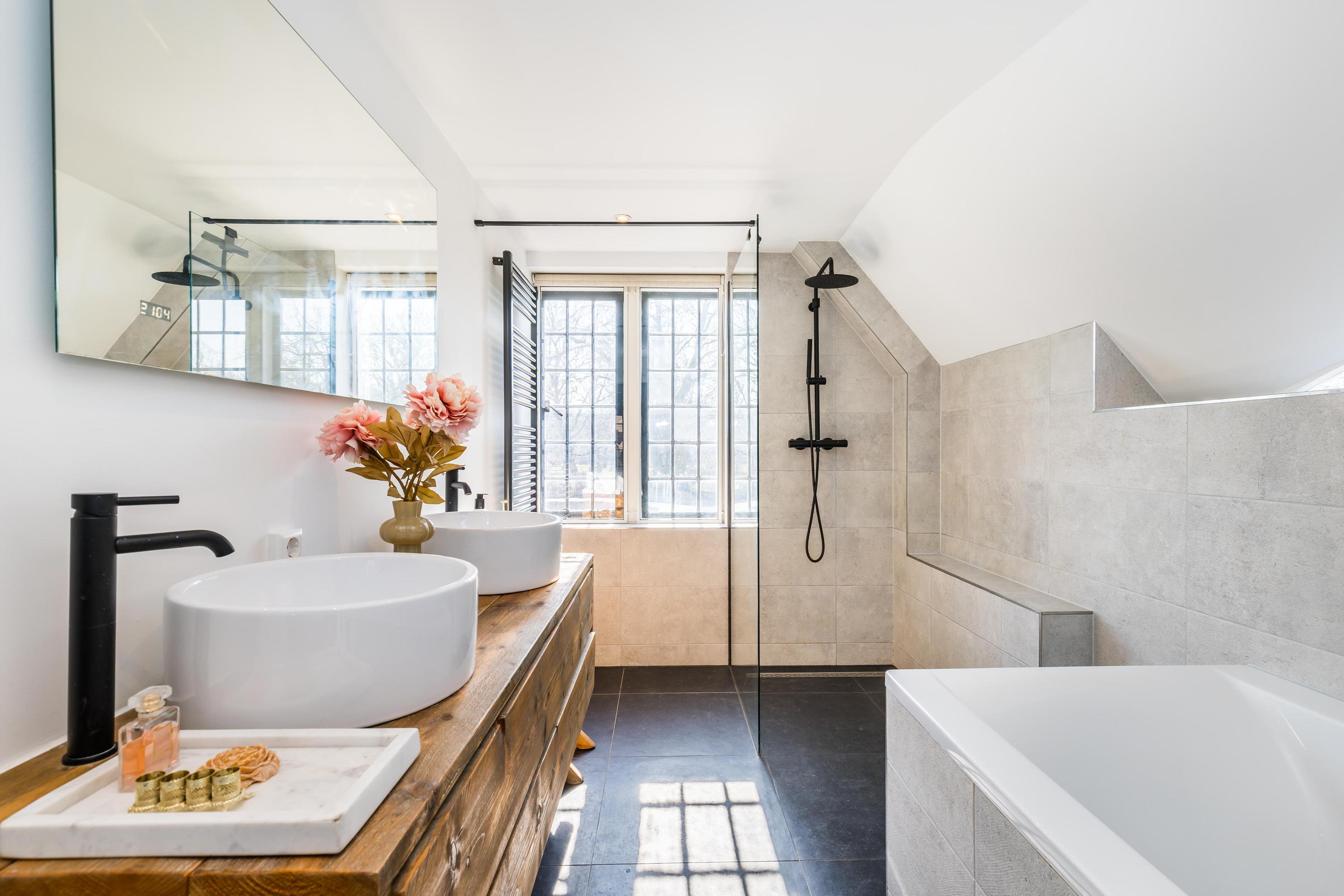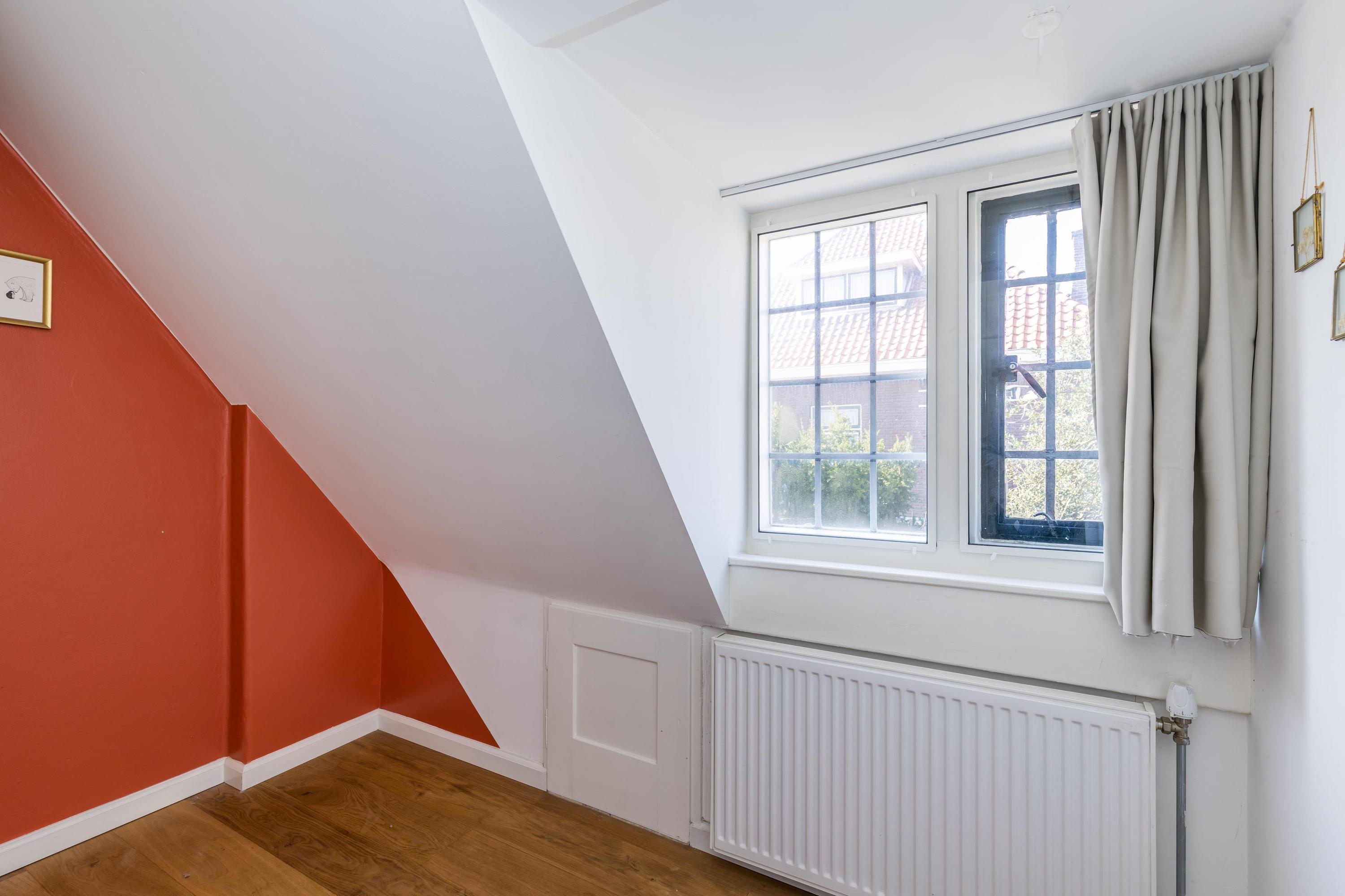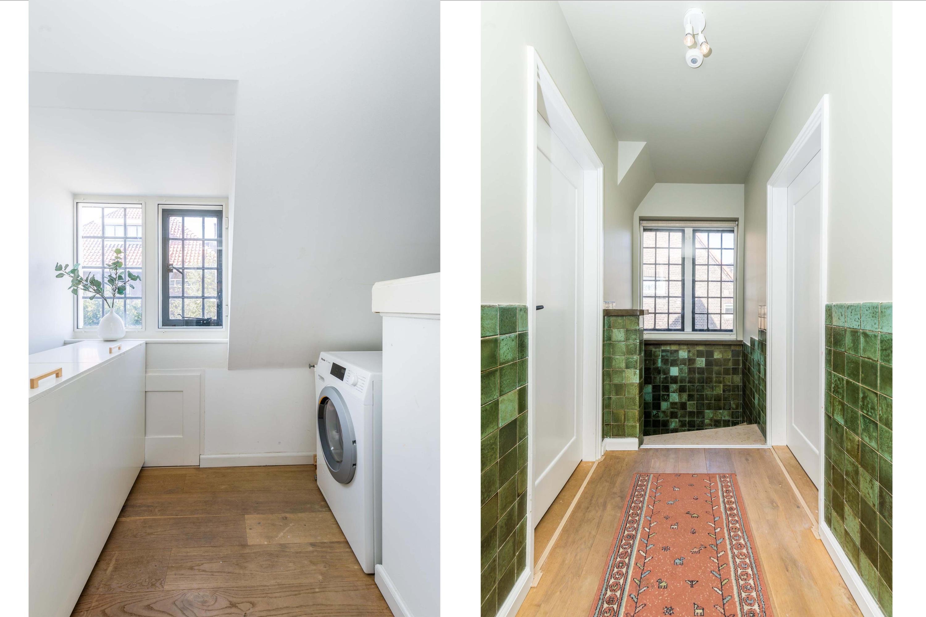 1e Verdieping: Prachtige en lichte overloop met eveneens originele wandtegeltjes. Er bevinden zich maar liefst 4 slaapkamers op deze verdieping en tevens een waskamer, een separaat toilet en een verrassend ruime en zeer smaakvol ingerichte badkamer voorzien van ligbad, inloopdouche en wastafelmeubel. De hoofdslaapkamer is om van te dromen, je voelt je de koning te rijk qua ruimte, maar ook vanwege het charmante balkon dat te bereiken is d.m.v. openslaande deuren. Je waant je in de jaarlijkse koninklijke balkonscene terwijl je mijmert over het sublieme uitzicht over het Julianapark.