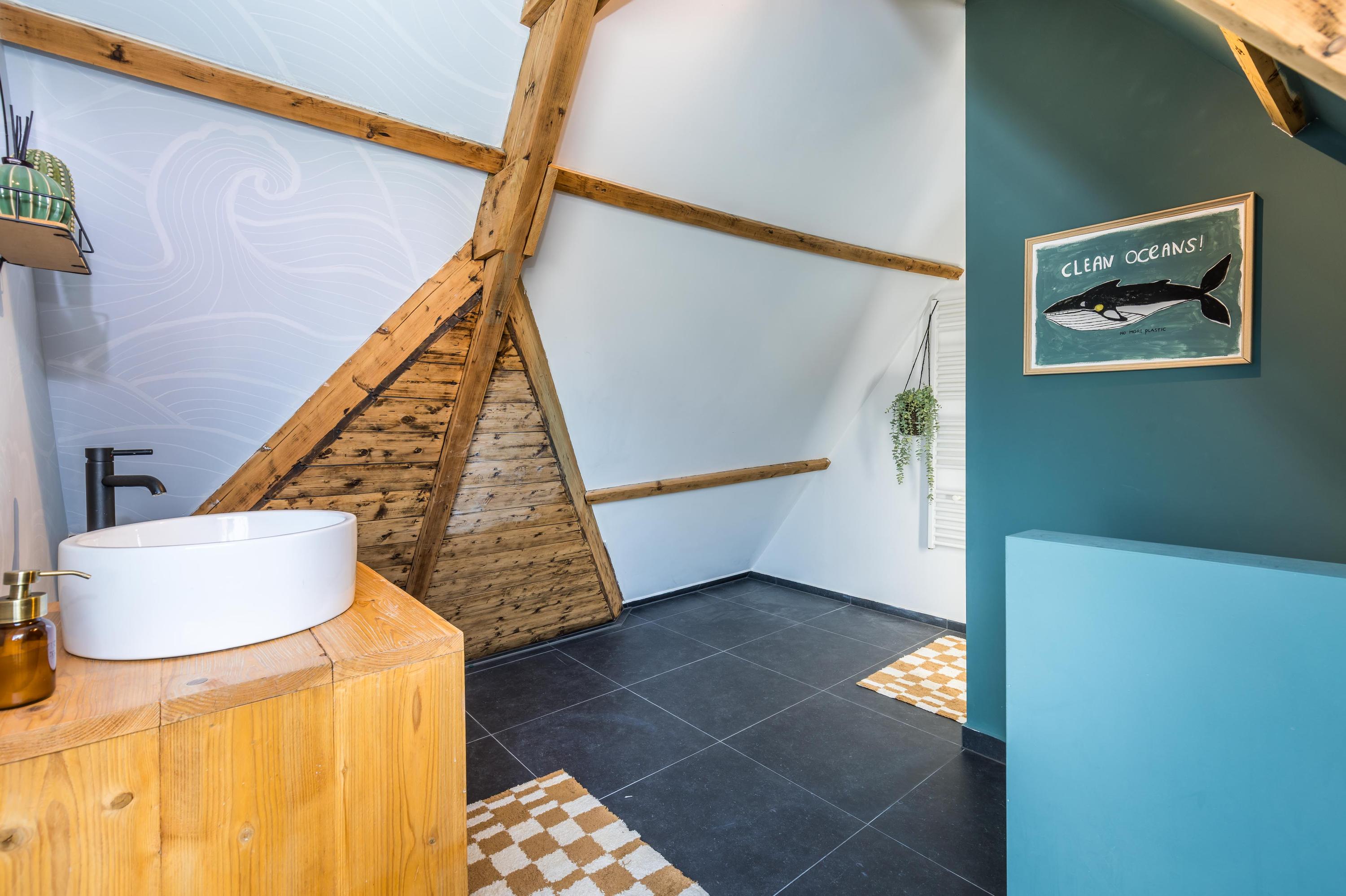 2e Verdieping: Ook deze verdieping is weer heel verrassend en speels ingedeeld. Met misschien wel een van de leukste kinderkamers die je maar kunt verzinnen, dakspant in het zicht, leuke verstopplekjes en genoeg ruimte om te spelen. In werkelijkheid is deze verdieping groter dan de plattegrond doet vermoeden. Het oppervlak wordt op papier door de schuine dakvlakken ‘gestraft’, terwijl er heel veel bruikbare ruimte is. Er bevindt zich tevens een badkamer met toilet, douche en wastafel.