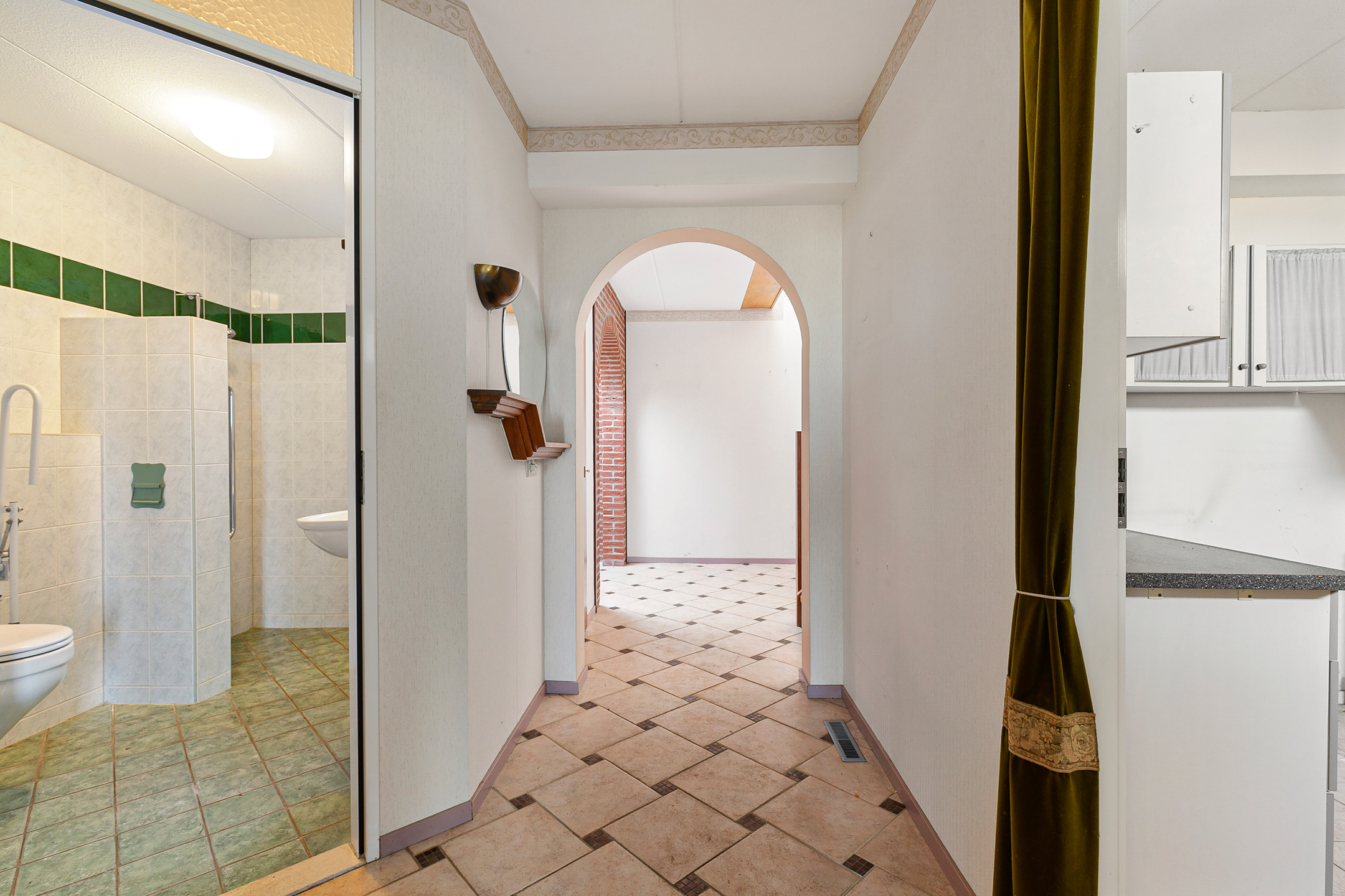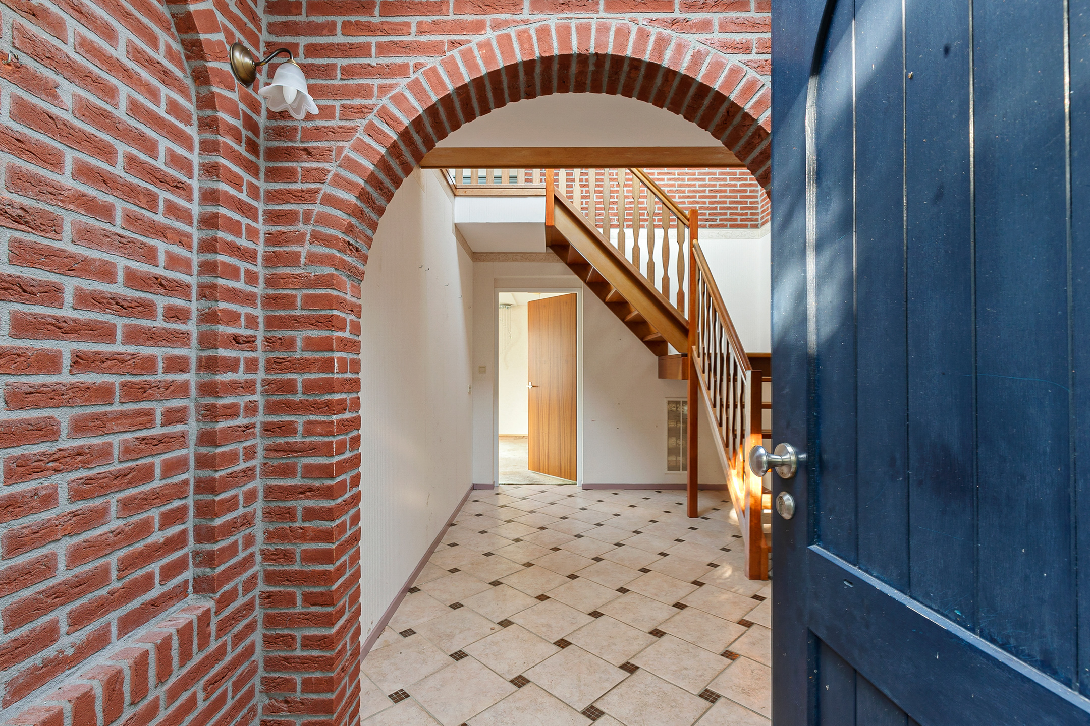 De ruime woonkeuken is voorzien van inbouwapparatuur en een sfeervolle erker met uitzicht over de tuin en weilanden. Verder vindt u op de begane grond een bijkeuken, een royale slaapkamer met tuindeuren, een badkamer met toilet, wastafel en douche, alsmede toegang tot de inpandige garage.