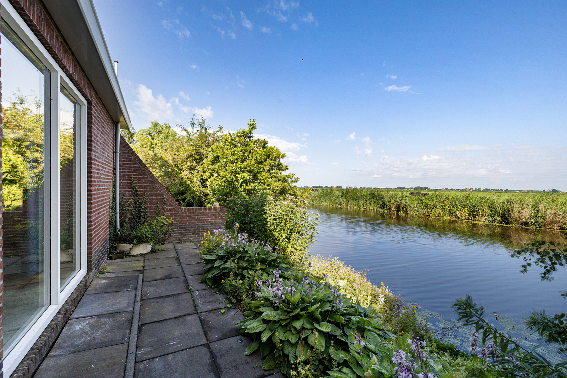Dankzij de hoekligging met (eigen) water rondom, is de tuin volledig vrij en biedt deze optimale privacy. In de achtertuin is een kleine vijver, een tuinhuisje en langs de oever bevinden zich diverse (oude) steigers voor het afmeren van boten. Hier geniet u van ’s ochtends vroeg tot ’s avonds laat van het Friese buitenleven pur sang. Het vaarwater is geschikt voor sloepvaren en staat in directe verbinding met de Aldfeart richting Sneek, de Zwette naar Leeuwarden (Elfstedenroute) en de Bangafeart naar het Sneekermeer en Terherne.